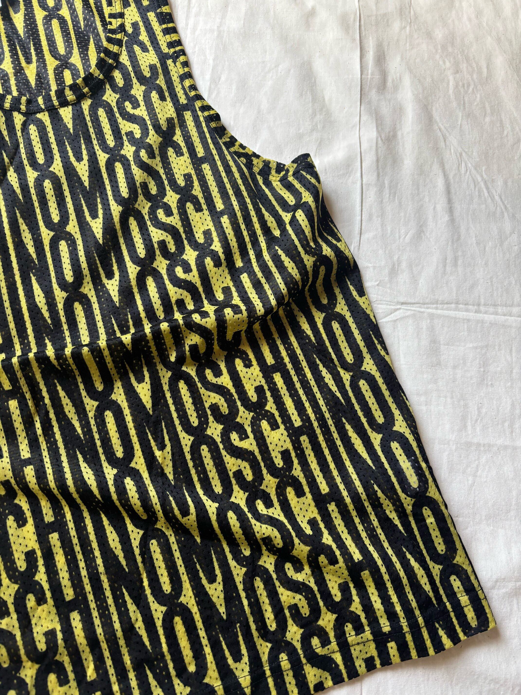 黄色ベースのボディに黒のモスキーノの文字が全面に入ったタンクトップですが、見るよりも着た方が肌馴染みが良く、そこまでド派手な印象にならないと思います。