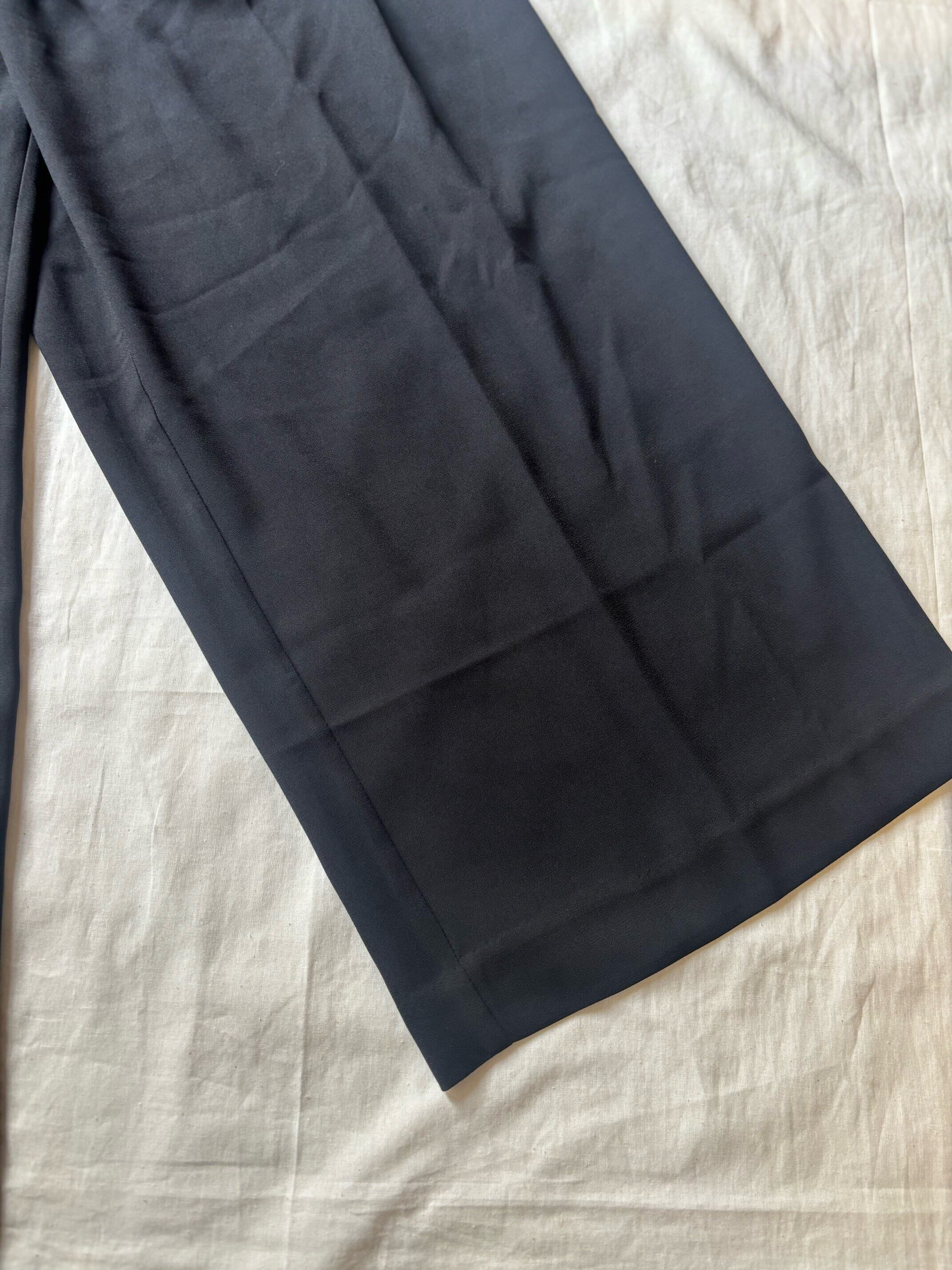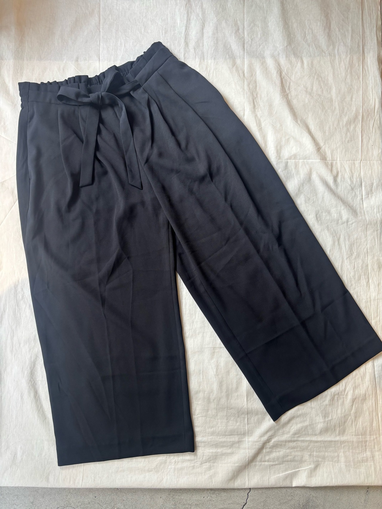 一昨年あたりから復活の兆しを見せ、今では履いている方も多いクロップ丈のトラウザーズですが、ブラックのトロミ素材だと合わせられる服も多く、この季節だとかなり活躍すると思います。