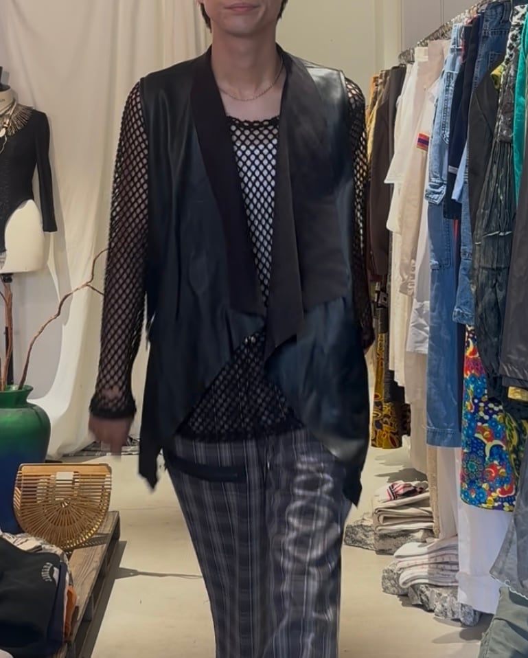 今の季節だとメッシュteeなどに重ねて着たり、秋口に差し掛かってきたらシアーのロングスリーブなどに合わせても良さそうです。冬にはニットに重ねて着れればほぼオールシーズンに近い季節で着用可能だと思います。