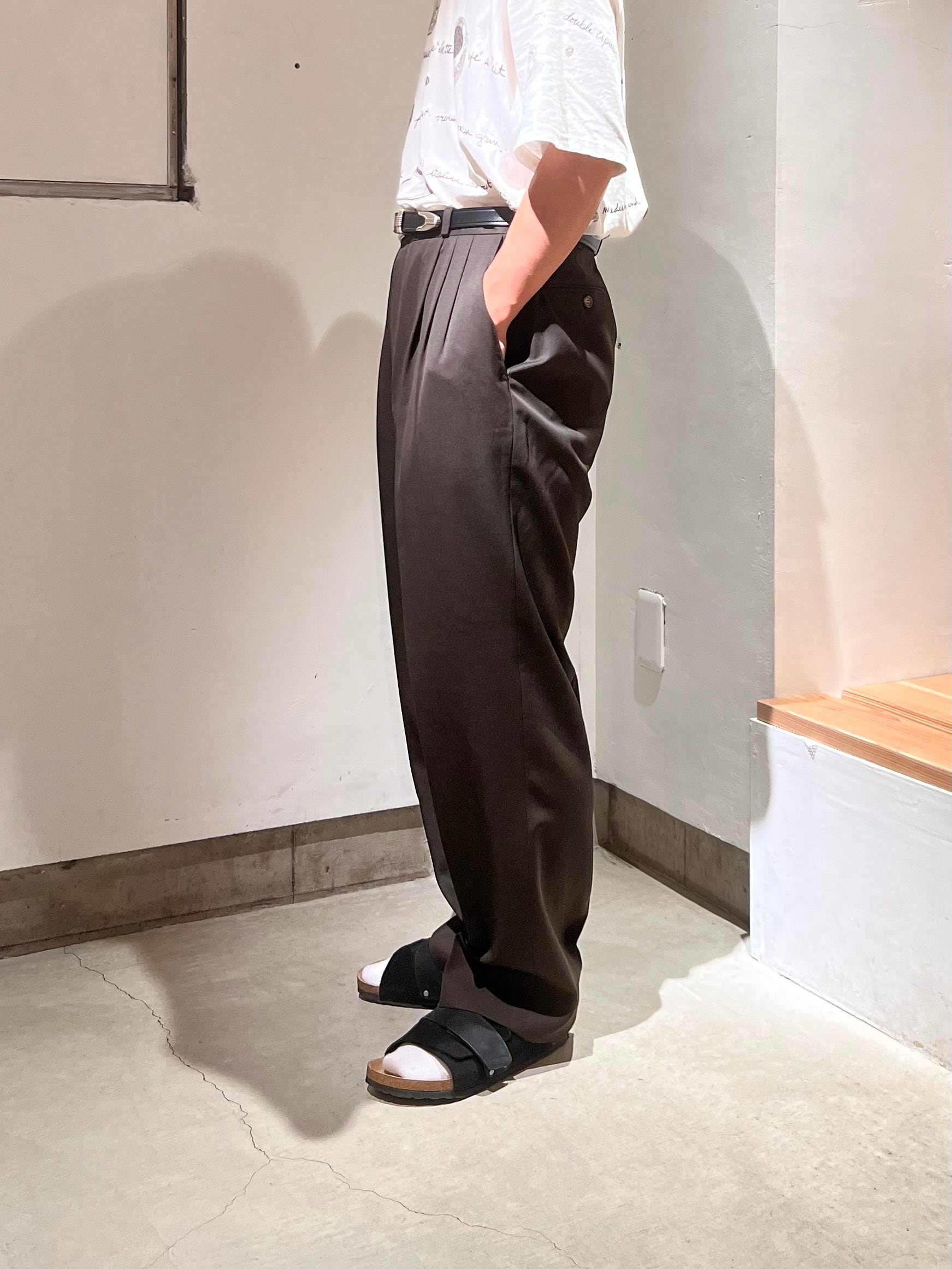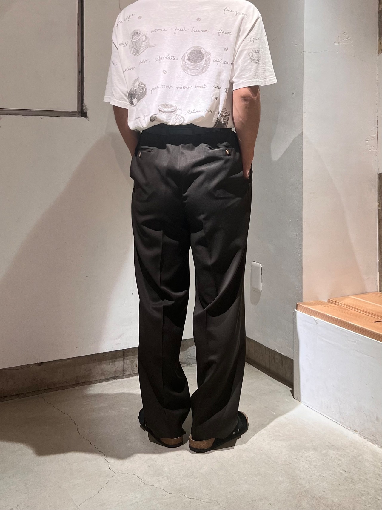 上質なウールギャバジンにカラーもシックなブラウンで、トップスを選びません。
