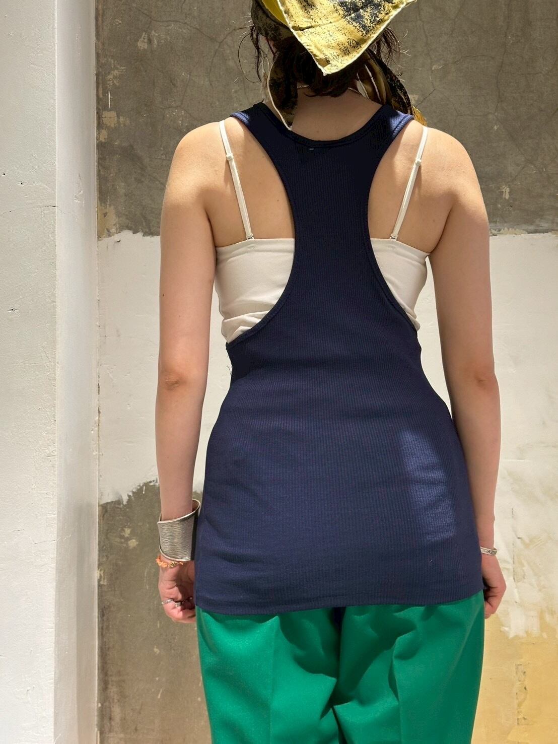 かなり背中や腕周りが抉られたデザインのタンクトップなので、一枚キャミソールやタンクトップを着てレイヤードしてもらうのが良いと思います。
