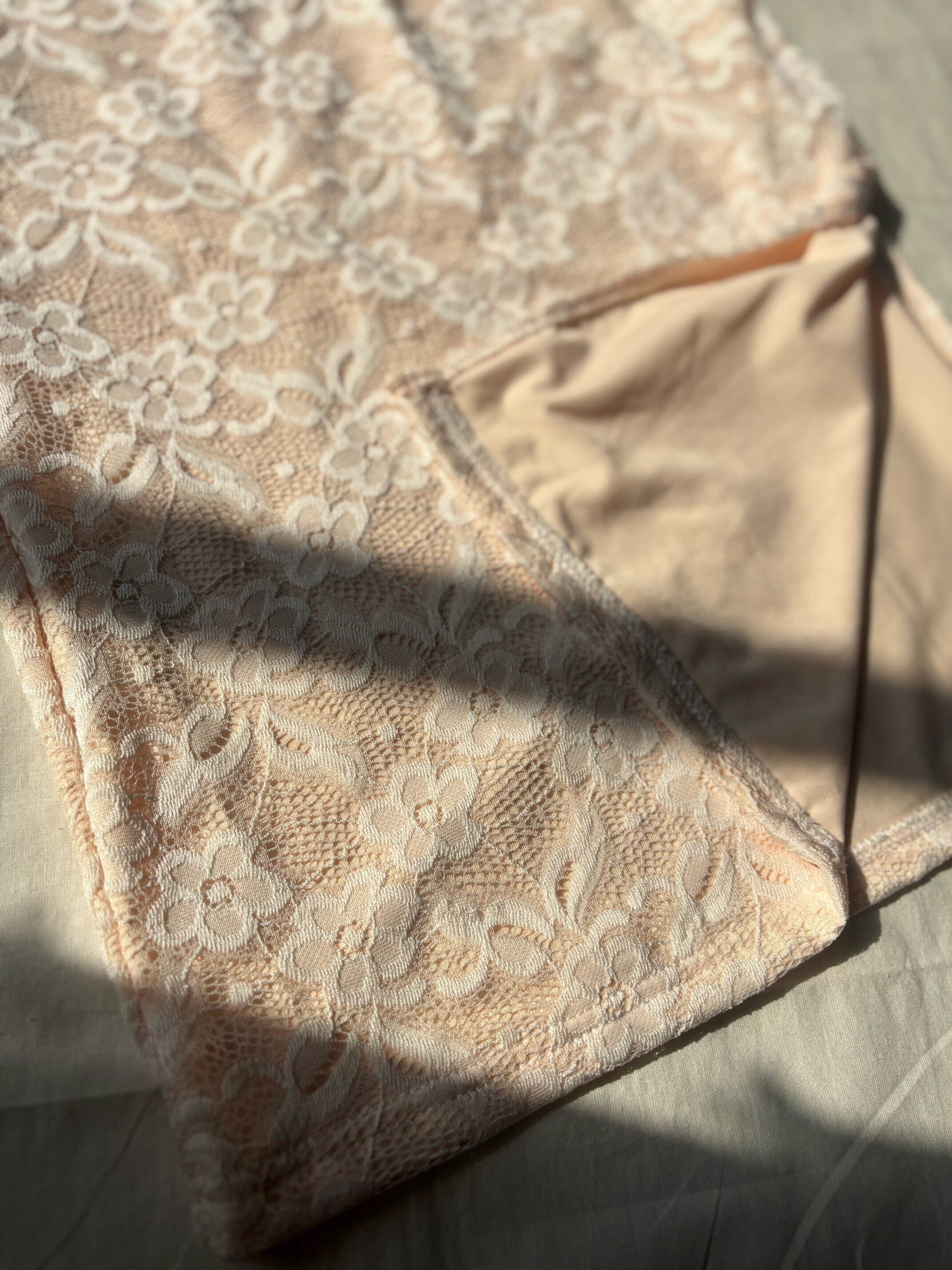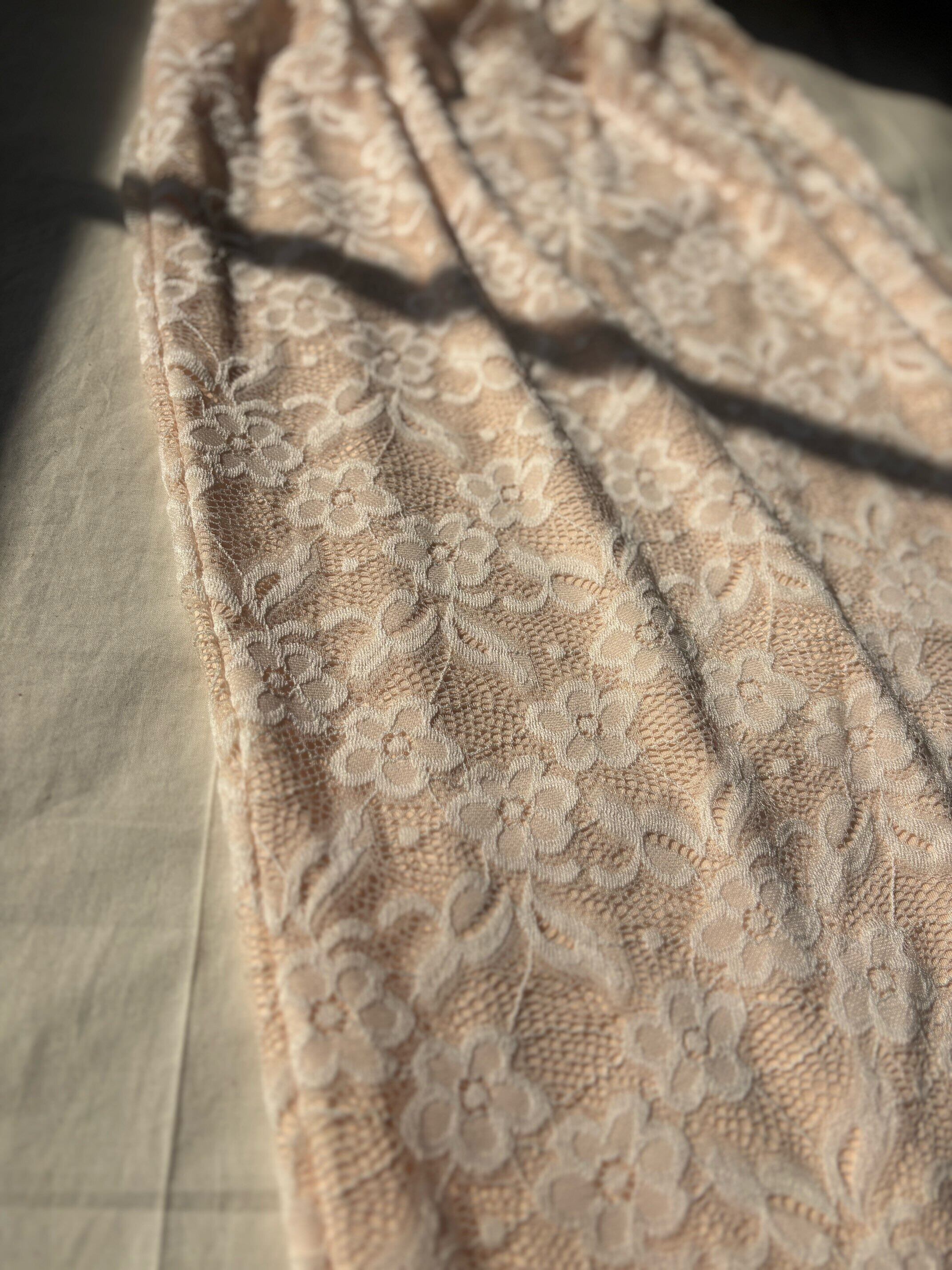 裏地が薄いオレンジのようなピンクのような生地なので表地も薄らと色が出ていて珍しい生地感です。