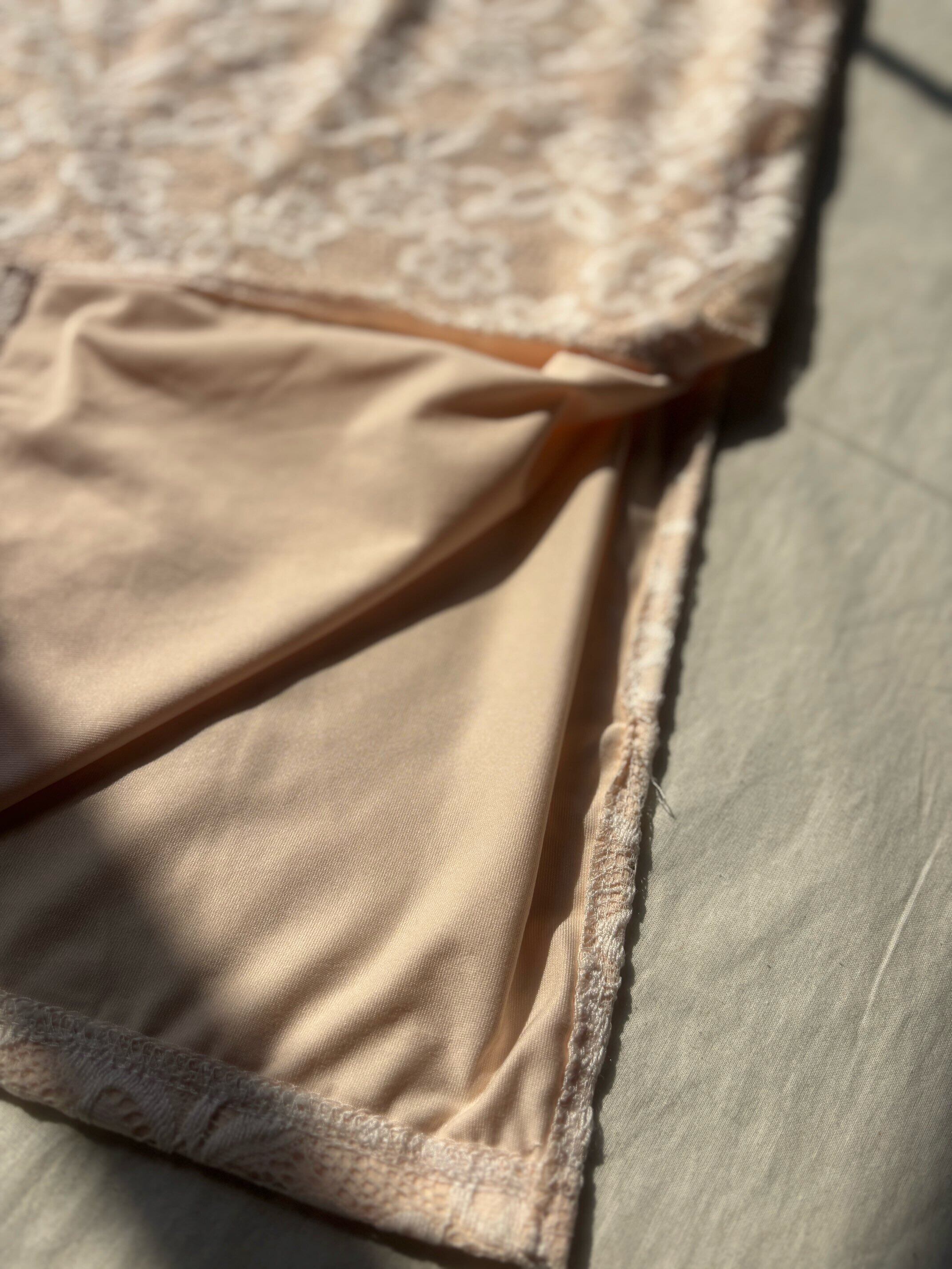 全体的にタイト目なスカートですが、スリットが深めなので一枚で履いても可愛いですが、重ね着でパンツを履いても可愛いと思います。