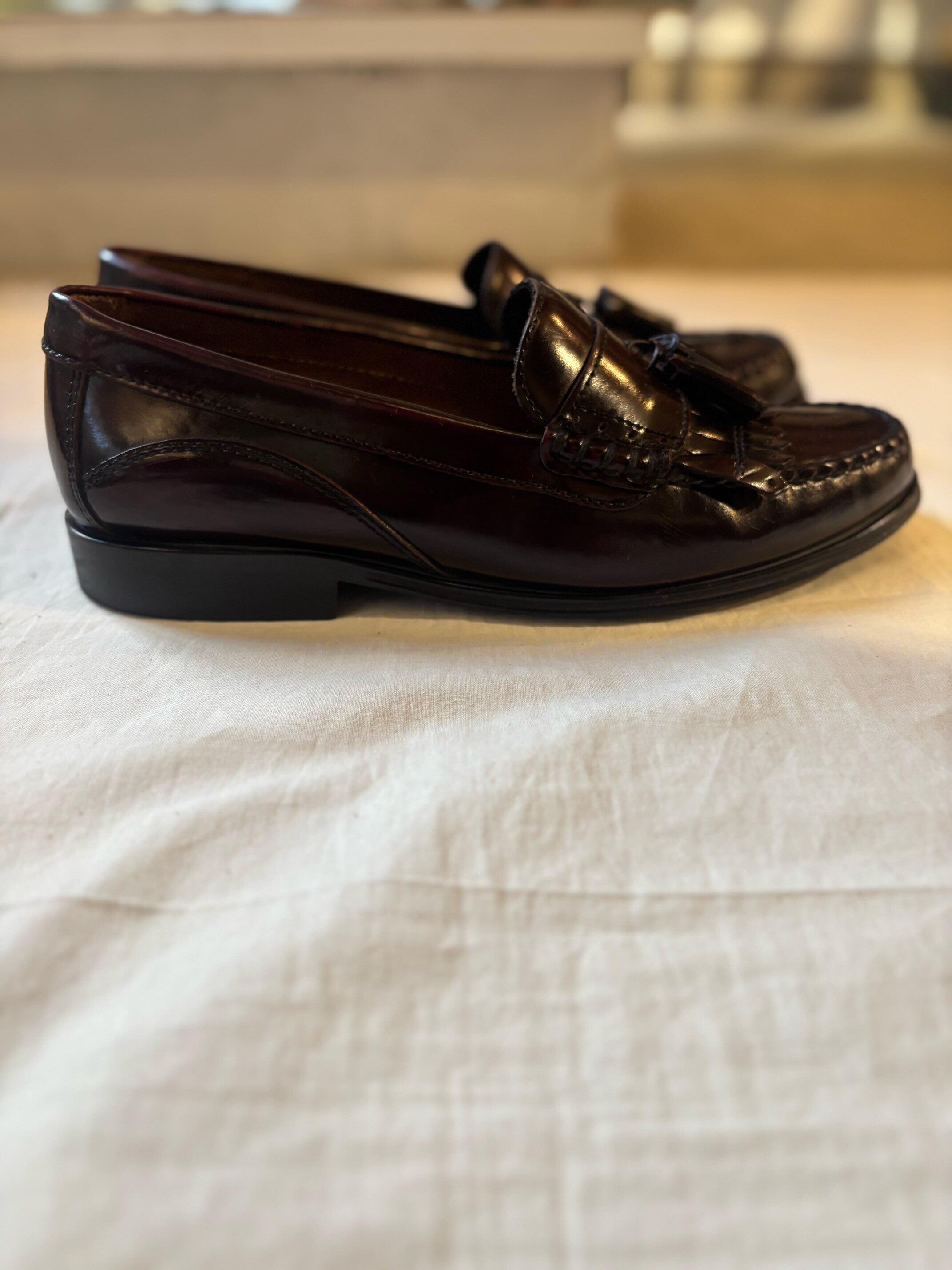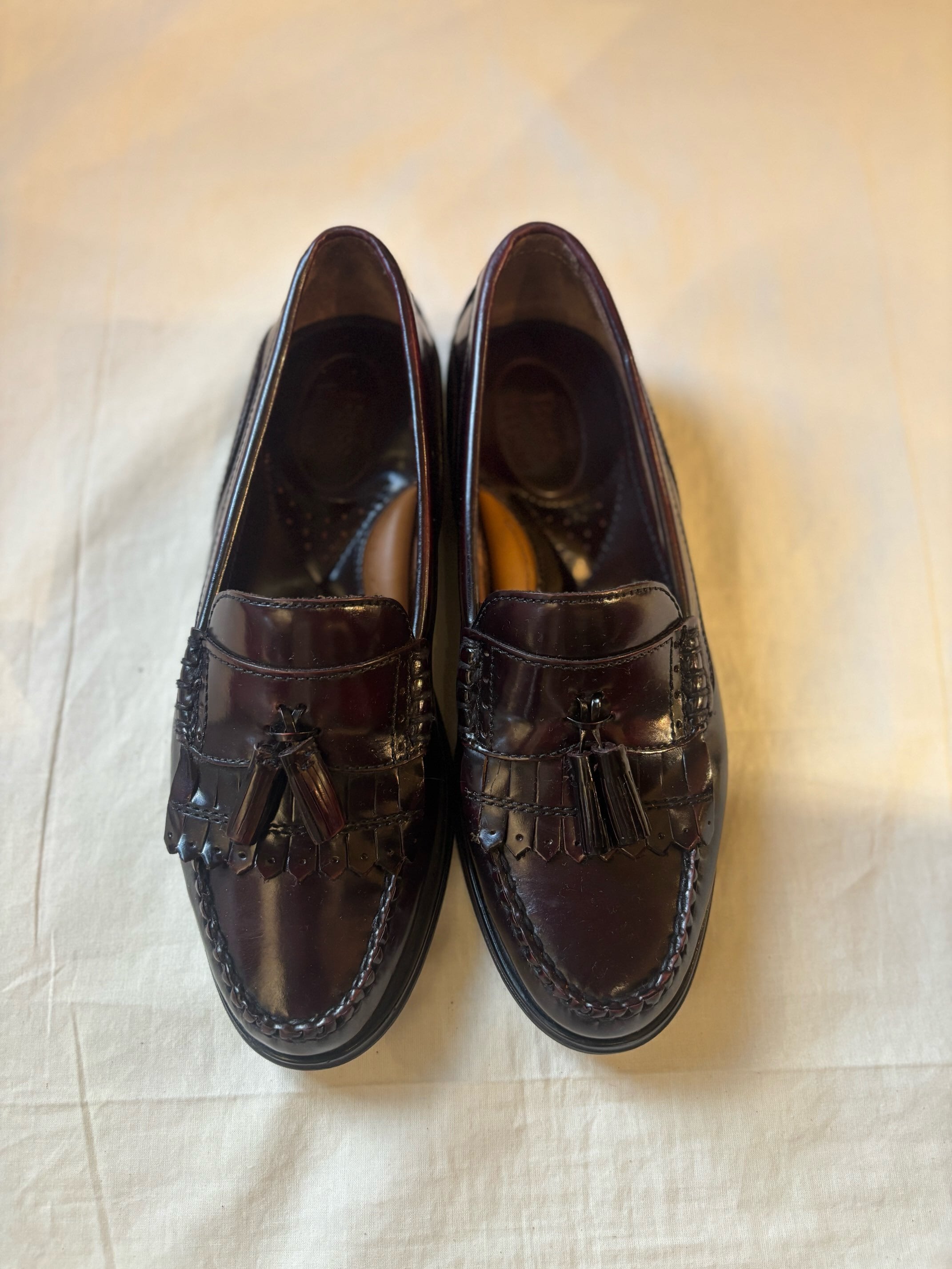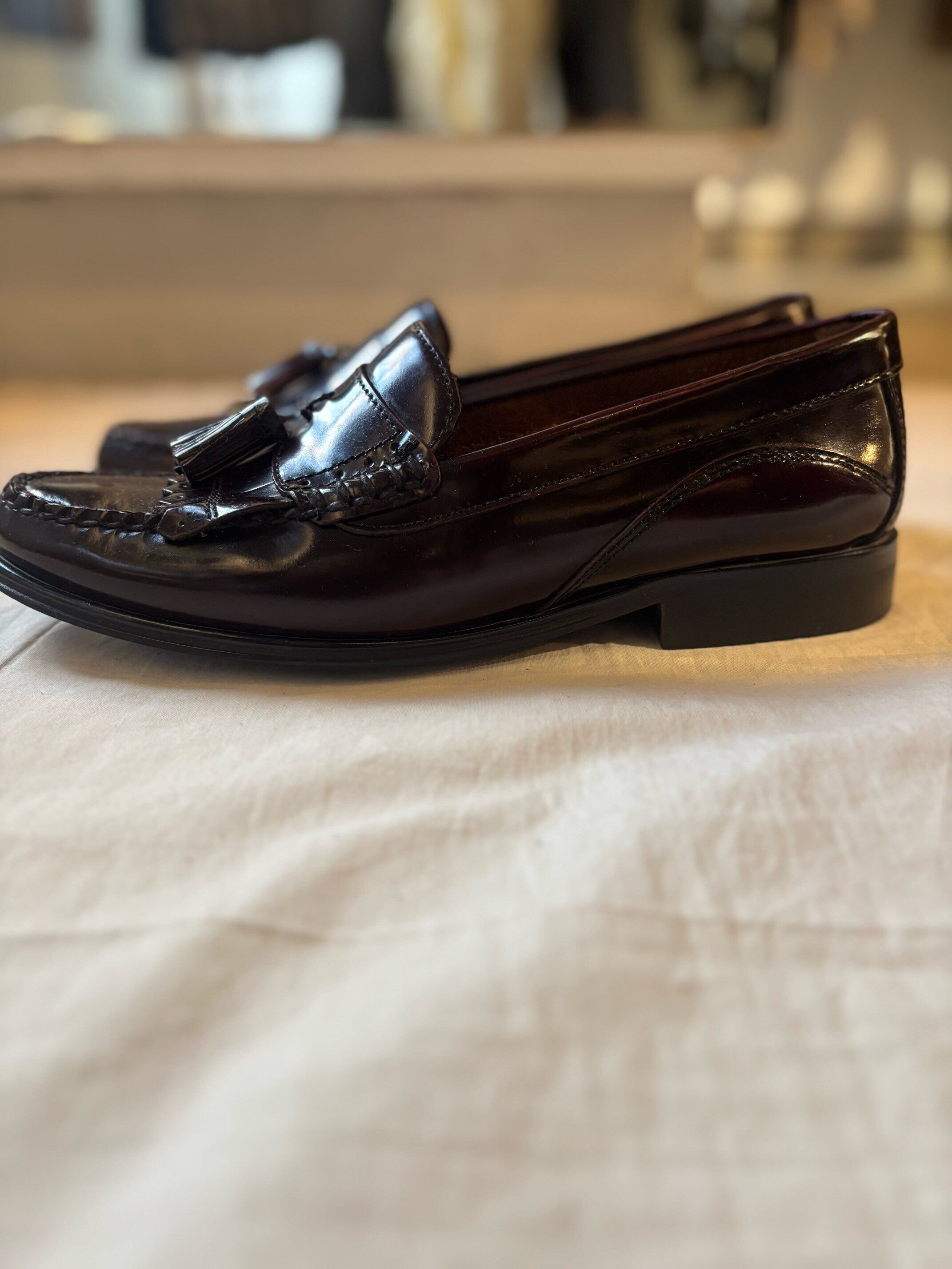 ワインレッドの深い色にキルトタッセルの付く可愛いデザインのローファーです。