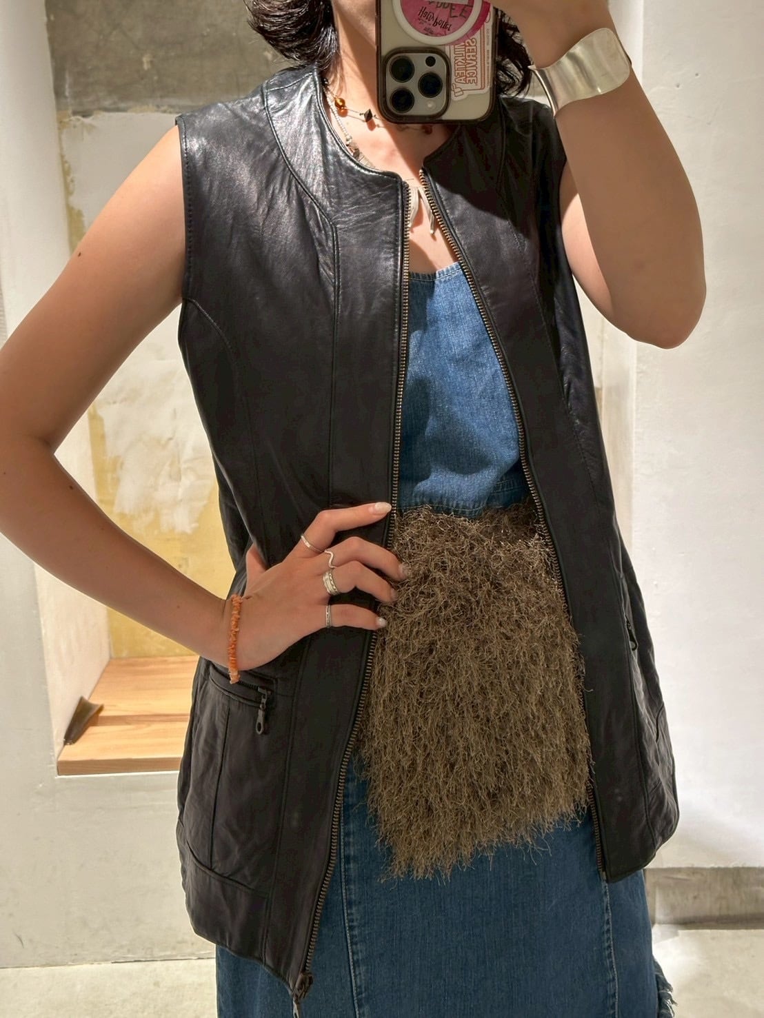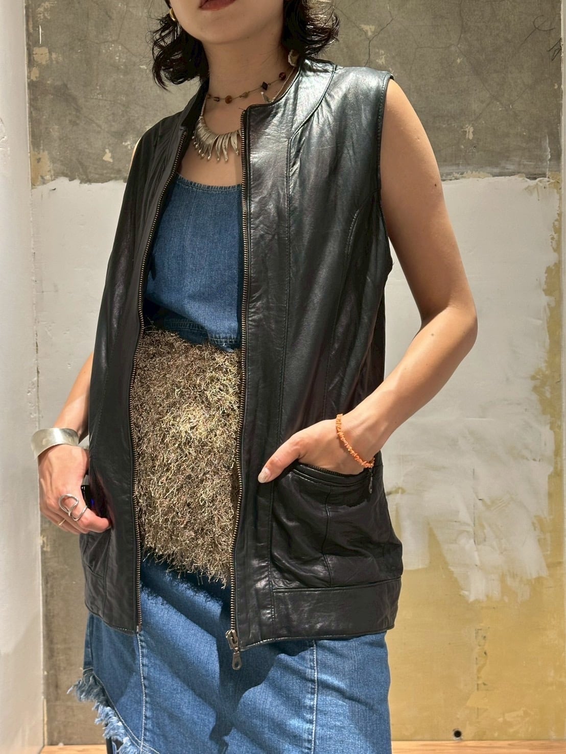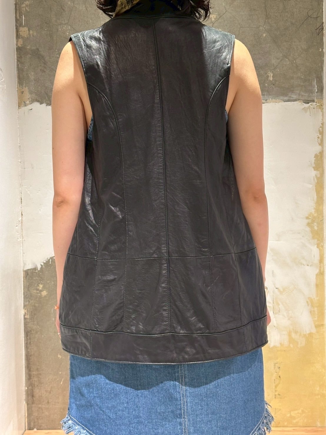 今期も秋冬の主役であろうレザーのアイテムですが、新品のブランドのレザーの高騰がとまらない状況ですので、ここ数年は古着で探している方も多いと思います。その中でもレザーベストはなかなか良い形のものが少なく、入れたくてもなかなか入荷出来ません。多いのがジレタイプのものが多いのですが、stylingが限られるので買い付けも余程良い形のものでないと入れません。その中でこちらのベストは突破が首まで閉まるタイプ、裾がスクエアでアウターとしても可愛い形、更にラムレザーで軽くて柔らかいという3拍子揃ったベストになります。