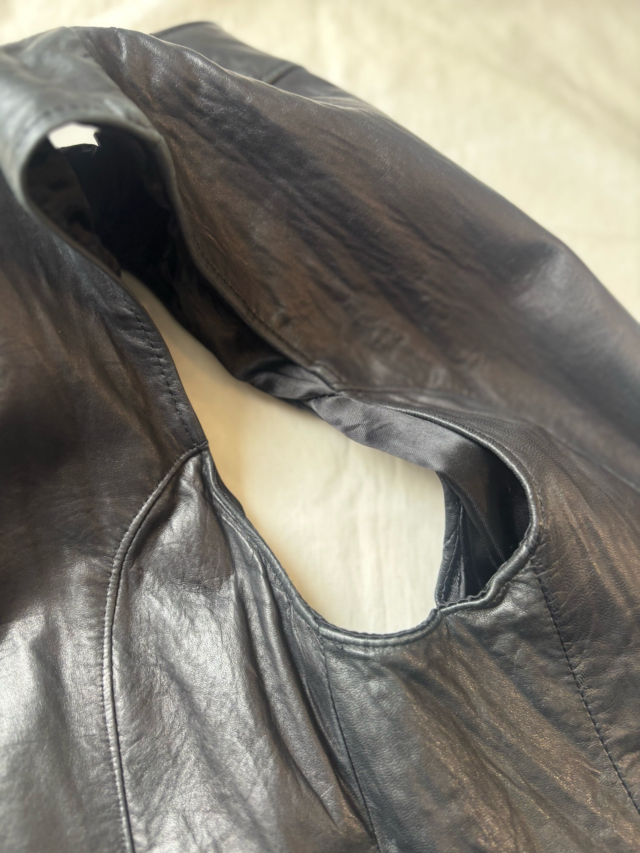 状態:右肩あたりに数カ所、左ポケット内側に一箇所レザーの破れがあります。目立たないのでそのままでも大丈夫だと思いますが、お直しで埋める事も可能です。