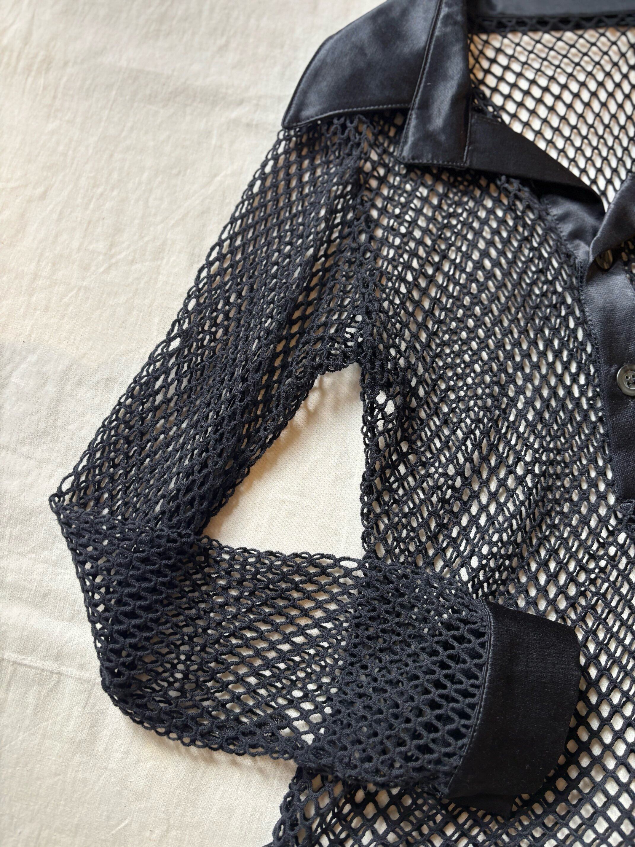 イタリアらしい色気のあるアイテムですね。メッシュになったボディに襟と袖のカフスはサテンのような光沢感のある素材が使われたポロシャツです。タイトに着るように作られていますがエラストマーという、伸びて元に戻る性質の合成繊維が使われていて着心地が柔らかくなっています。