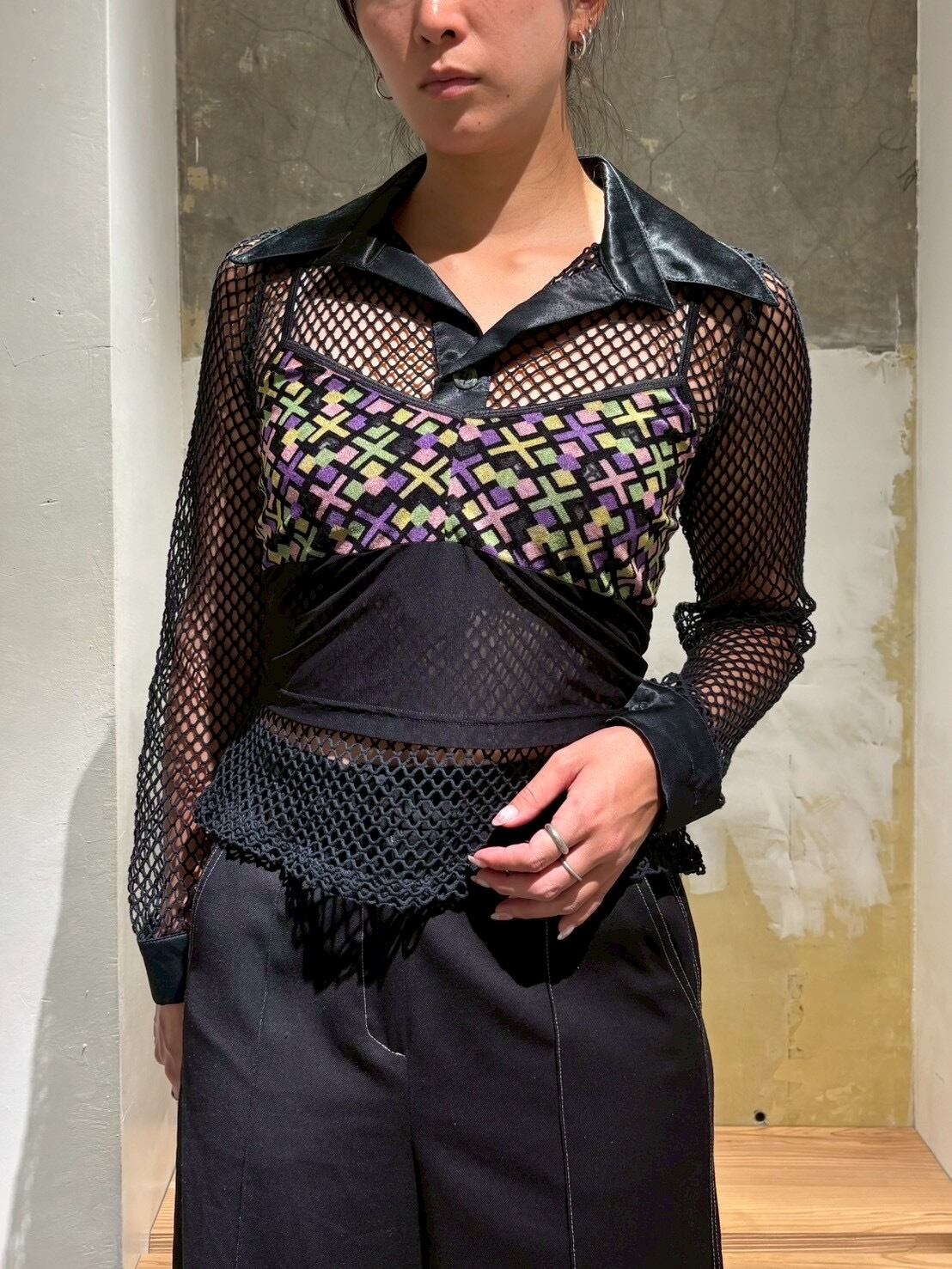透ける素材は夏用と思いがちですが、秋冬にもニットをレイヤードして着たり、厚手のアウターのインナーにインナーを軽く見せるために使ったりと、意外と活躍の幅が広いアイテムです。特にこちらのアイテムの場合はインナーにリブニットなどを重ねてもらえれば、今の暖冬の日本では使える季節が長いと思います。