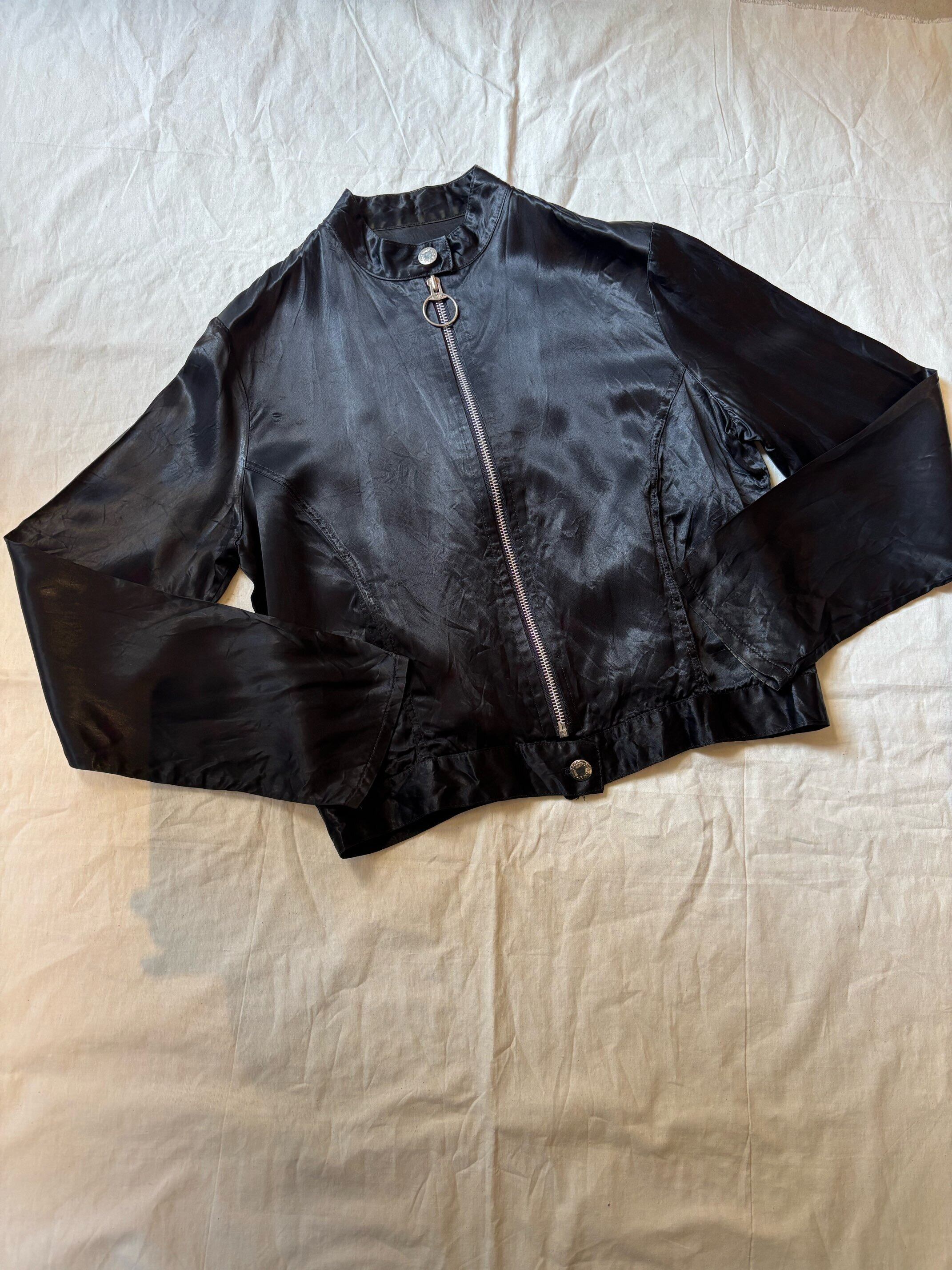 サテンの質感がとても品があり良い感じです。ロックなジャケットです。是非ご検討ください。