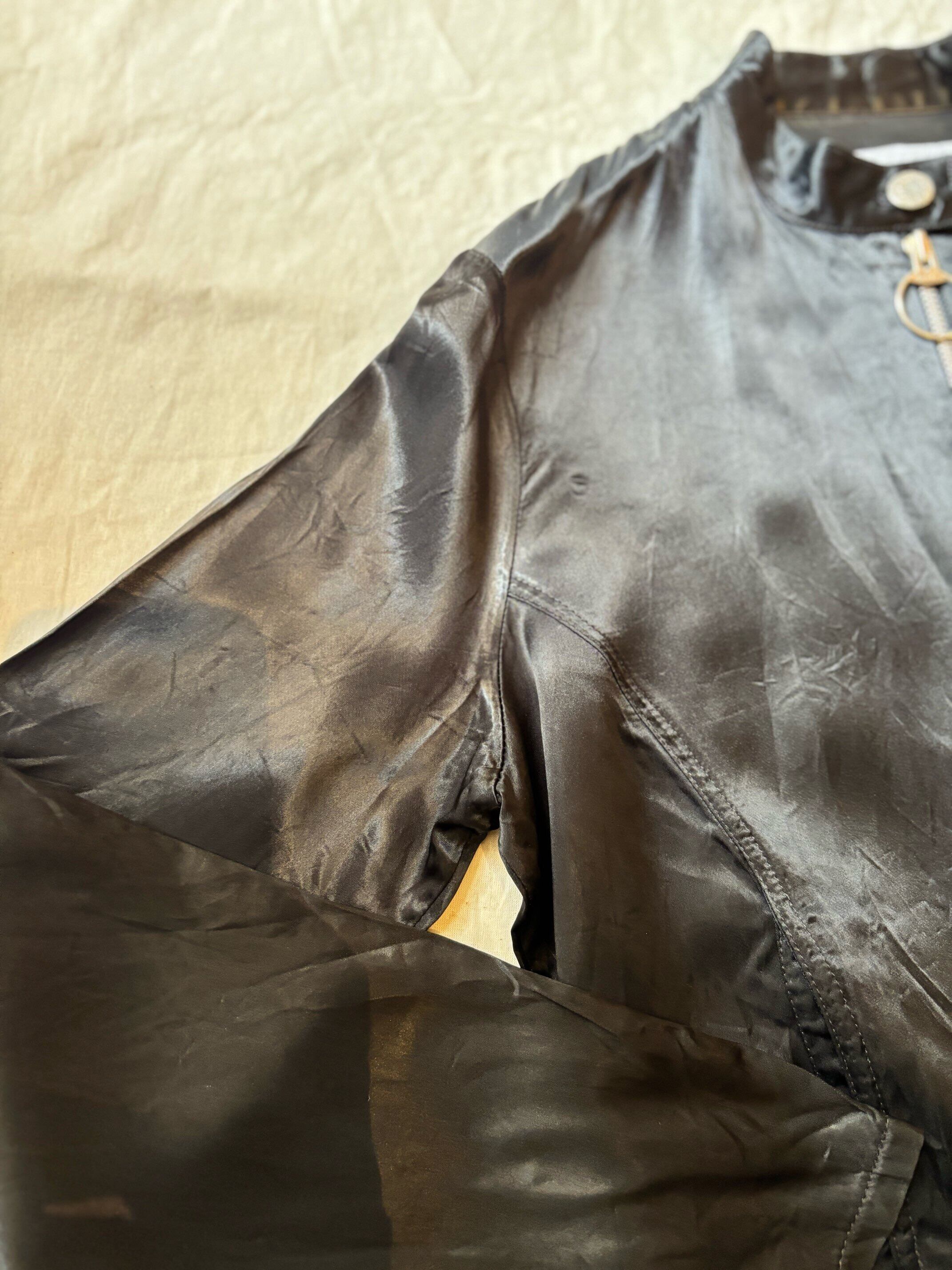 70年代頃のサテン素材のシングルライダースジャケットです。