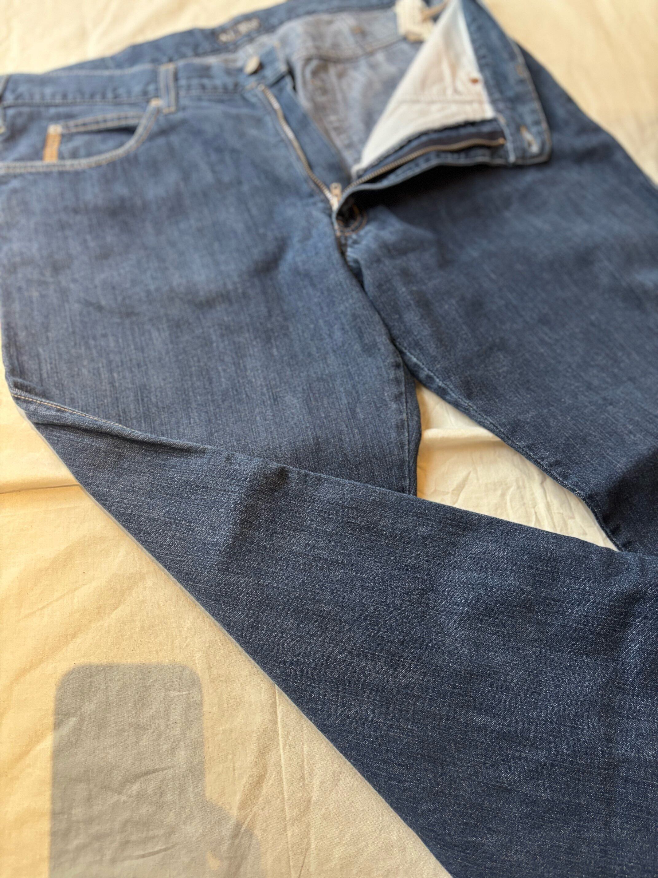 先日91歳で生涯現役のままお亡くなりになられたジョルジオアルマーニさんですが、80年代にはブランドとして成長し、どこのブランドよりもいち早くライフスタイル全般を扱うブランドとして様々なブランドが生まれました。そのうちの一つのラインのアルマーニジーンズ。若者層に向けてカジュアルな提案を軸に行っていたブランドですが、こちらは恐らく90年代頃のデニムだと思います。