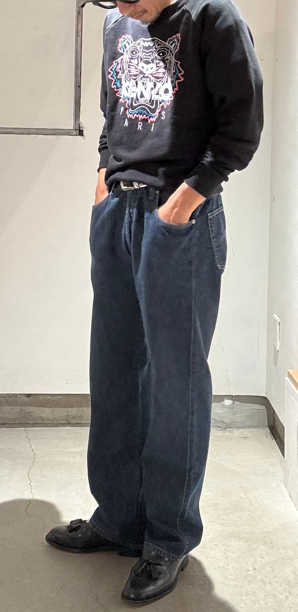 セミワイドのストレートシルエットに軽いオンスの素材、レザーパッチやブランドのロゴもしっかり残っています。個人的に今デニムを履くならこの位、いい意味で力の抜けた太さとシルエットのデニムは気分です。こちらのデニムにレザーブルゾンを着たりするのもかっこいいと思います。