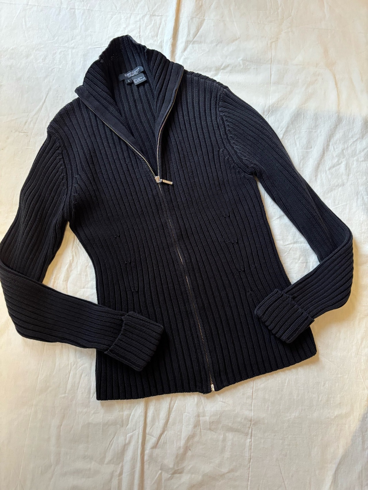 ブラックのニットなので何にでも合わせる事が出来るのでとても便利なアイテムだと思います。スカートやボトムスと合わせて着るといいと思います。