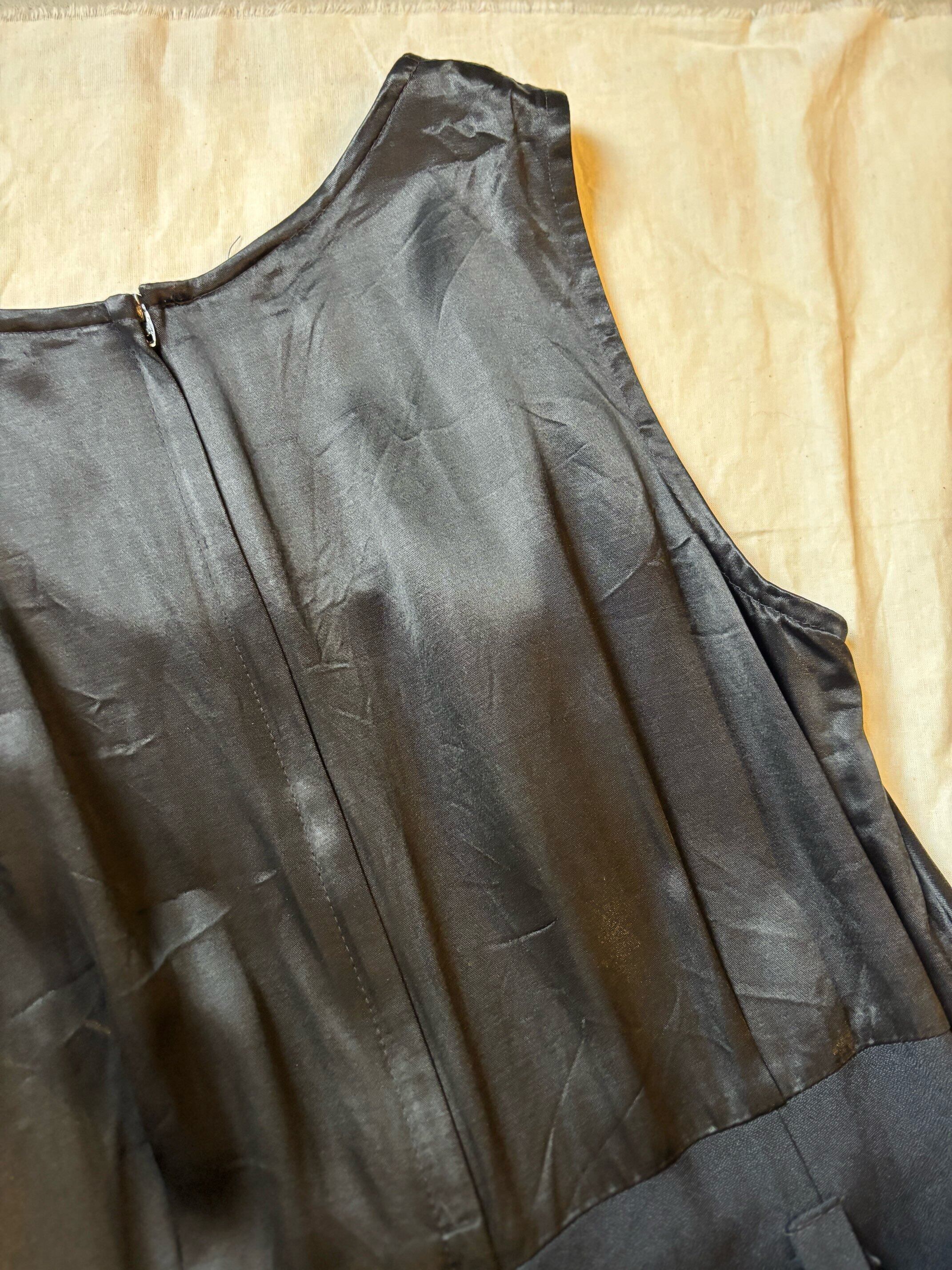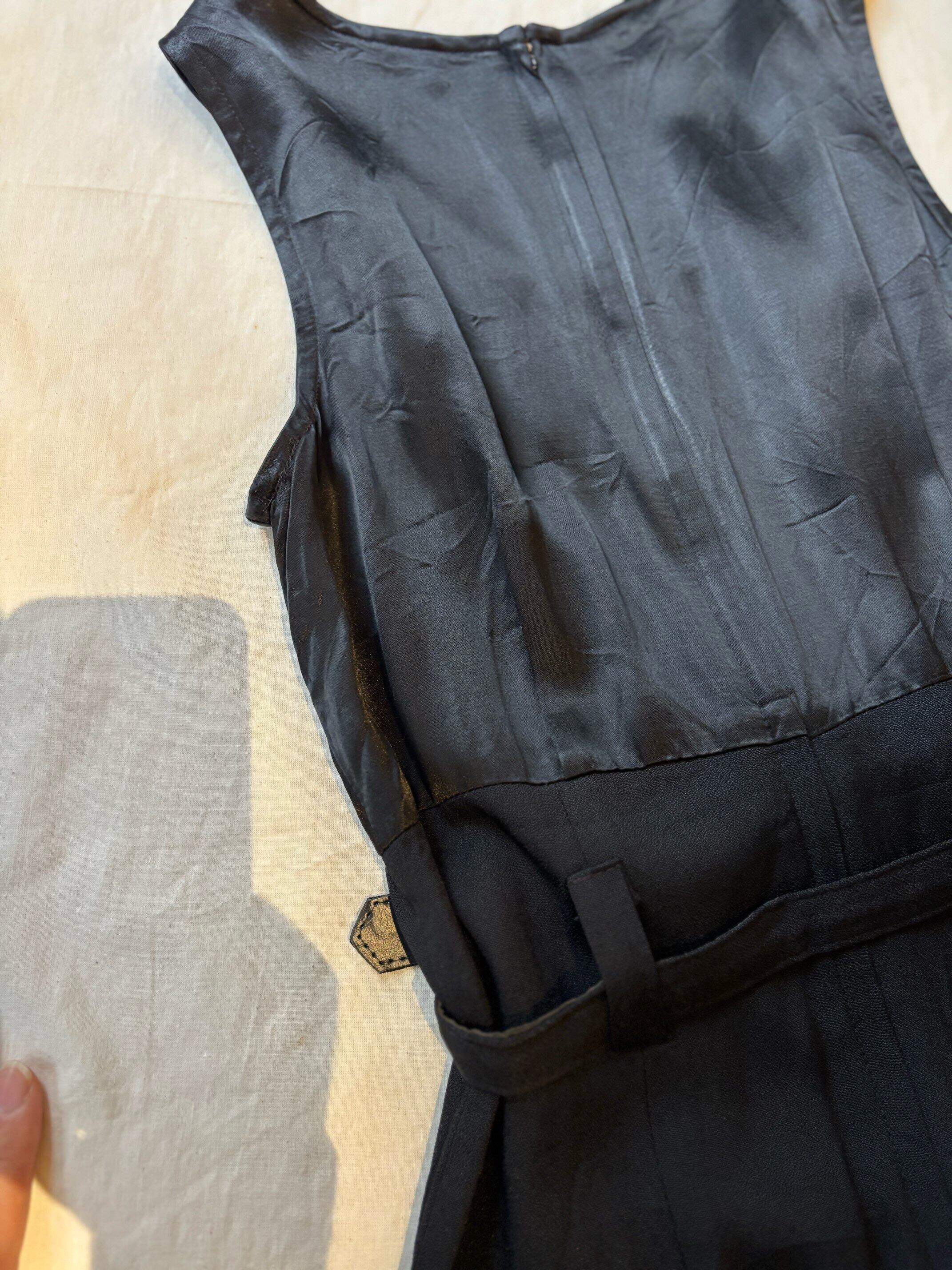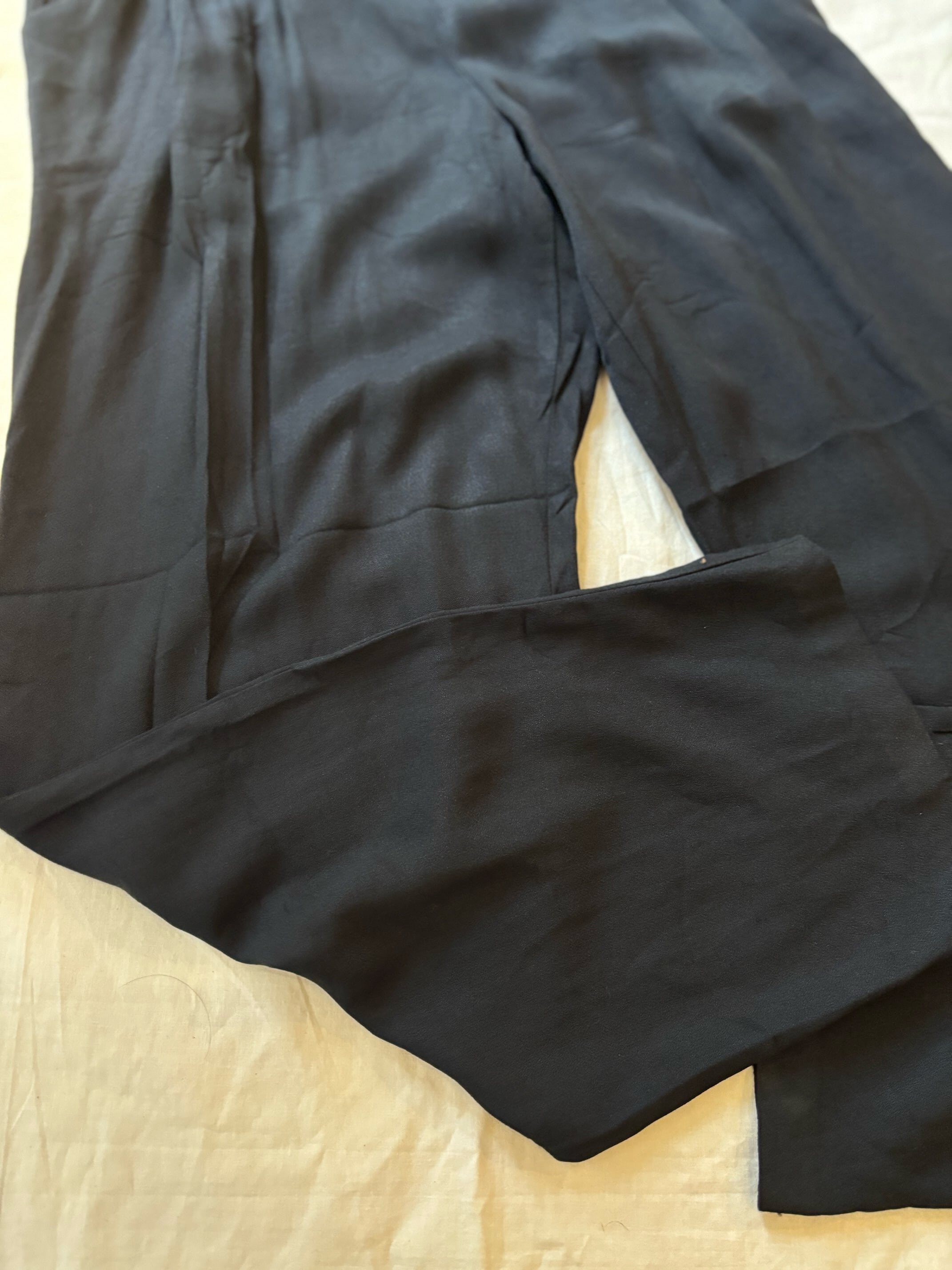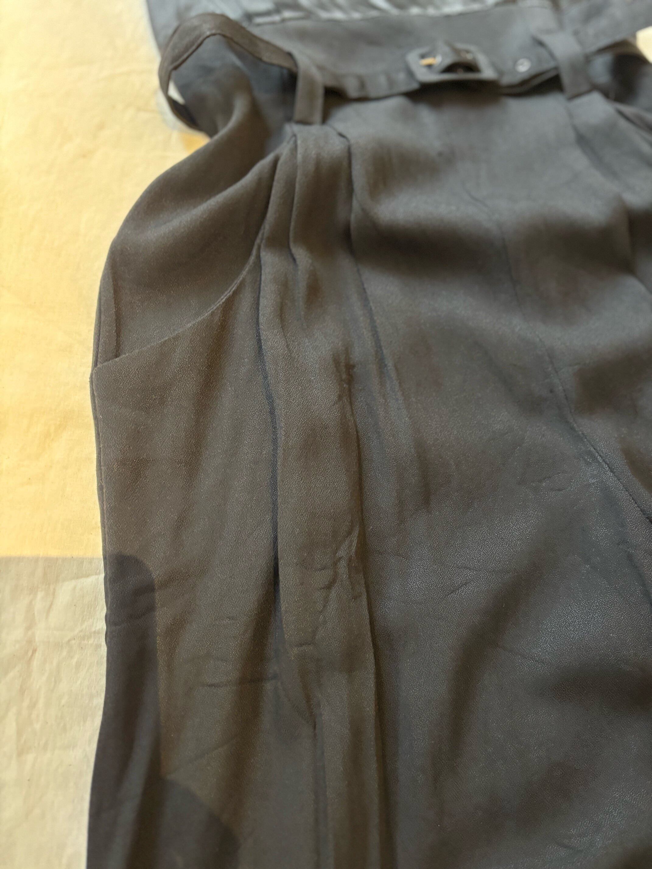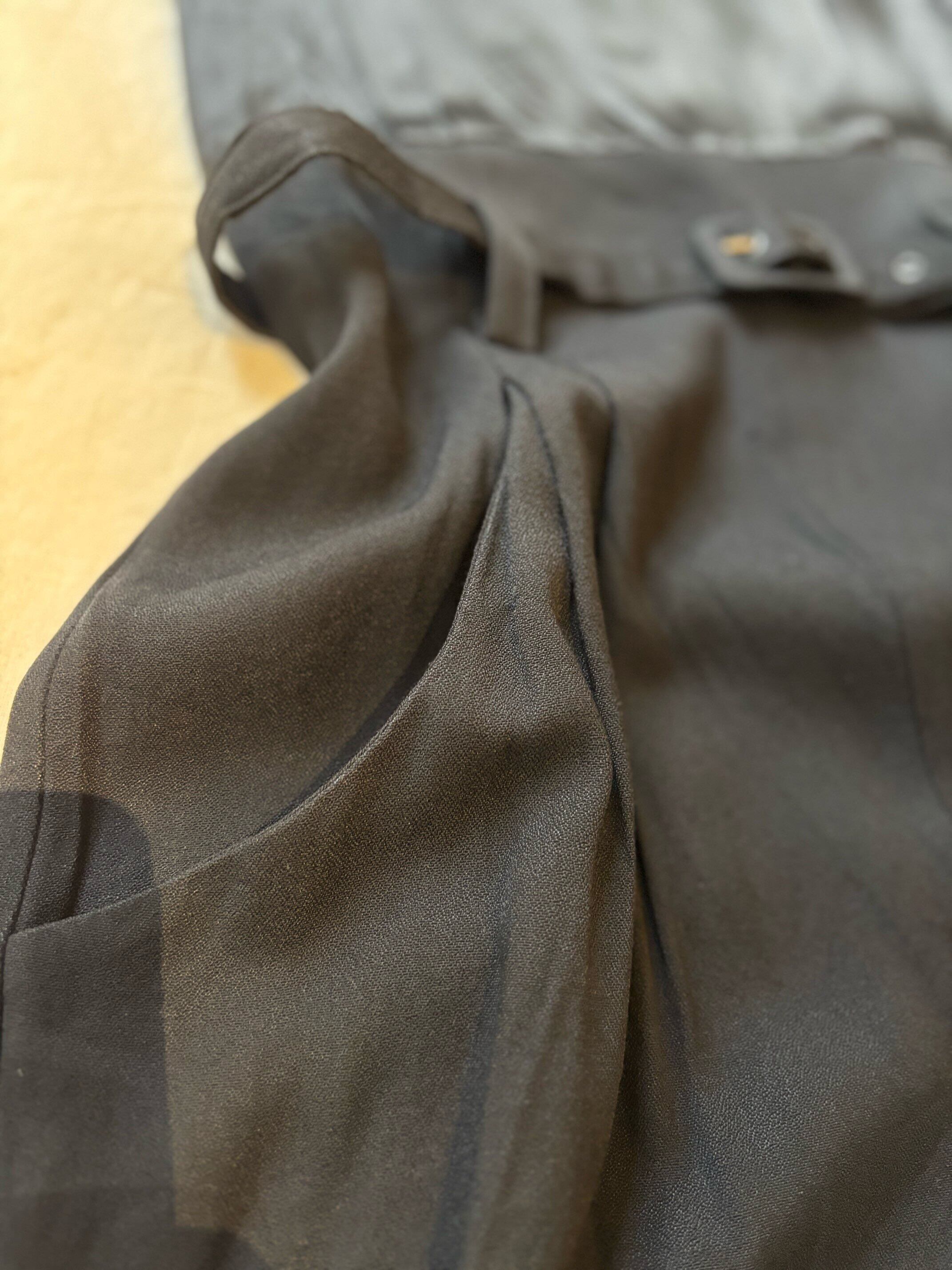 上半身が光沢のあるサテン、下半身は艶のない素材のとろみのあるレーヨン系の素材のジャンプスーツで、インナーを色々変えればほぼオールシーズン使えるアイテムです。