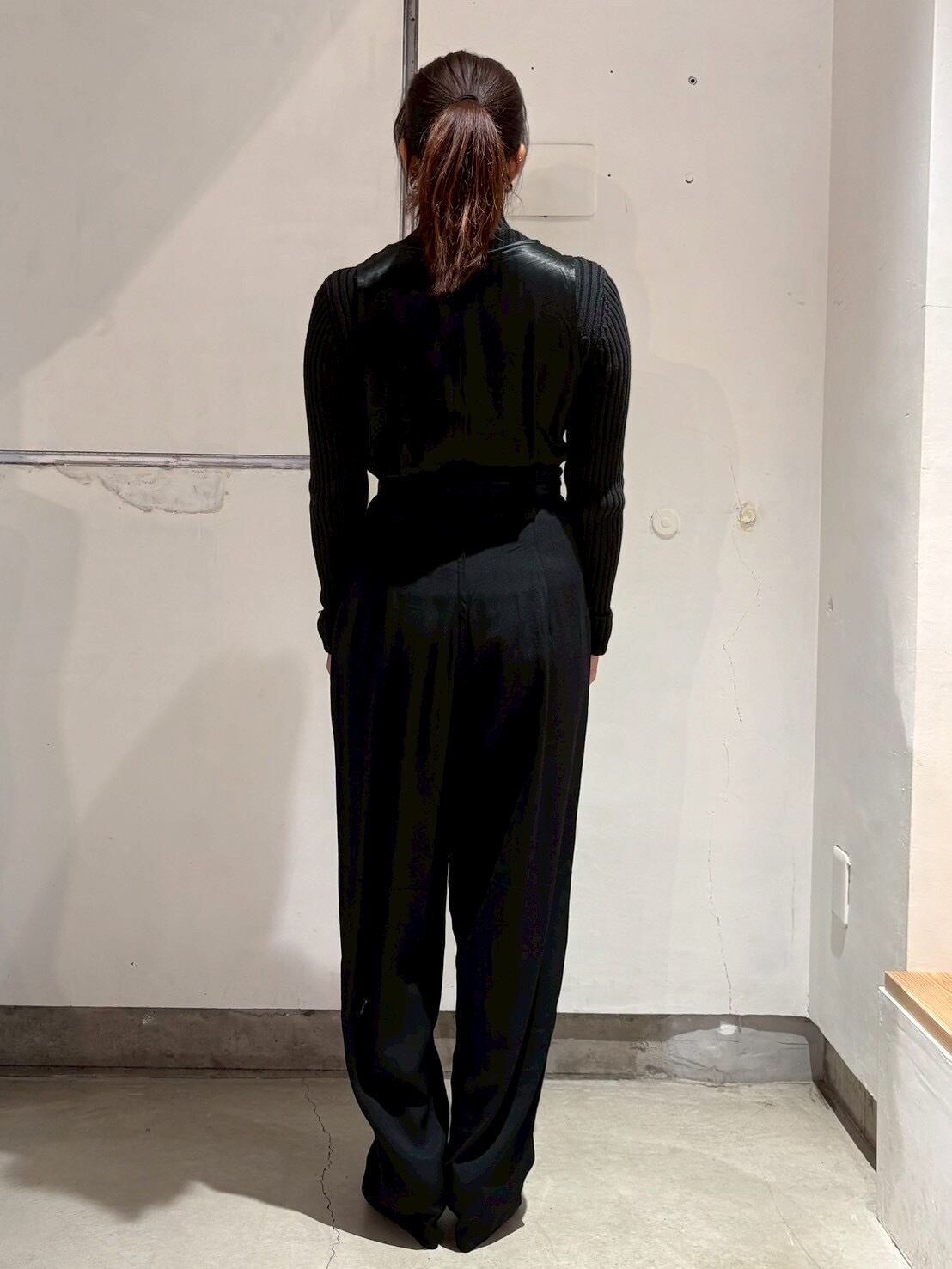 ボトムスもゆったり目なので楽ちんで履けるのも嬉しいです。この手のアイテムは全体を綺麗にまとめるのも良いのですが、どこかにカジュアルなアイテムを合わせてあげるとおしゃれになるので、今回はワークジャケットを合わせてみました。このようにカジュアルなアイテムを合わせて着るのも良いと思います。