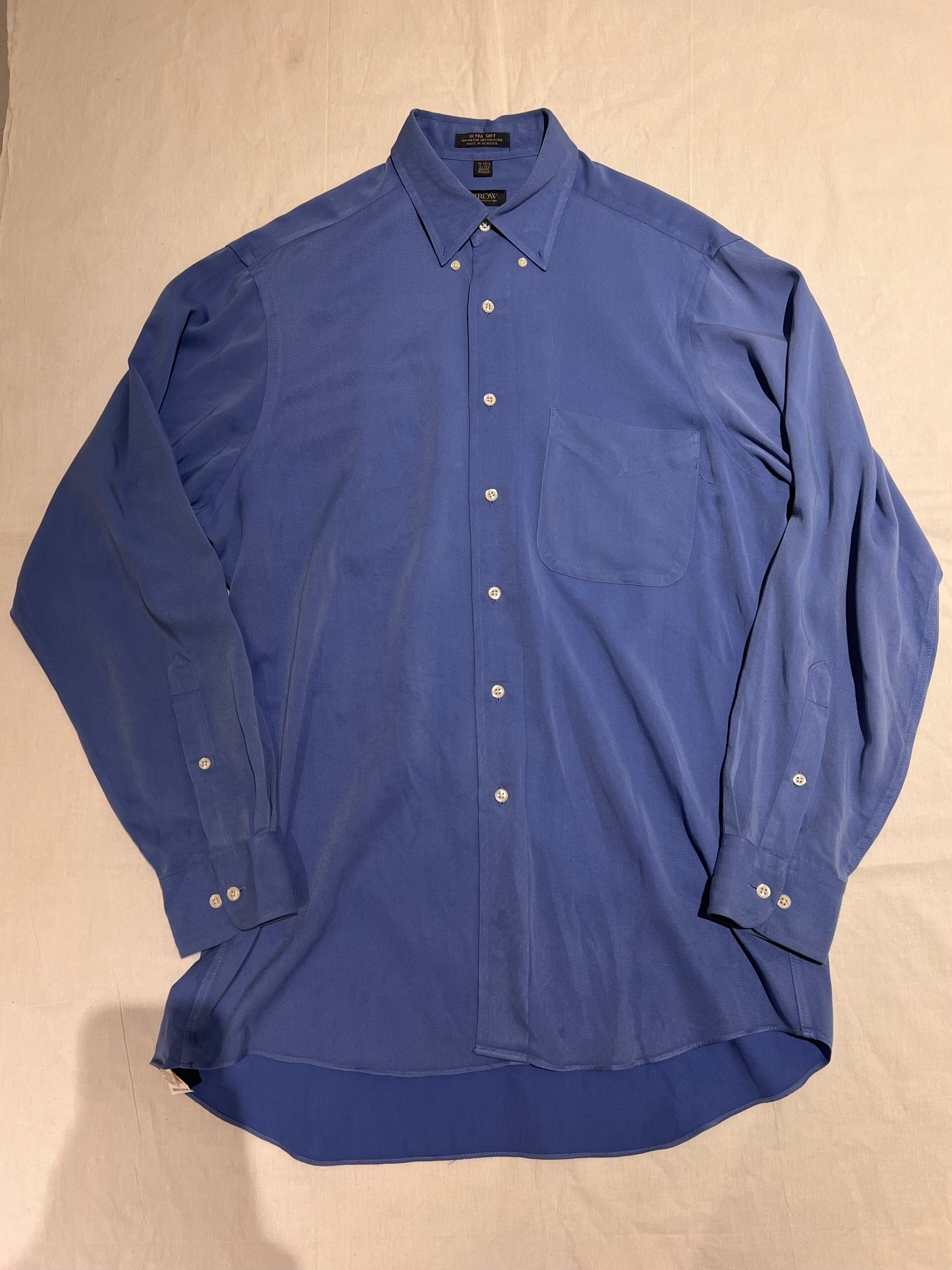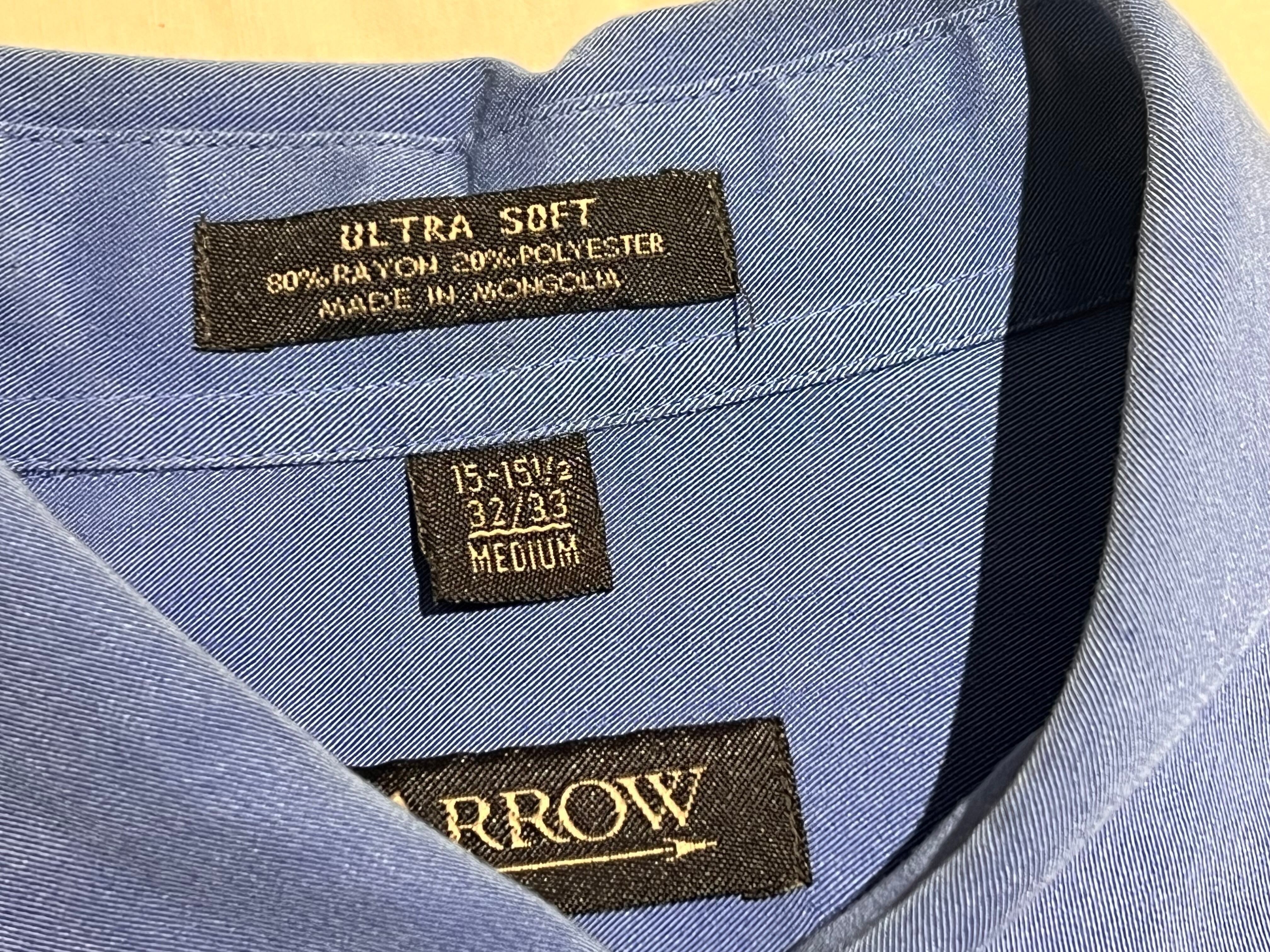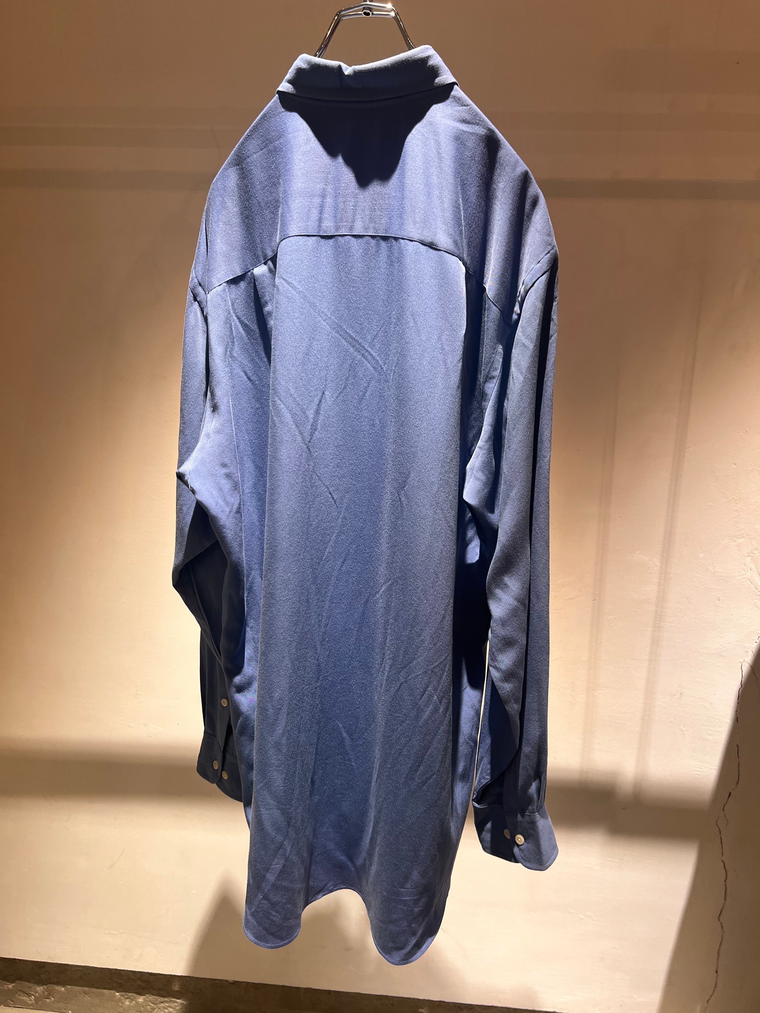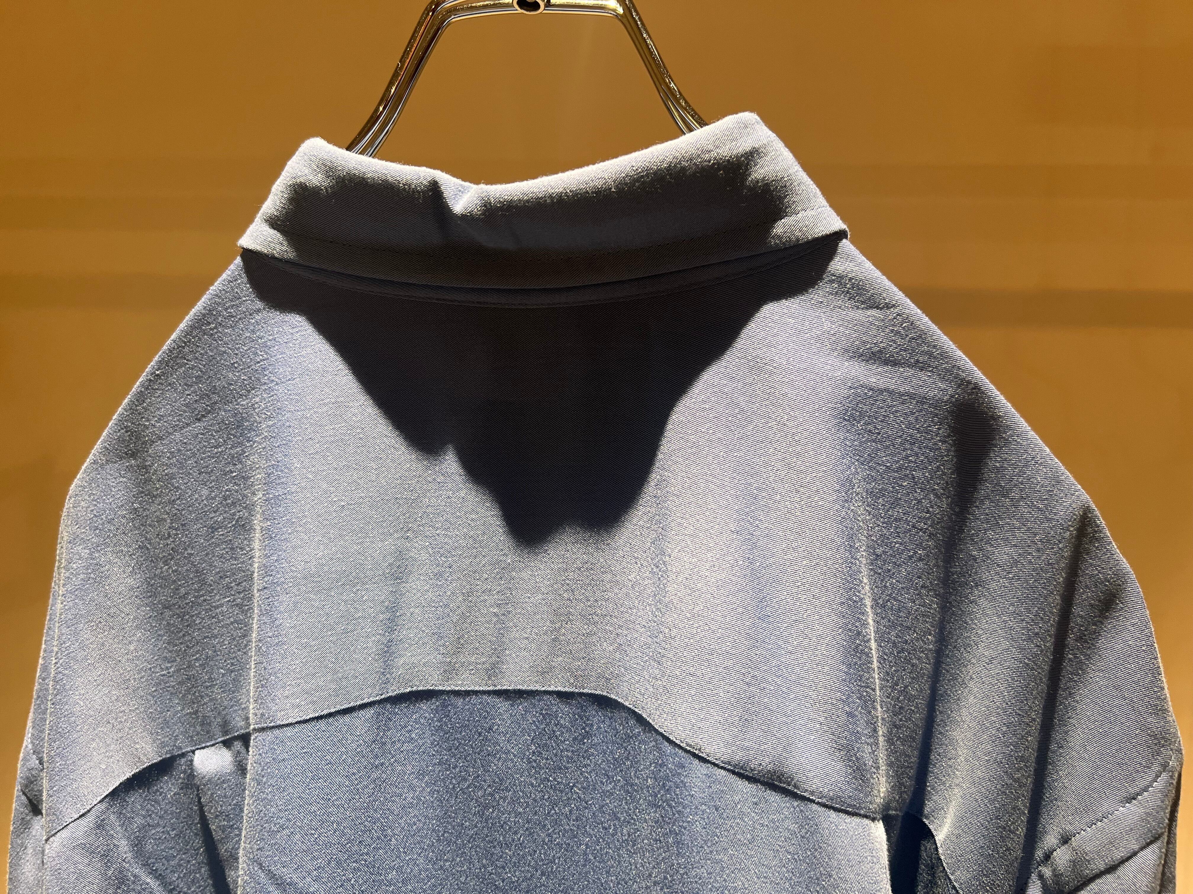 その中でもレーヨン×ポリのシャツは初めて見ました。レーヨン特有のゆるっとした質感はありながら、上質な光沢と発色の良いブルーが特徴的です。