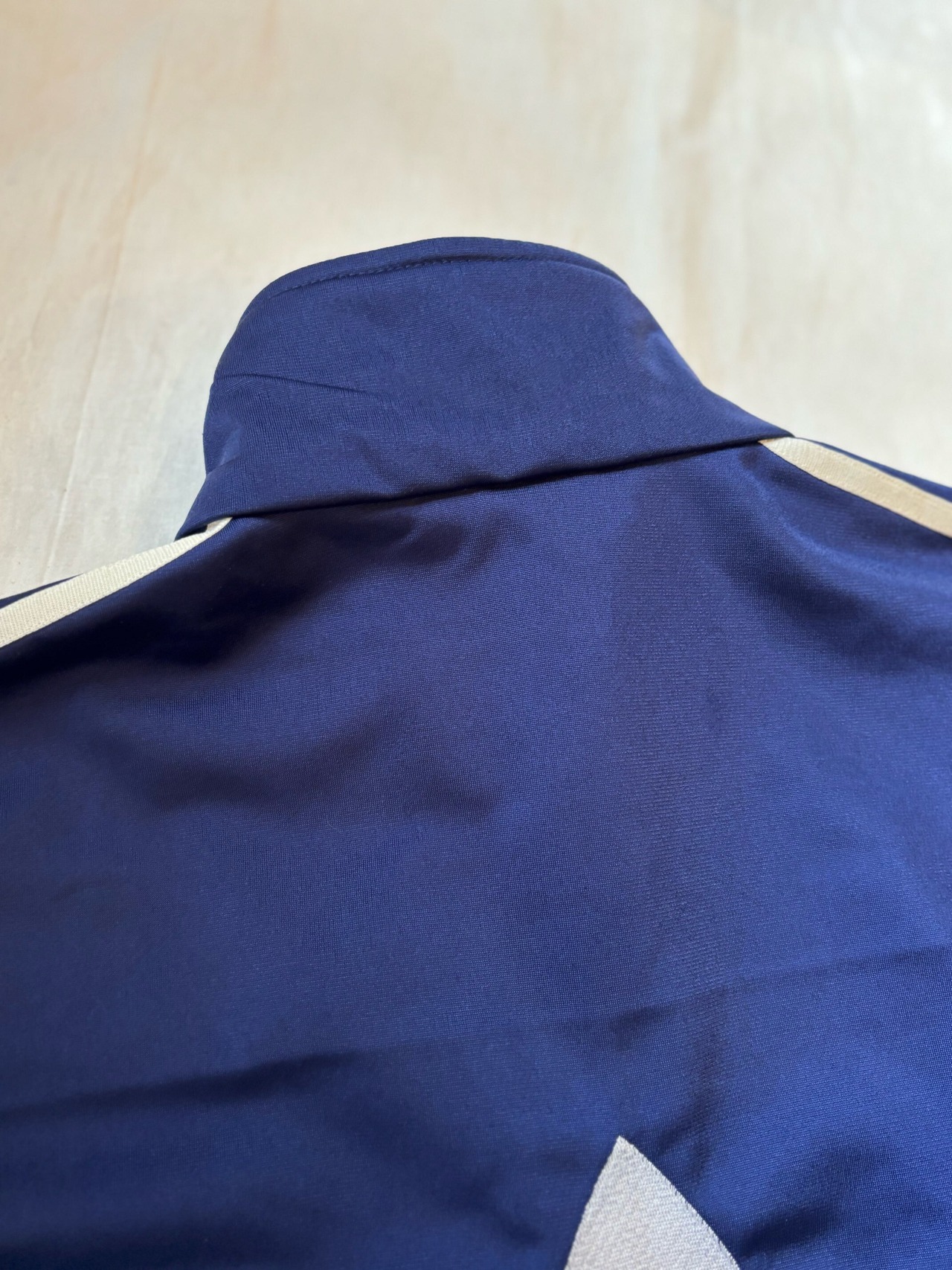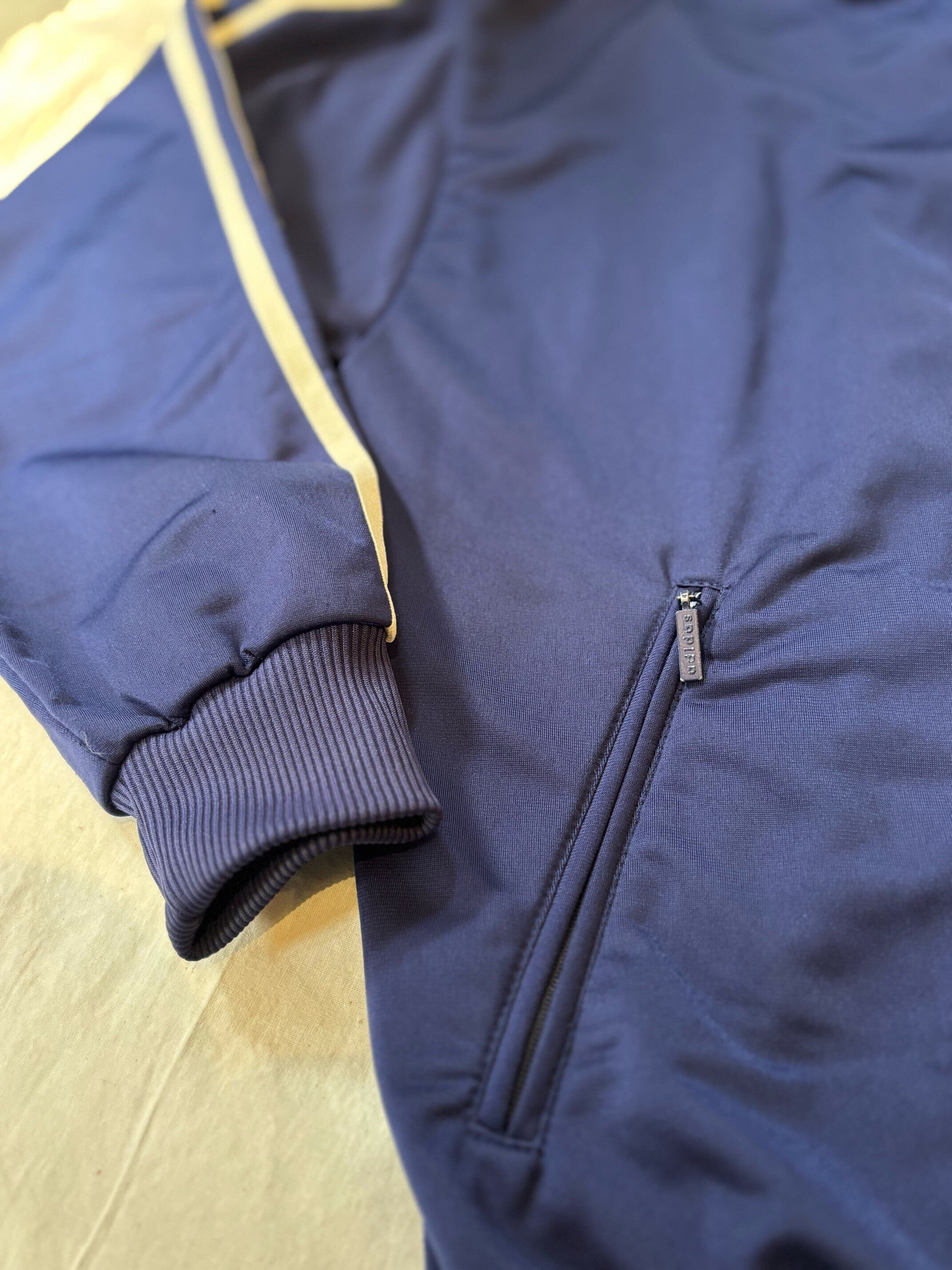ネイビー×ホワイトの鉄板カラーですが、バックに大きくトレフォイルが入ります。ちょっとダサい感じが逆に良いと思います。
