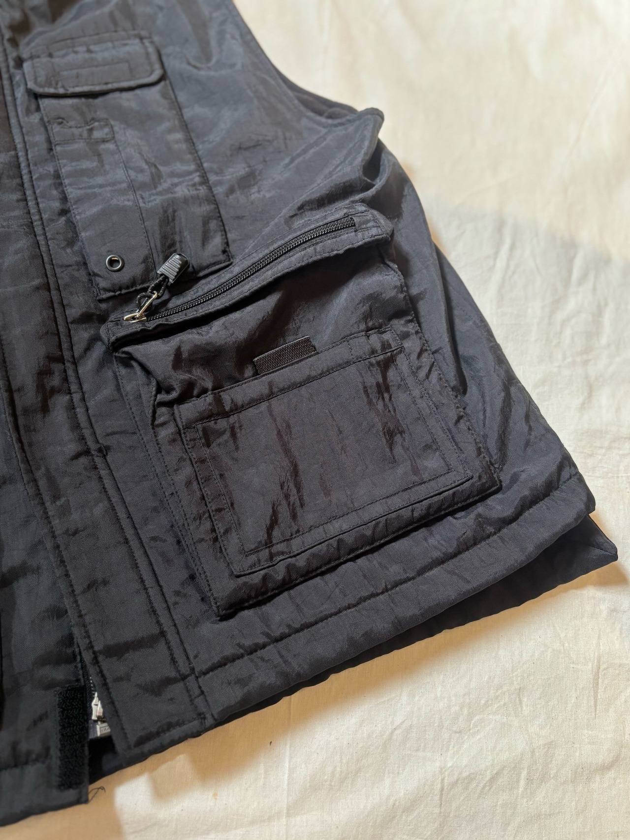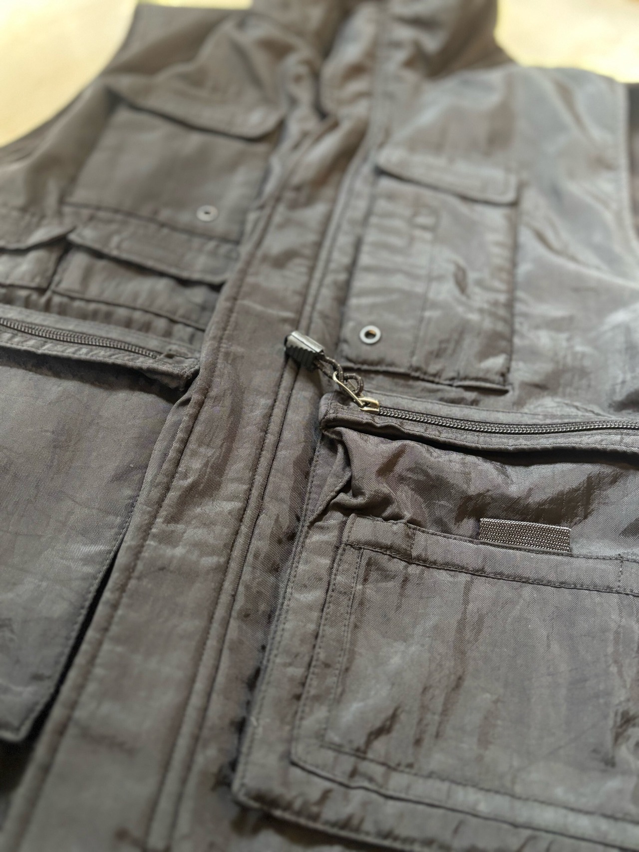 とても珍しくかなりレアなモデルだと思います。ミリタリーのデザインをサンプリングしていてフロントには7つのポケットが付きます。インナーにはフリースが付くので保温性も高く、扱いやすいのでとても便利なアイテムだと思います。