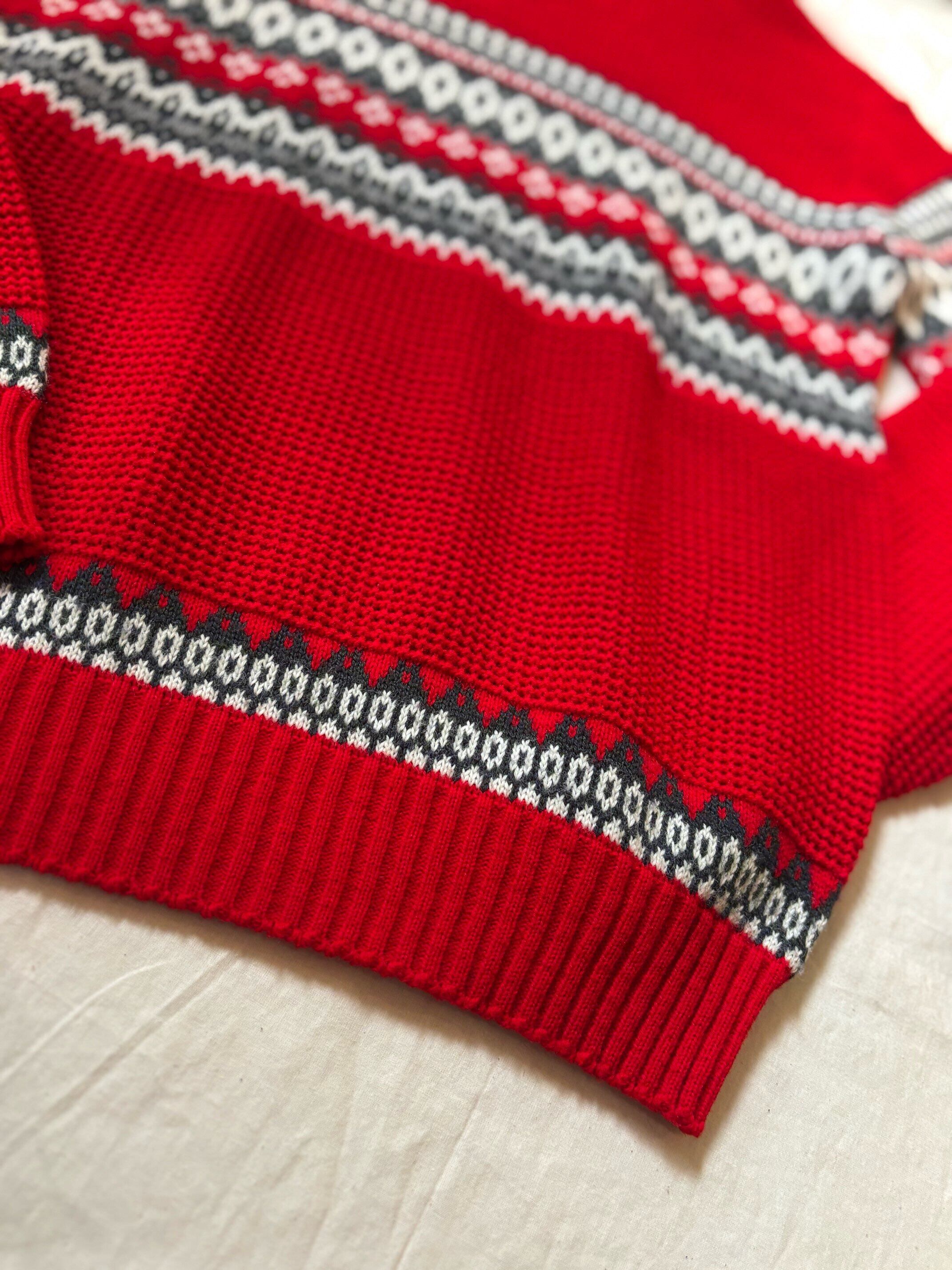 ノルディックは元々北欧の漁師さんなどが着ていた柄ですが、オリンピックなどを通じて世界的に流行になったのが60年代から70年代なので丁度その時代のアイテムになります。シアーズは元々アメリカの大手スーパーですので、日本で言うヨーカドーなどなのですが、とてもおしゃれな服を作っていたんですね。