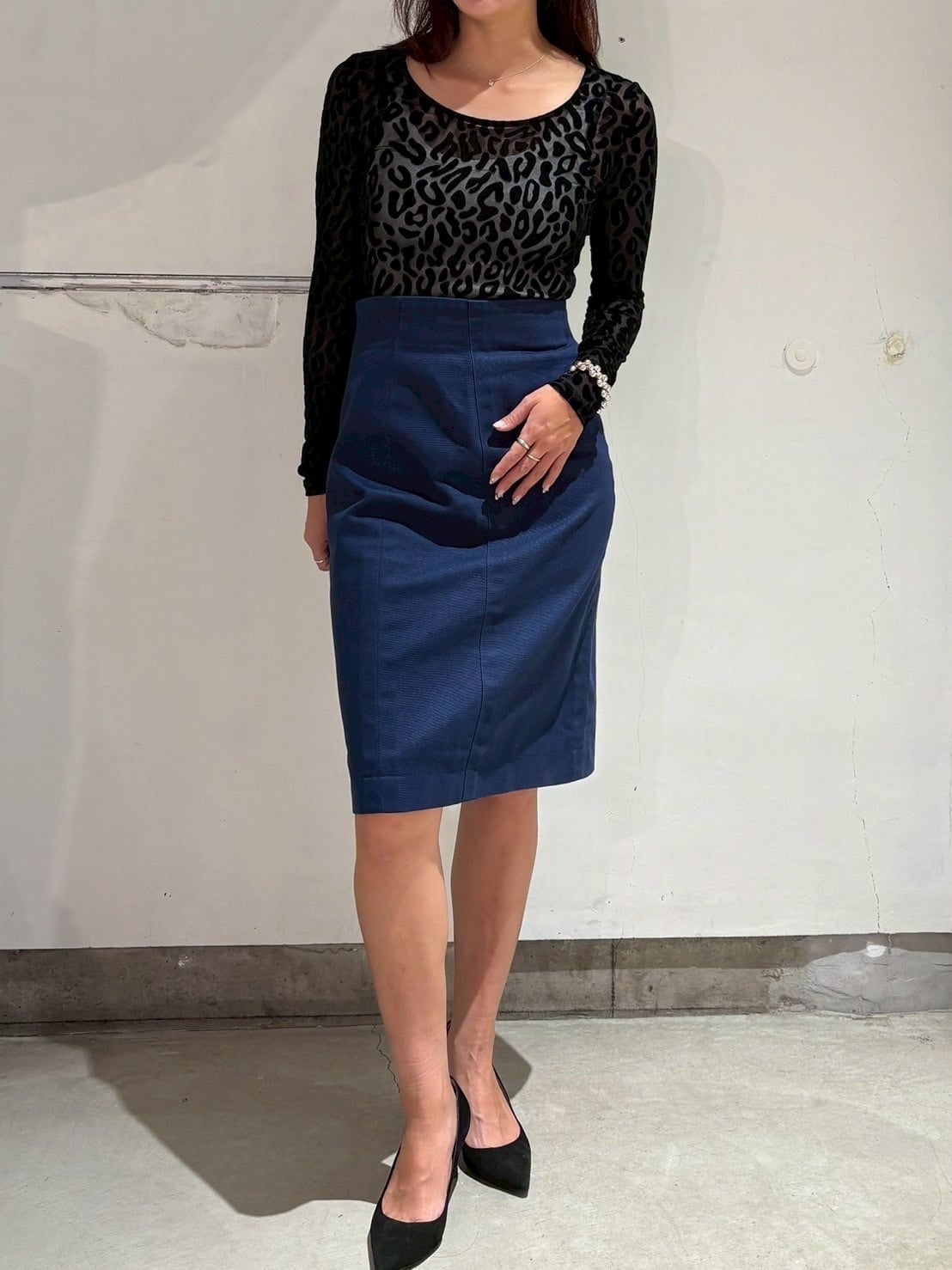 流石はセリーヌ。めちゃくちゃ形が綺麗です。よくこの丈のスカートはフレアになっているものが多いですが、こちらはややフレアなタイトシルエットなのでエレガント。膝丈は足が短く見えてしまう丈感なので難しいと思う方も多いと思いますがこの形の良さでしたらその心配は無さそうです。