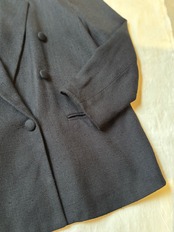 80年代らしい肩パッドに低めのゴージライン、ボタンは生地と共生地のクルミボタンが使われています。とても面白い生地感でレーヨンながら、表面に凹凸があるリネンのような生地感のジャケットです。裏地も付くので今の暖かい季節の長めな日本ではこのくらいの生地の方が長く着用できると思います。
