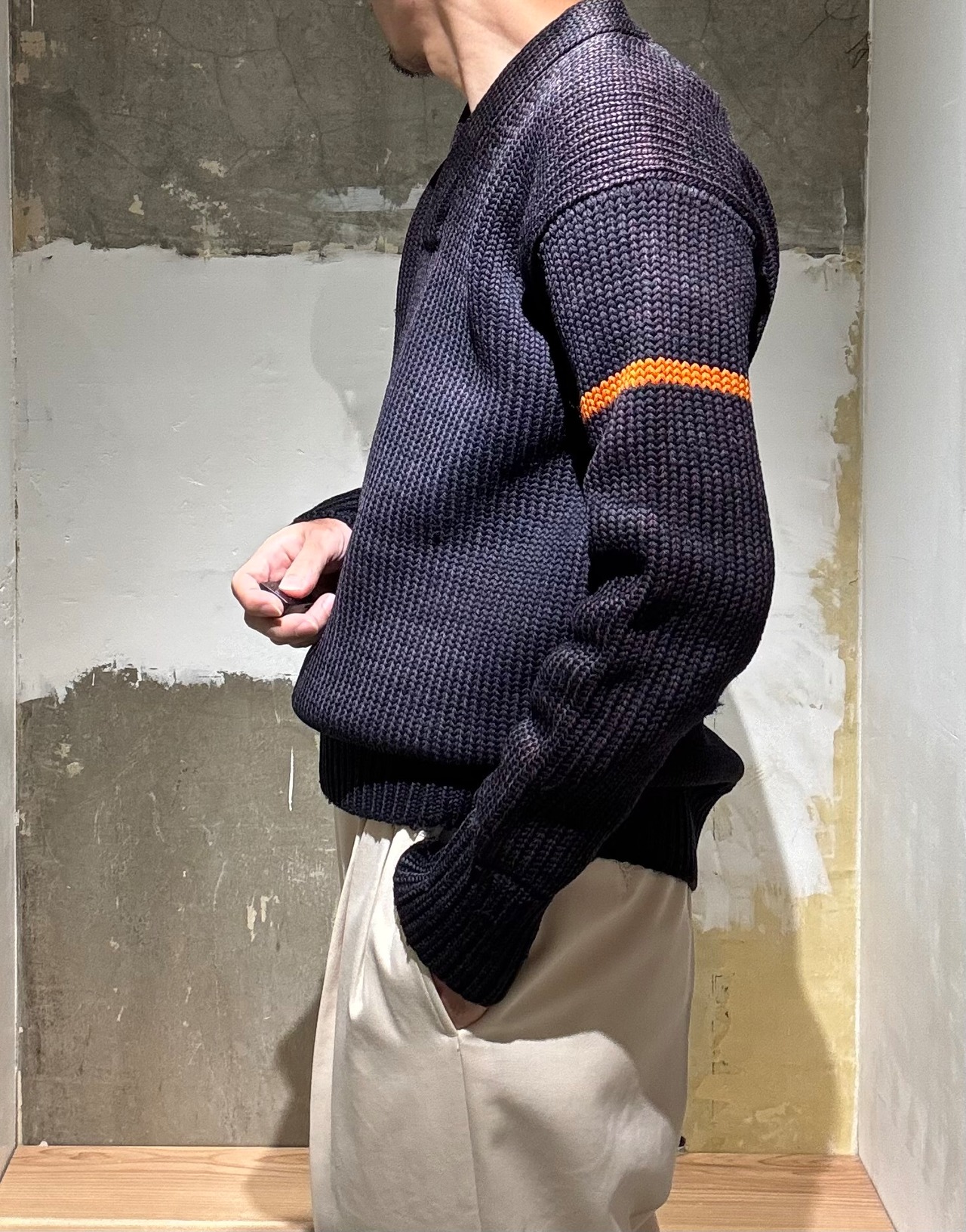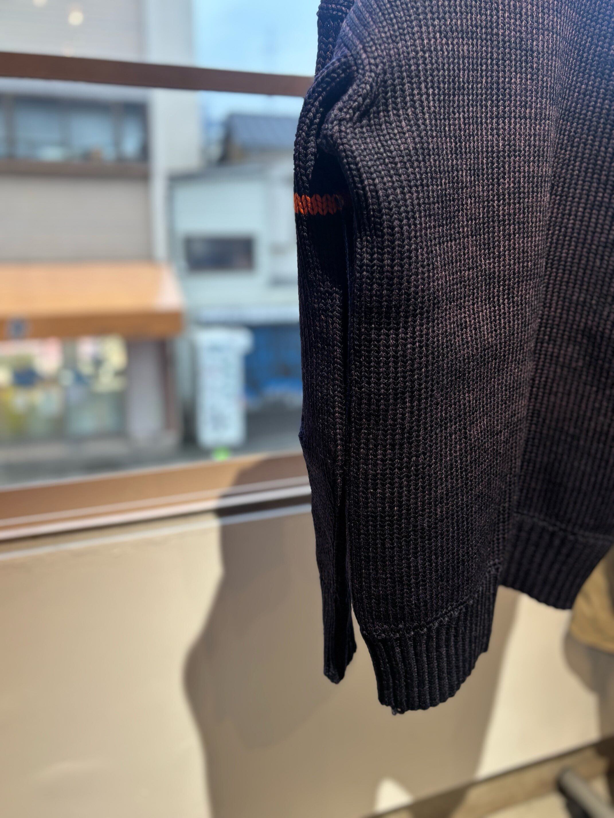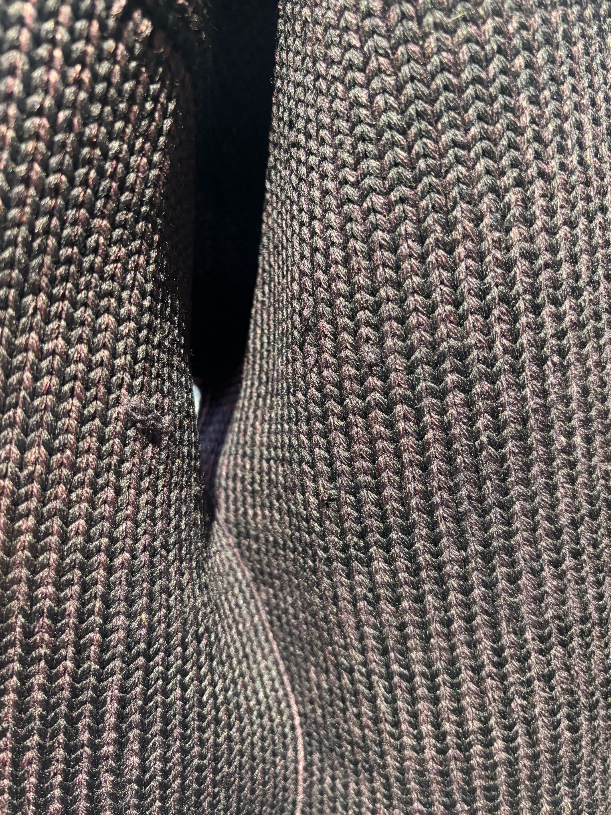 ブラックがサンフェードと経年によりパープルのような色になっています。めちゃくちゃ雰囲気がありとてもかっこいいニットです。
