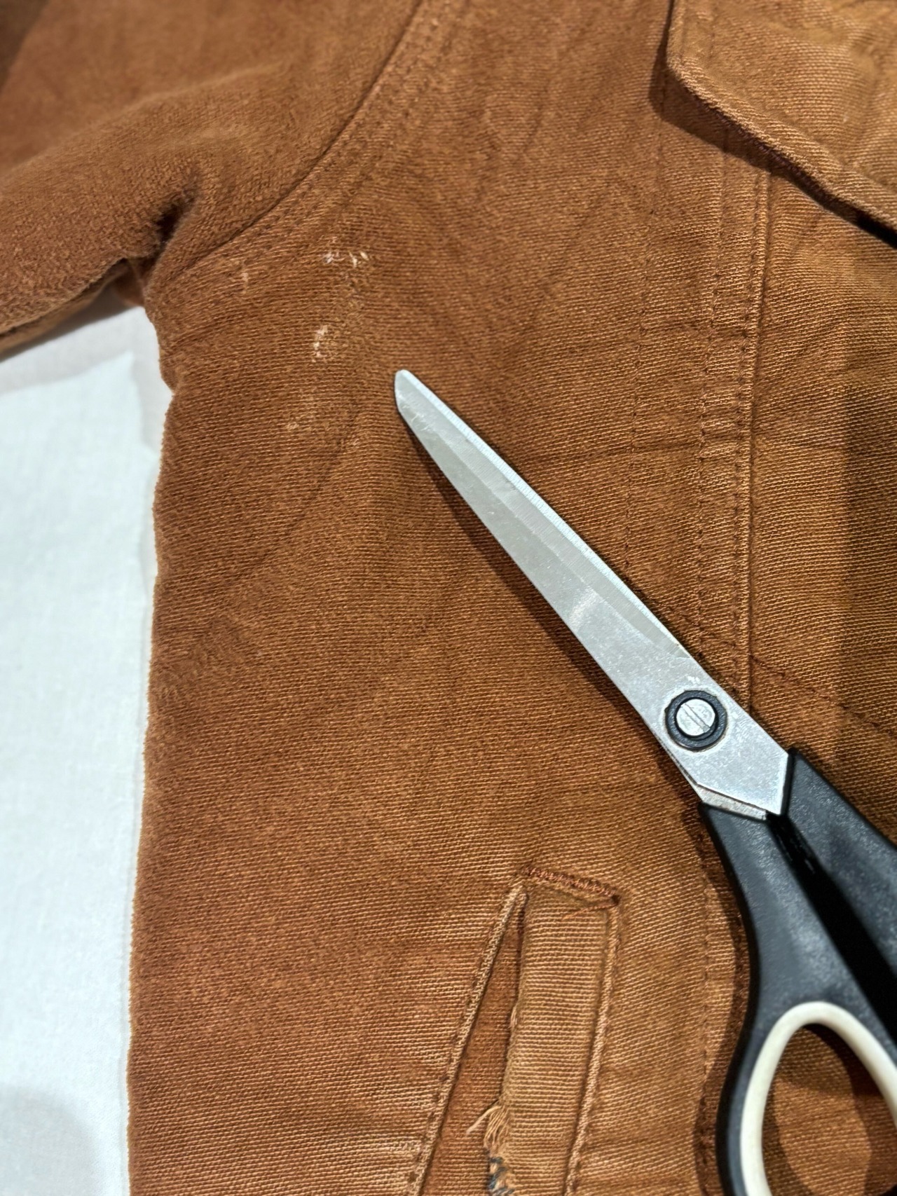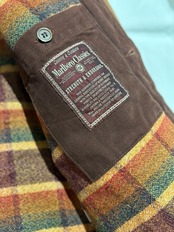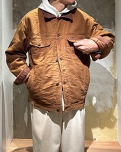 こちらはリーバイスのサードをモチーフにしたと思われるトラッカージャケットタイプのジャケットです。表地はモールスキンのような毛羽立ちのあるコットン、裏地にはイタリアらしいカラフルなウールライナーがつきます。元の持ち主さんがカッコよく着古していて、所々補修もありつつ良い感じに雰囲気が出ています。