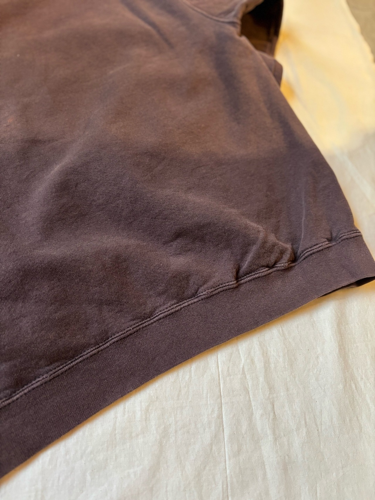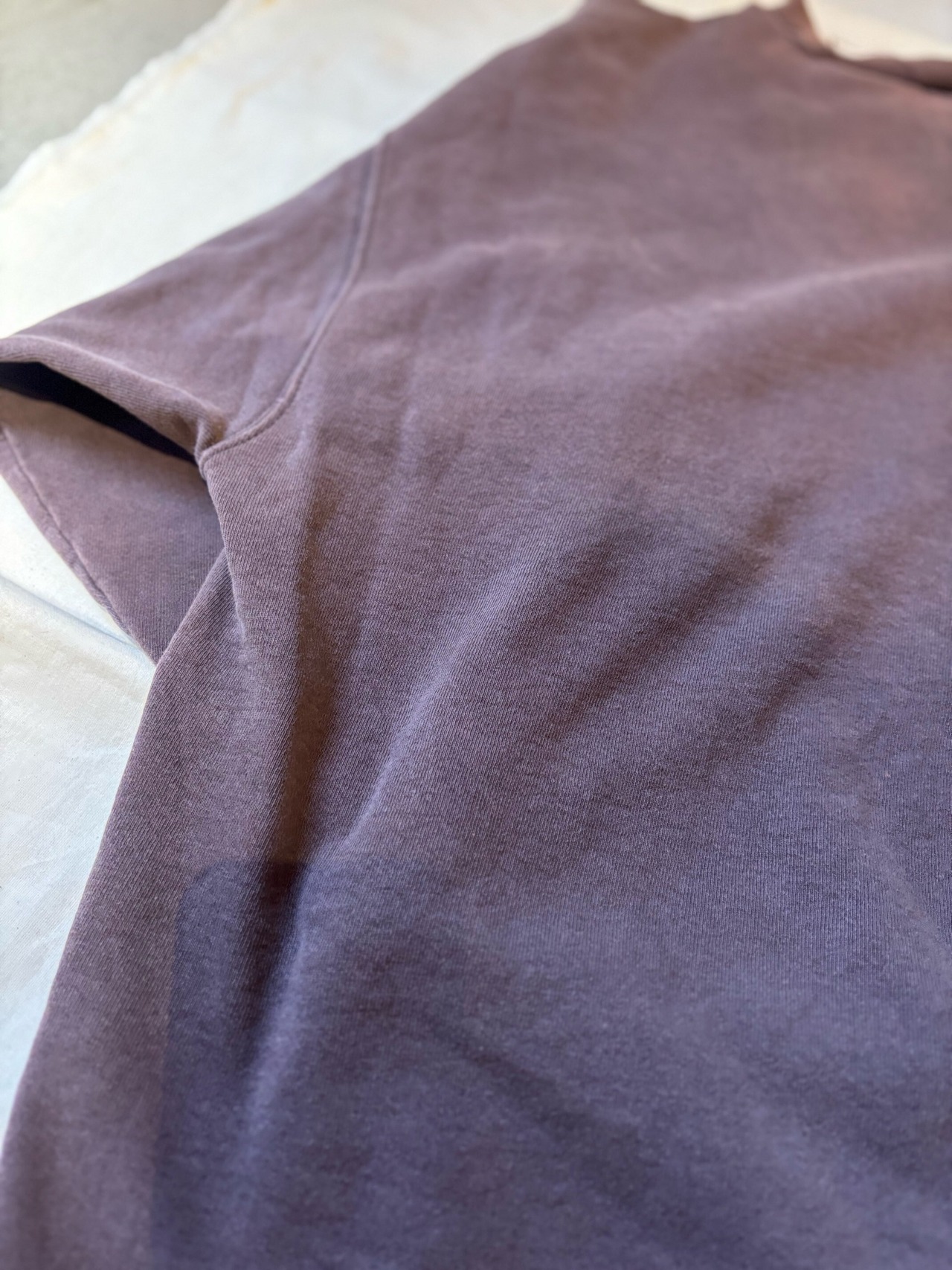 ボロというジャンルが注目をされて久しいですが、こちらも元の色目が分からない位、全体的にサンフェードしていて、所々オレンジ色っぽく反応しています。茶色が焼けたような、パープルのような絶妙な色に変色しています。