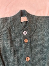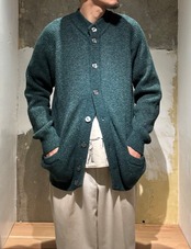 ネックが高いカーディガンでメンズサイズはなかなか見つかりません。今期探していたのですが初めて入荷出来ました。基本的に何にでもstylingできるので合わせるのも難しく無いと思います。ブラウン系の色目のアイテムのボトムスと合わせたりすると可愛いと思います。