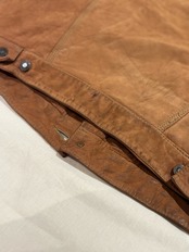 スエードもかなり柔らかくなっていて着込まれているのでとても着やすくなっています。このデザインでフレアデニムなどを履くと、ザな感じになってしまうので、個人的にはテイストの違うアイテムと合わせると良いと思います。今だとスラックスやスウェットパンツなどで合わせると気分かもしれません。