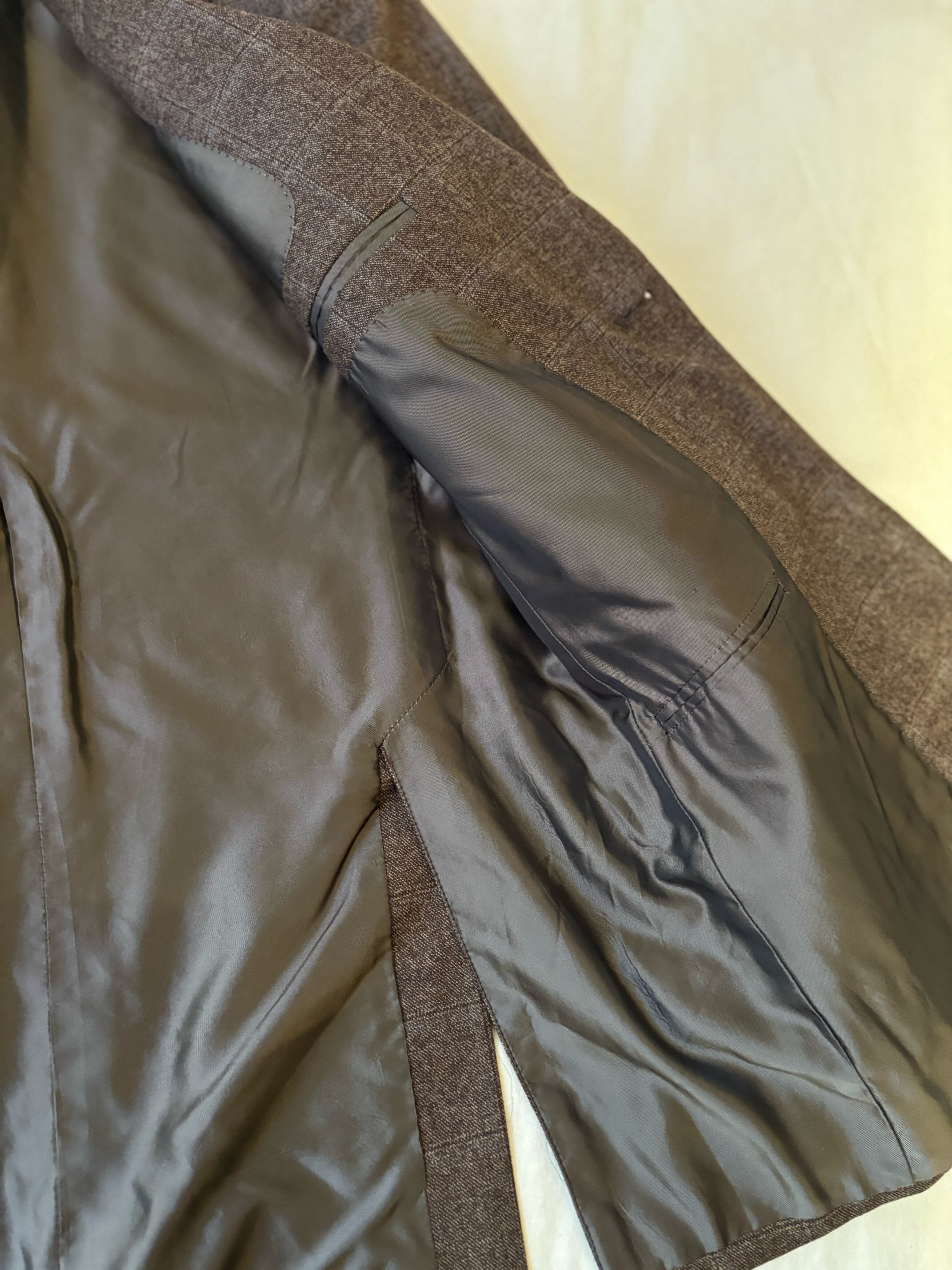 イタリアのジャケットですが柄はイギリスのチェックになっていてグレンチェックに水色のオーバーペンが薄く入るとても良い柄です。