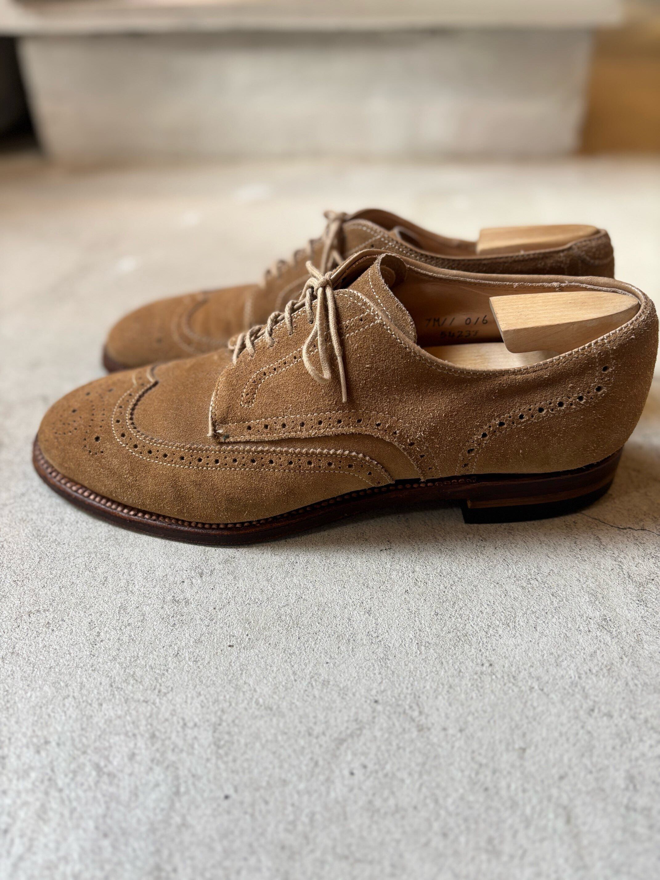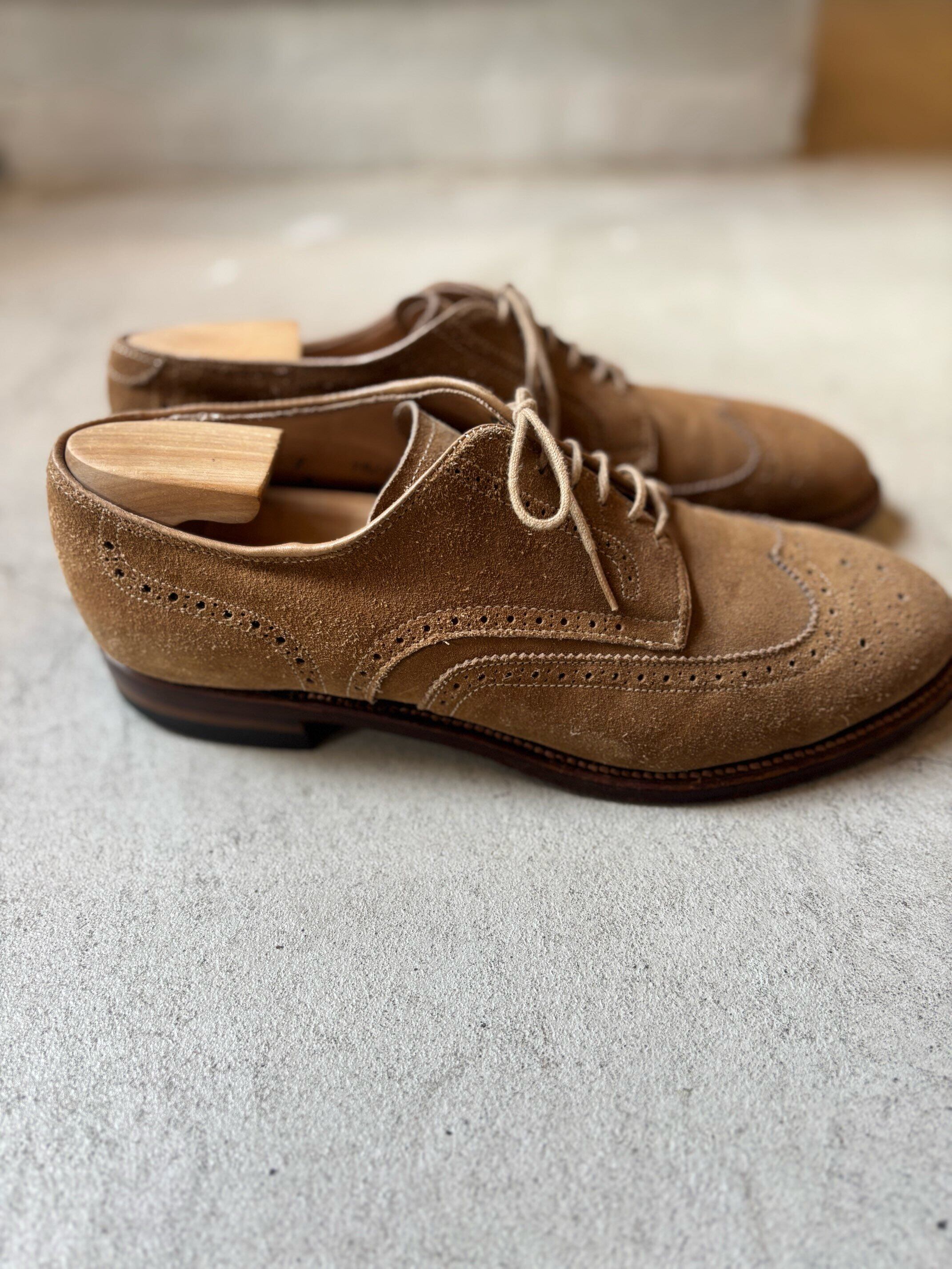 こちらはスエードのウイングチップなのでカジュアルな着こなしの時に丁度良いアイテムだと思います。デニムやチノパン、カジュアルめなジャケパンやコーデュロイのセットアップなどの時に丁度良いアイテムです。