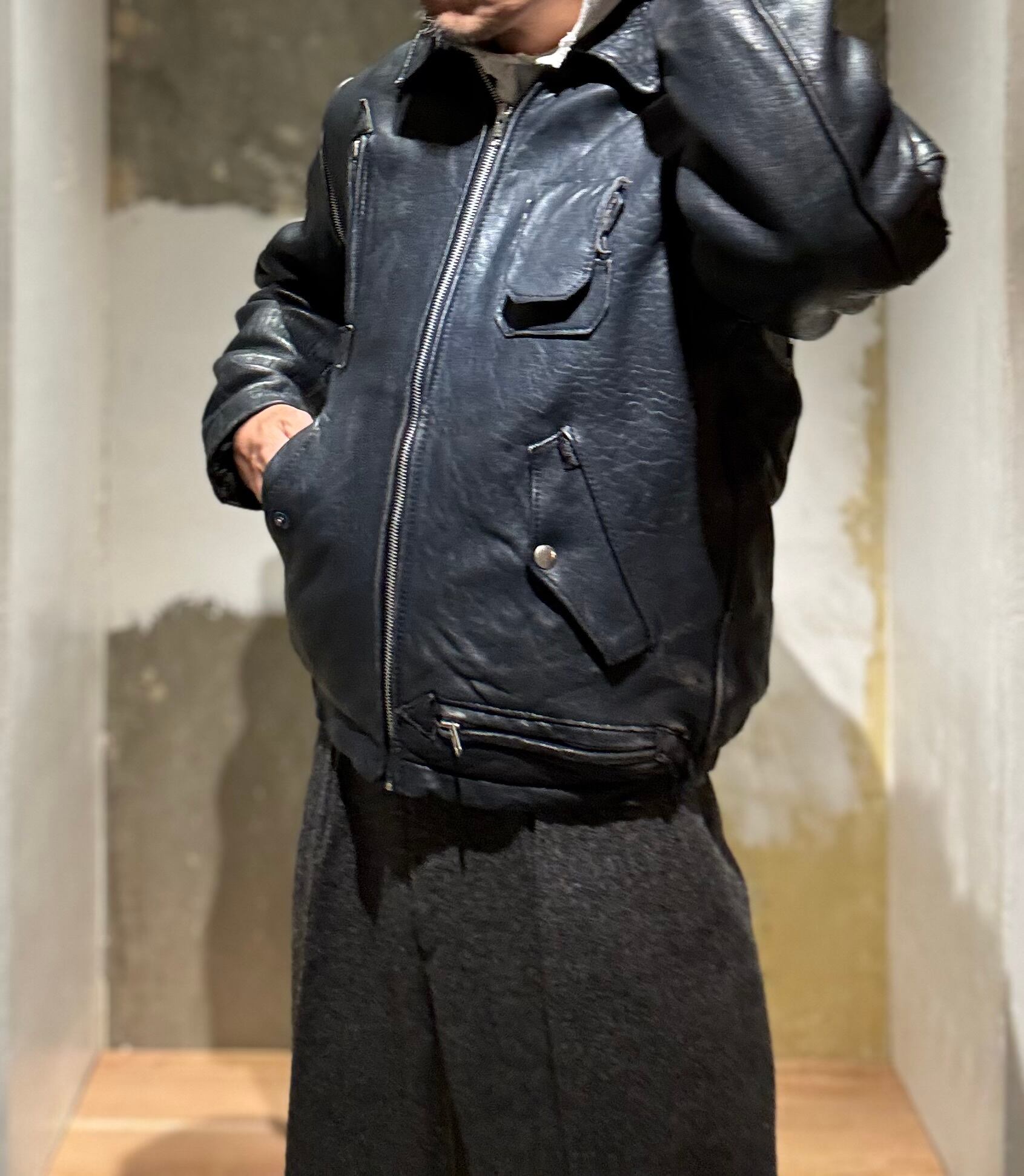 こちらもカジュアルなスウェットパンツから綺麗なスラックスまで幅広く合わせられると思います。とても珍しいレザージャケットです。是非ご検討下さい。