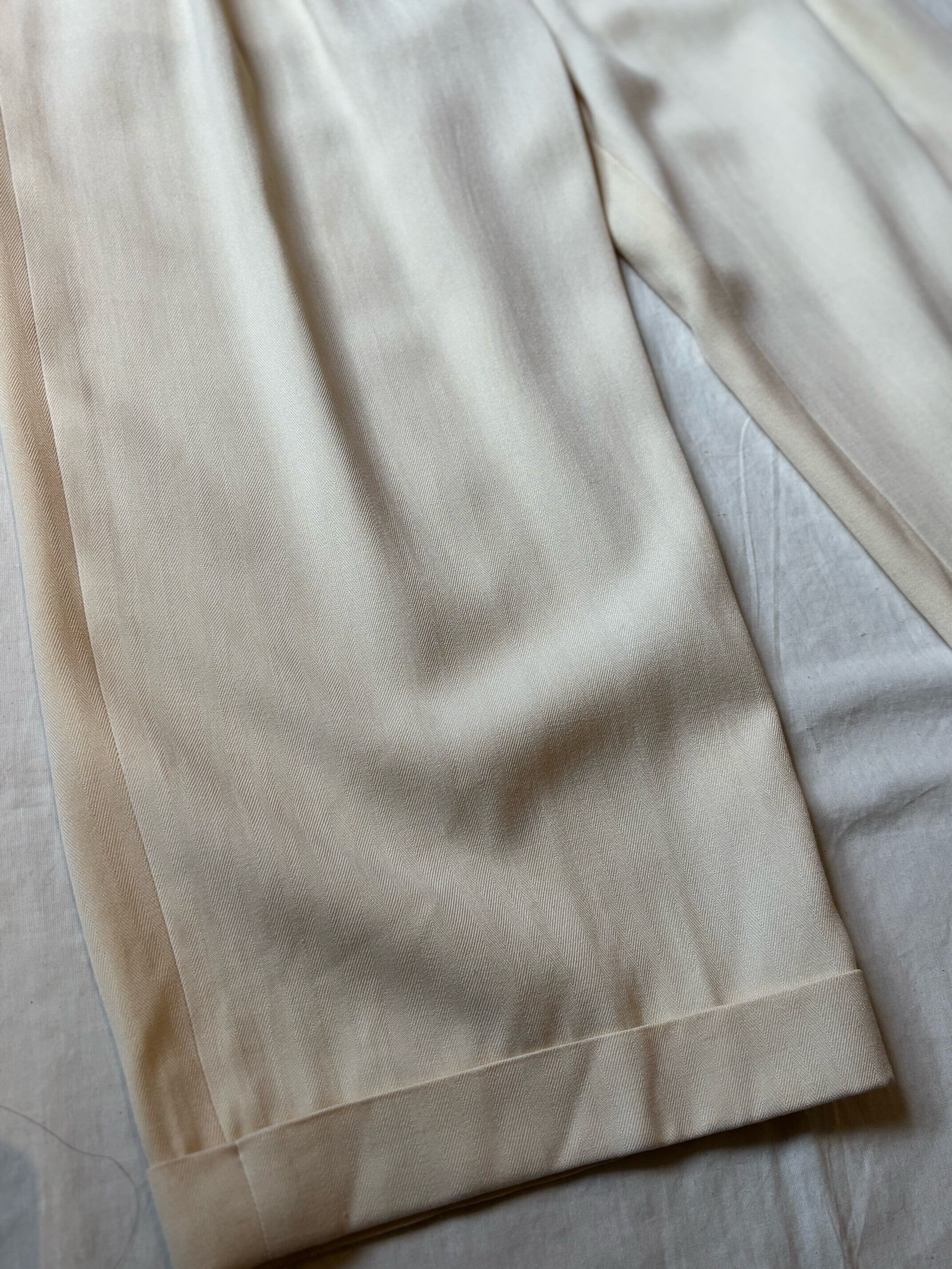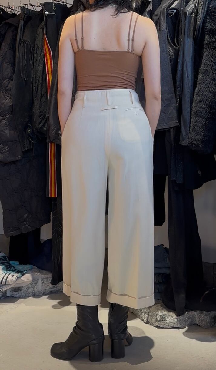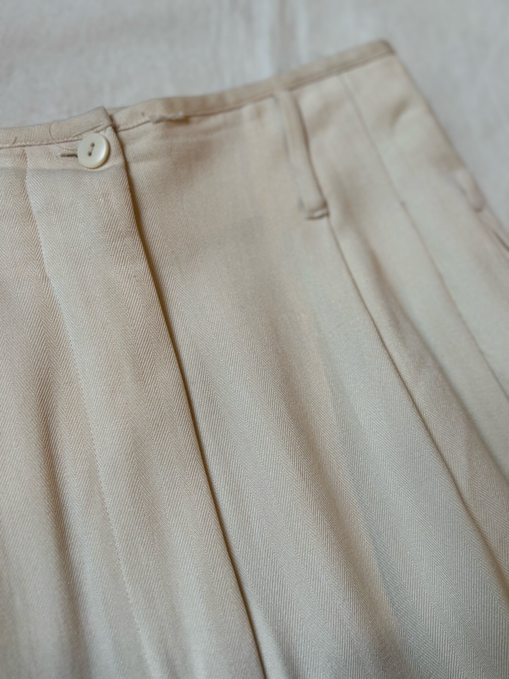 90年代頃のヘリンボーンシルクのワイドカプリパンツです。