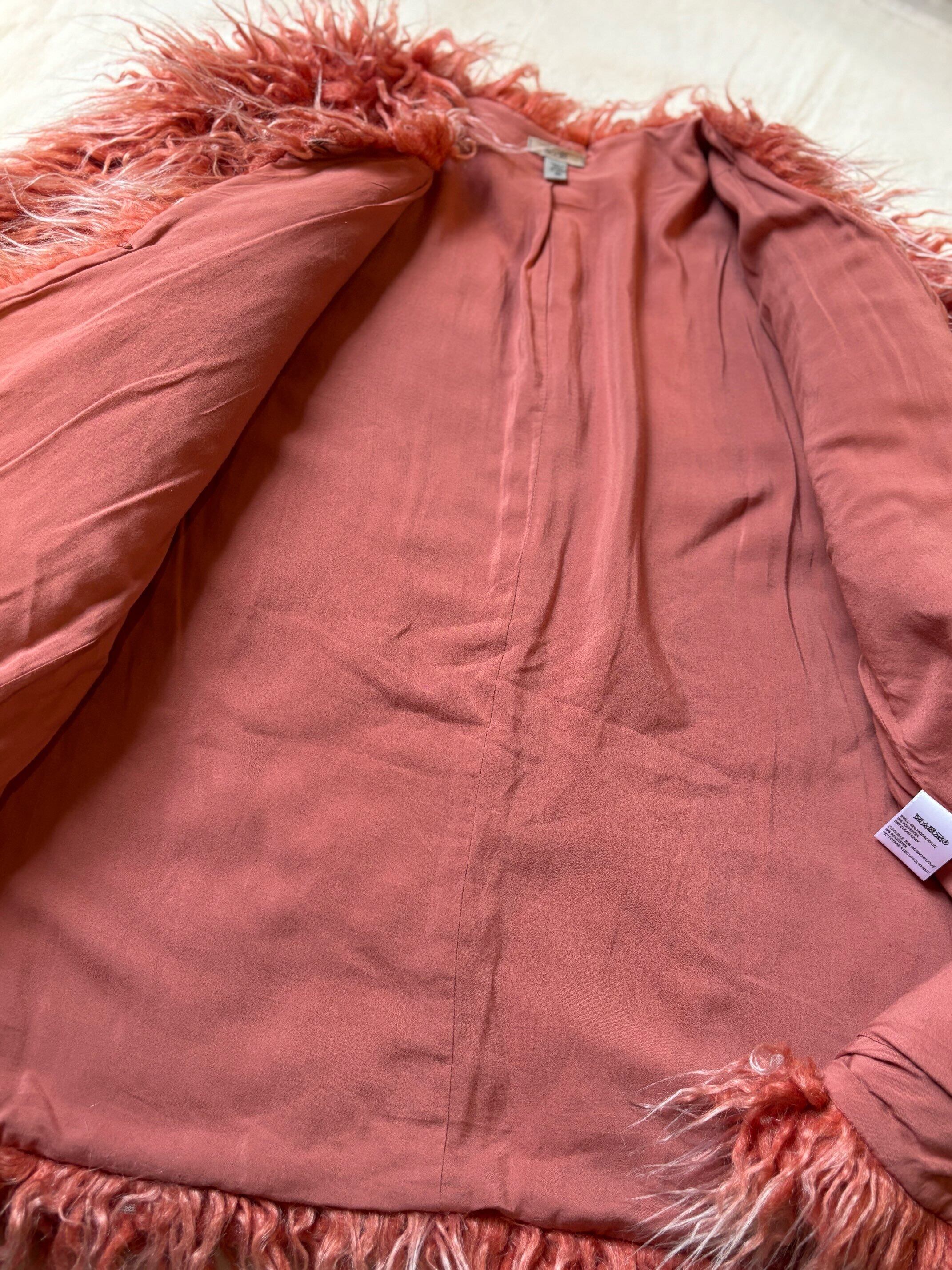 とても毛足の長いフェイクファーで今気分の形のやつですね。着丈が絶妙な長さで、丁度お尻が隠れるくらいですが太ももの上あたりに来る丈感なので長すぎず短すぎずで、とてもバランスの良いサイズ感になります。