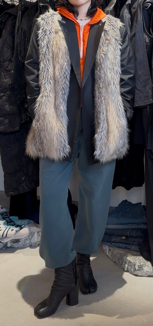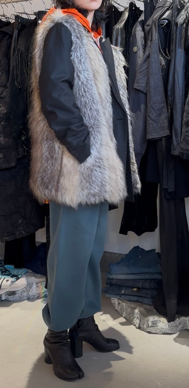 一見ベーシックかと思いきや、ネックがvネックではなくuネックだったり、脇幅が広くオーバーベストとして使えたりと形がとても使いやすいベストです。