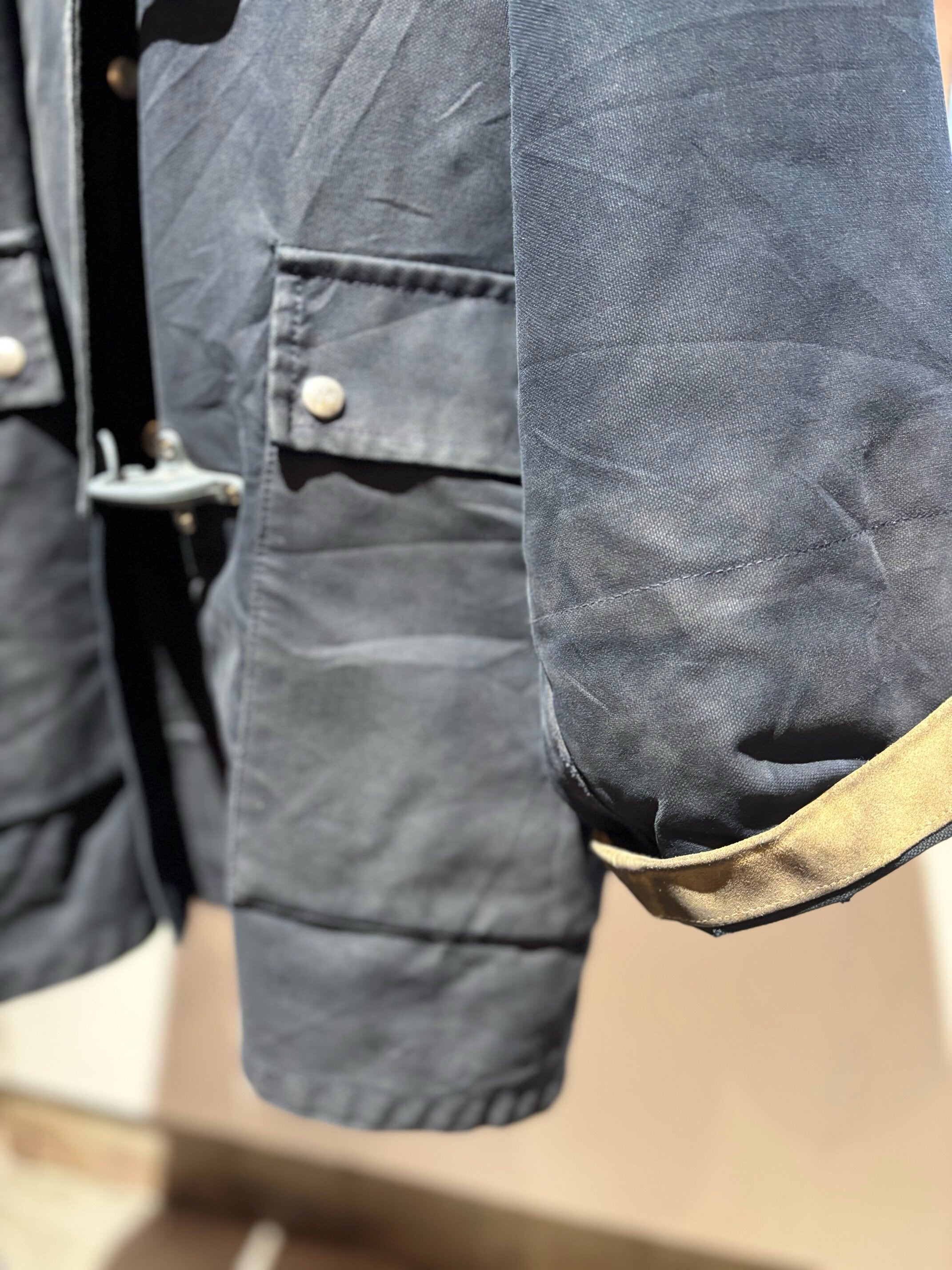 状態:全体的にフェードしたようなネイビーでとても雰囲気が良いです。袖先がスエードですが黒く汚れています。