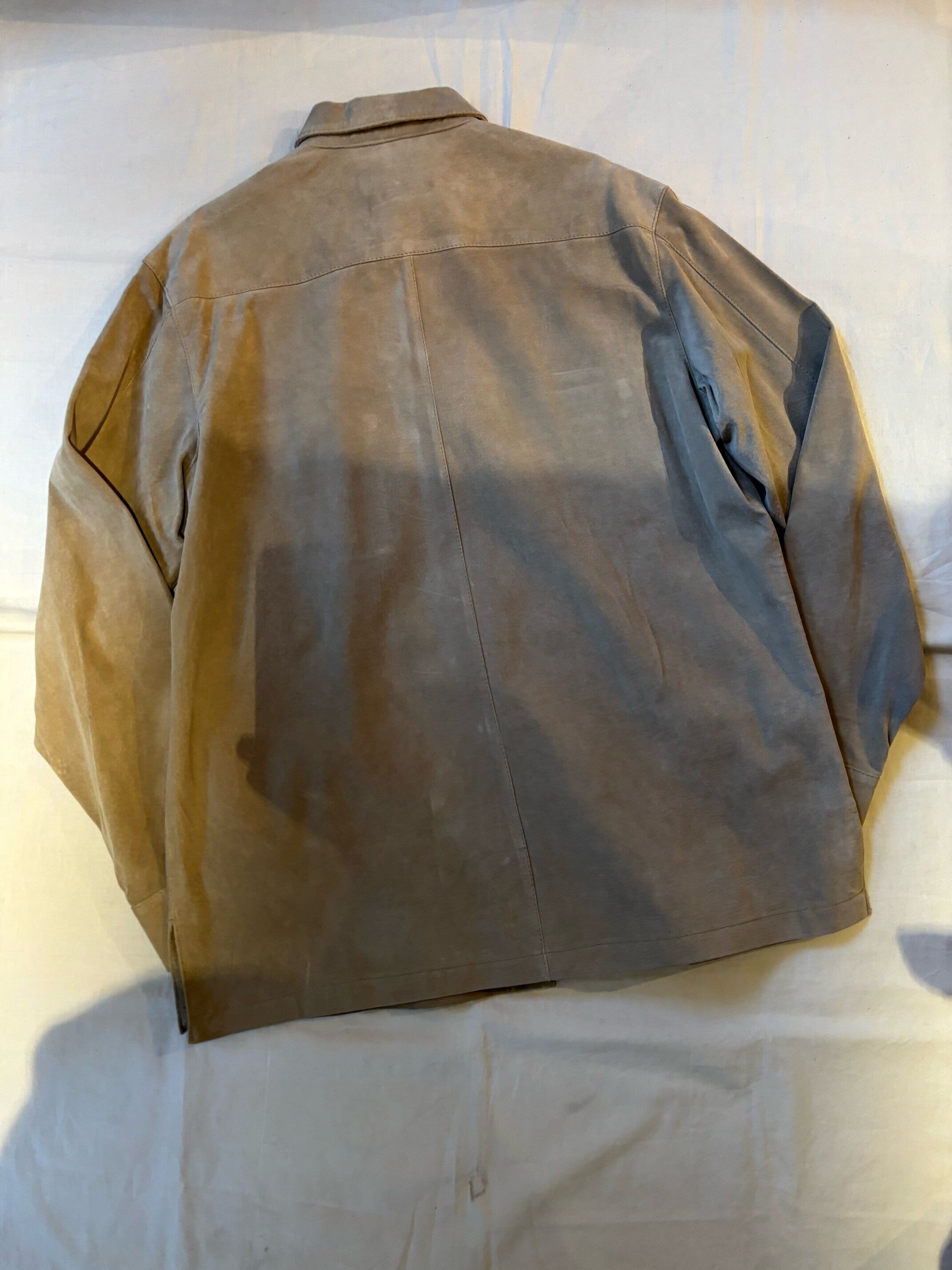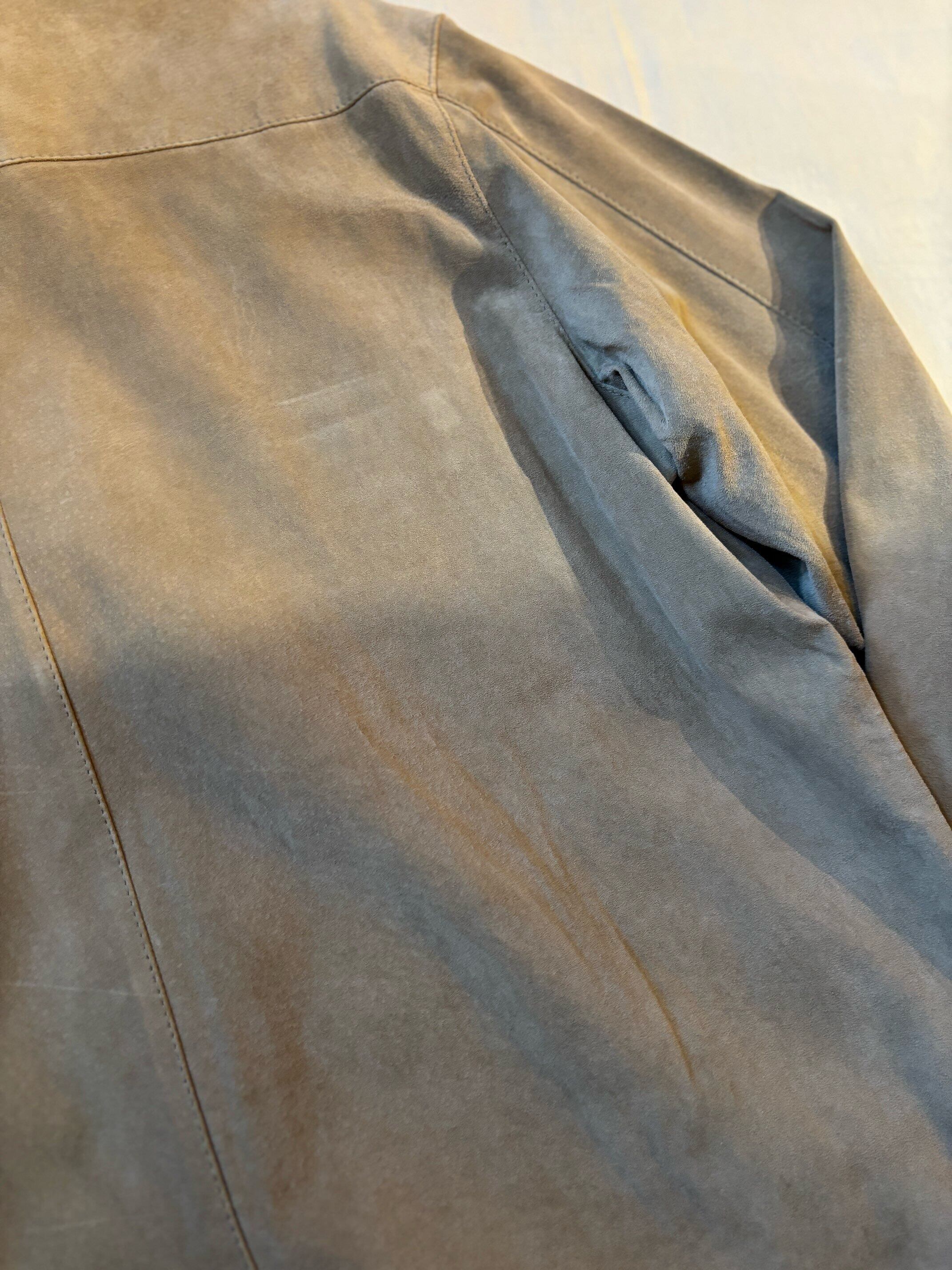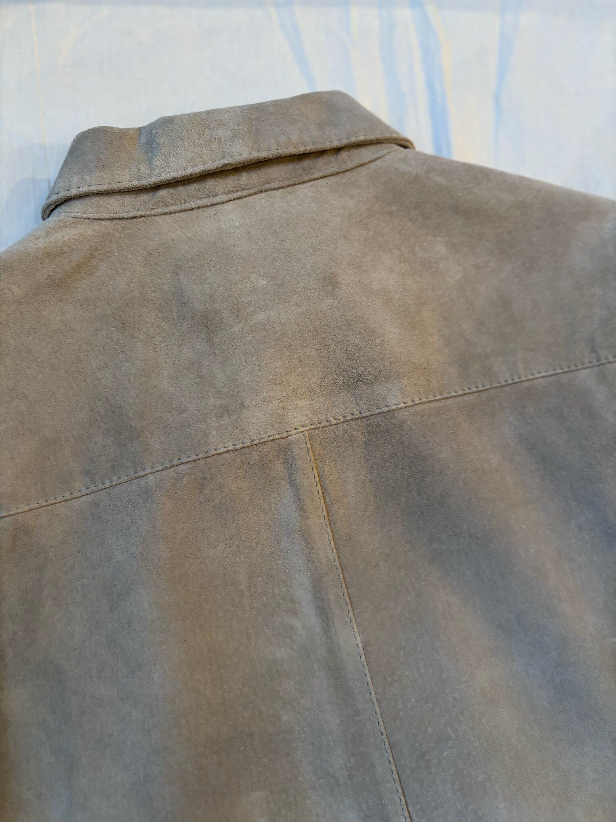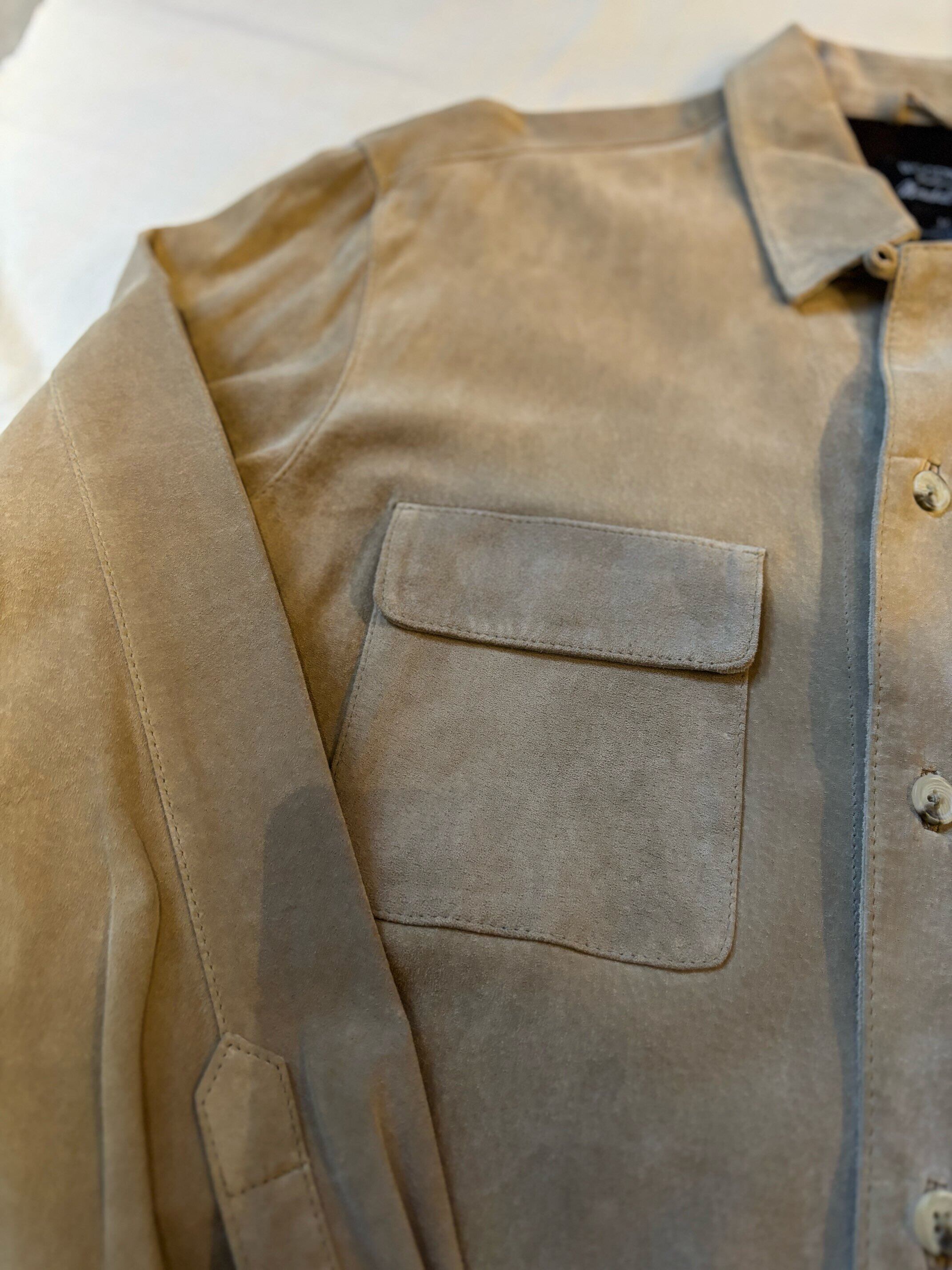 とても上品なグレージュのようなカラーのスエードと珍しいループカラーシャツタイプの感じがどこかオーラリー感のあるシャツだと思い買い付けました。
