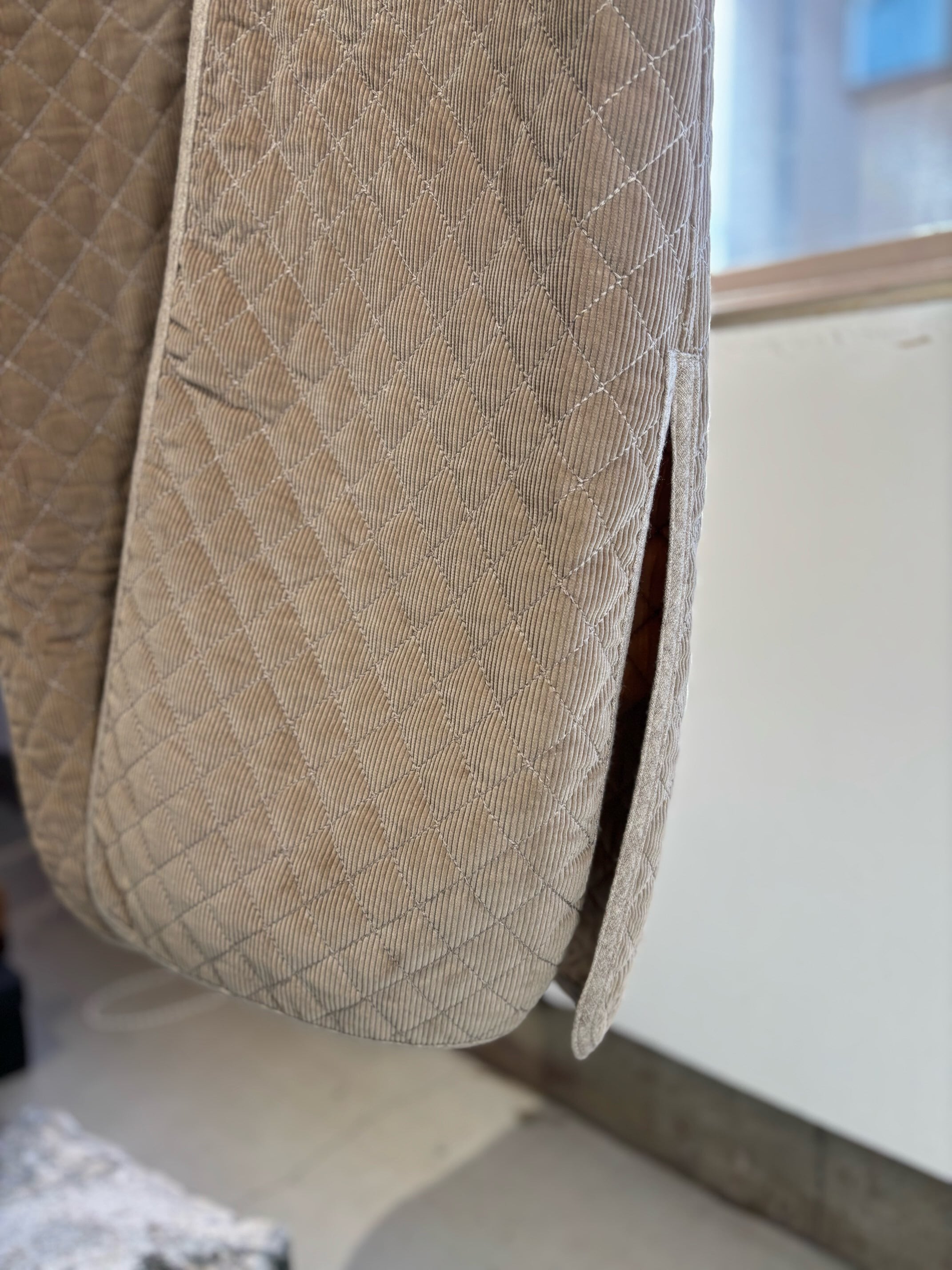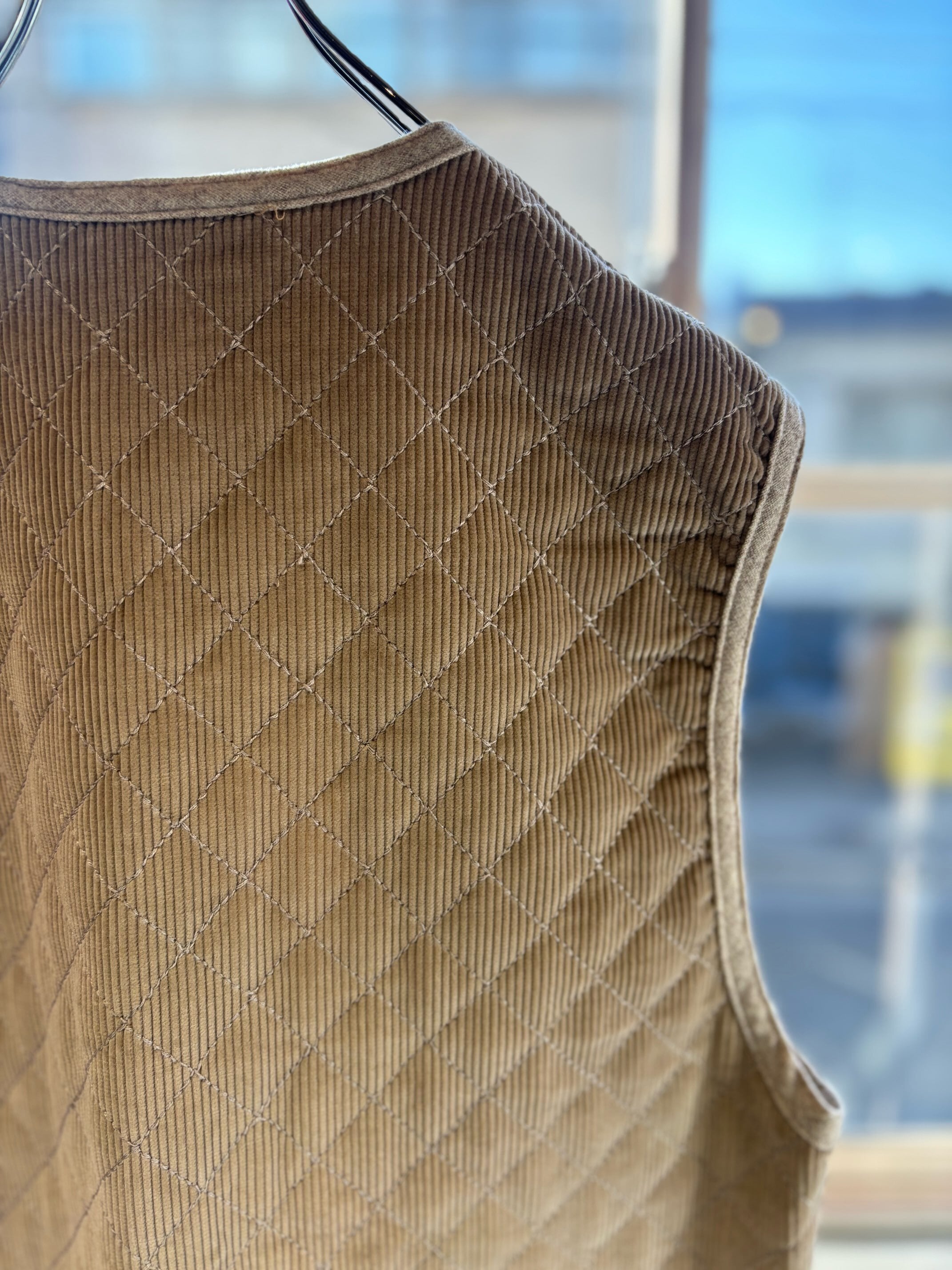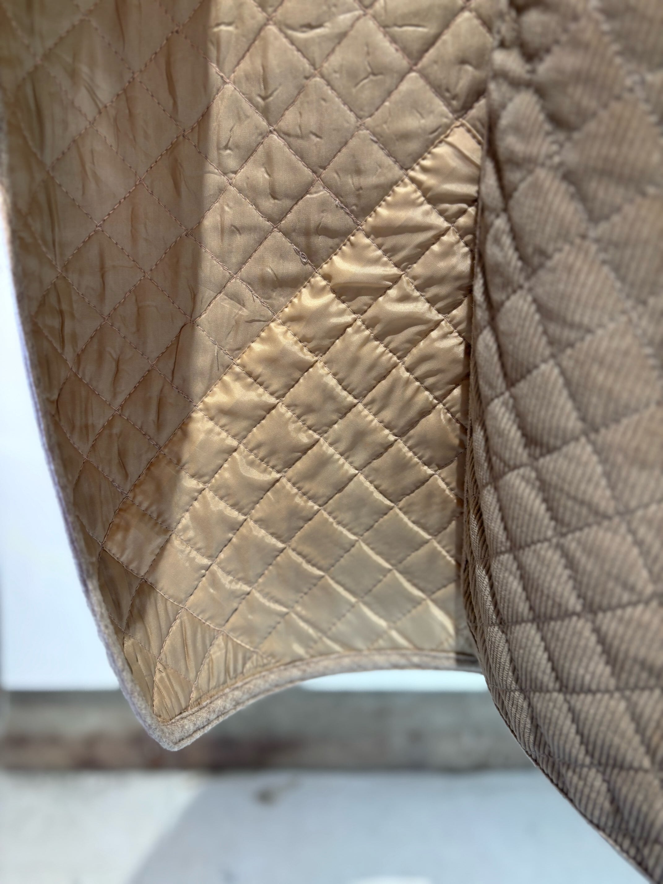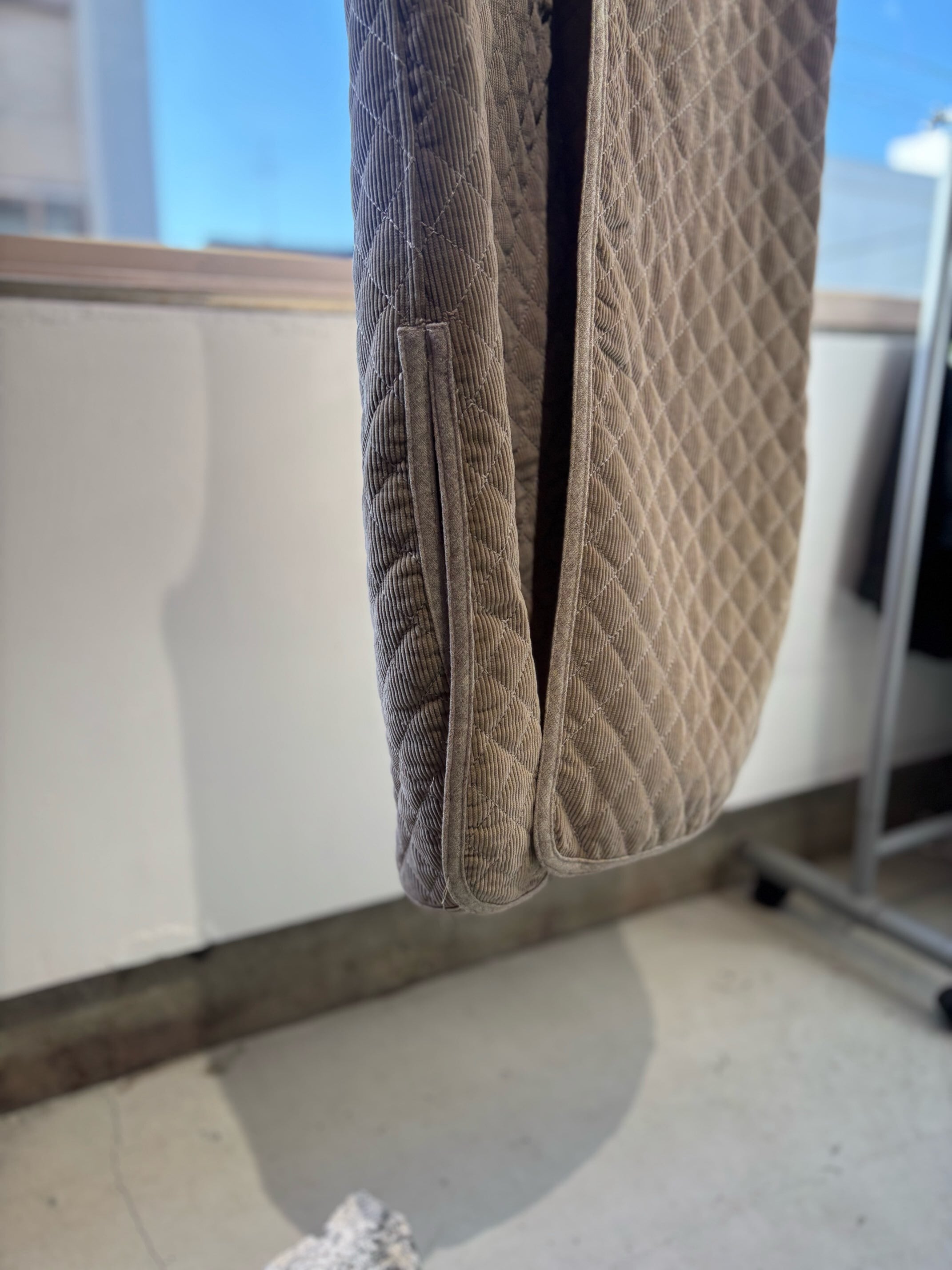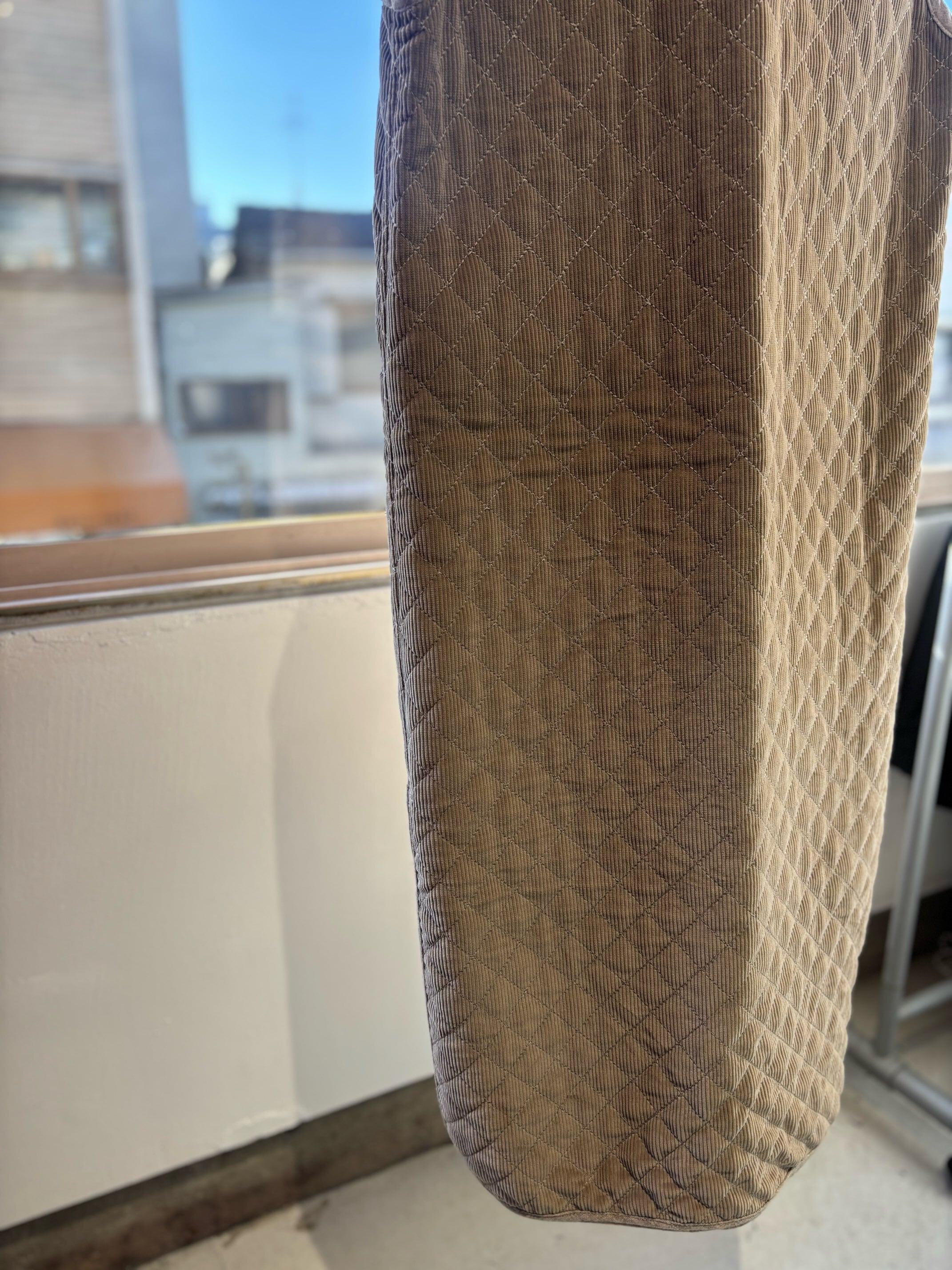 素材:表記取れていて不明ですが、コーデュロイはコットン、裏地のキルティングはポリエステルだと思います。