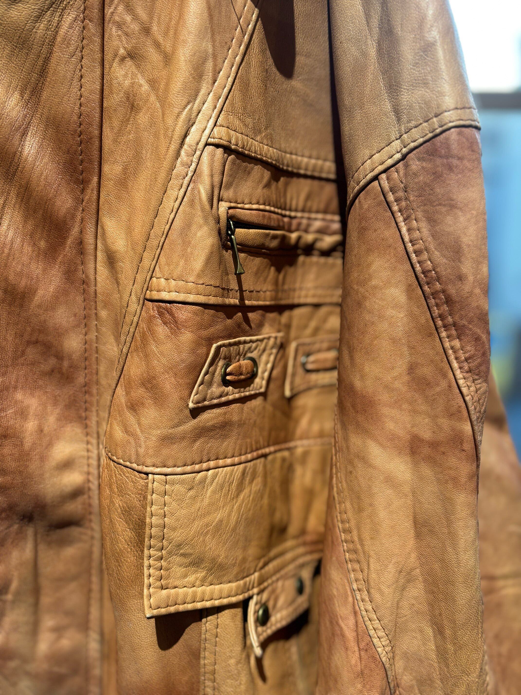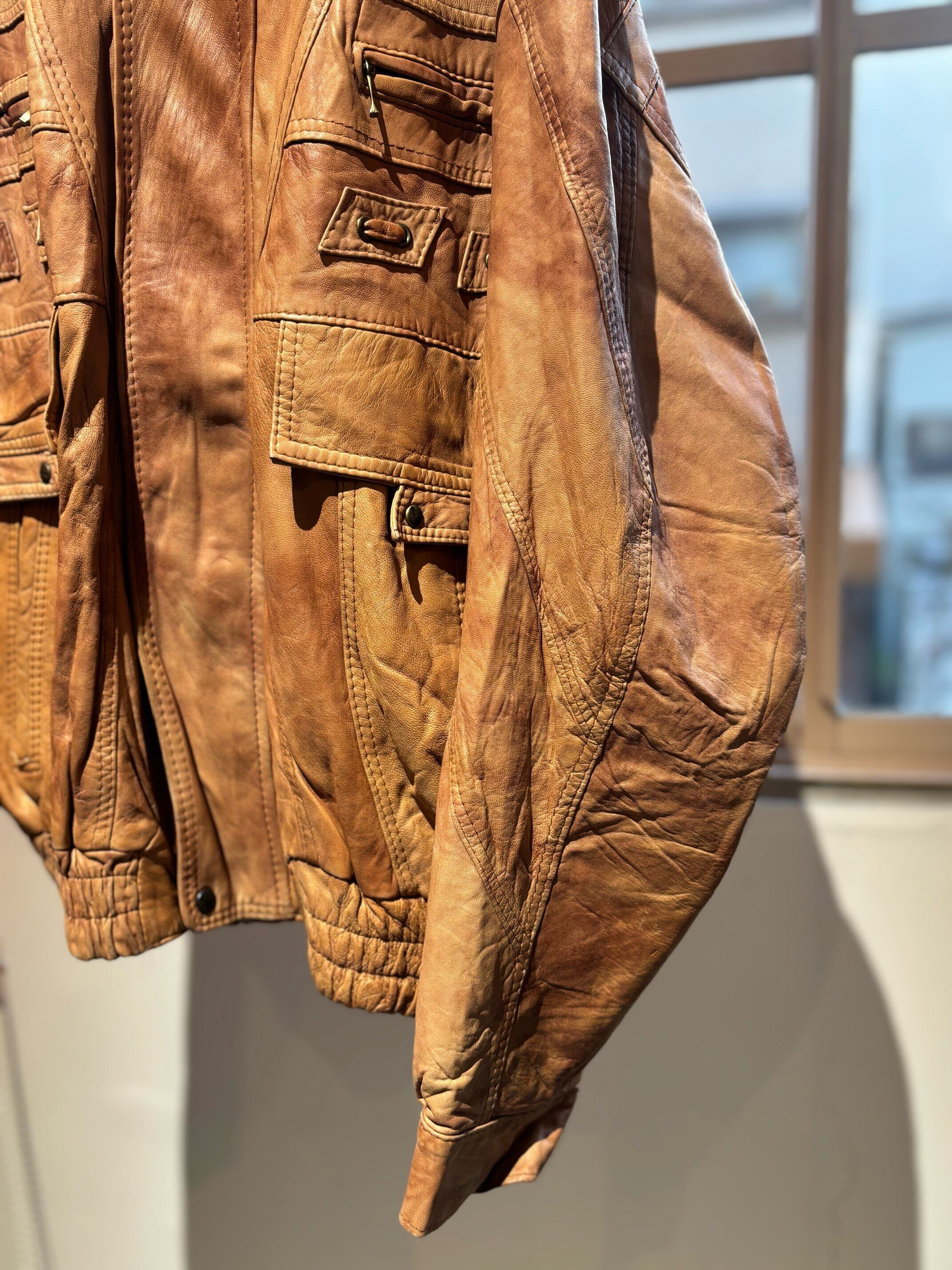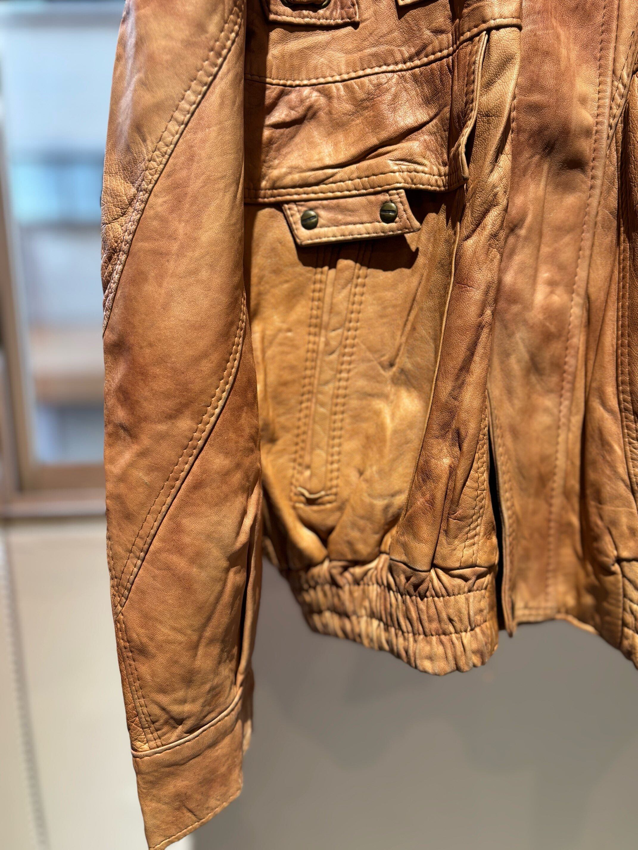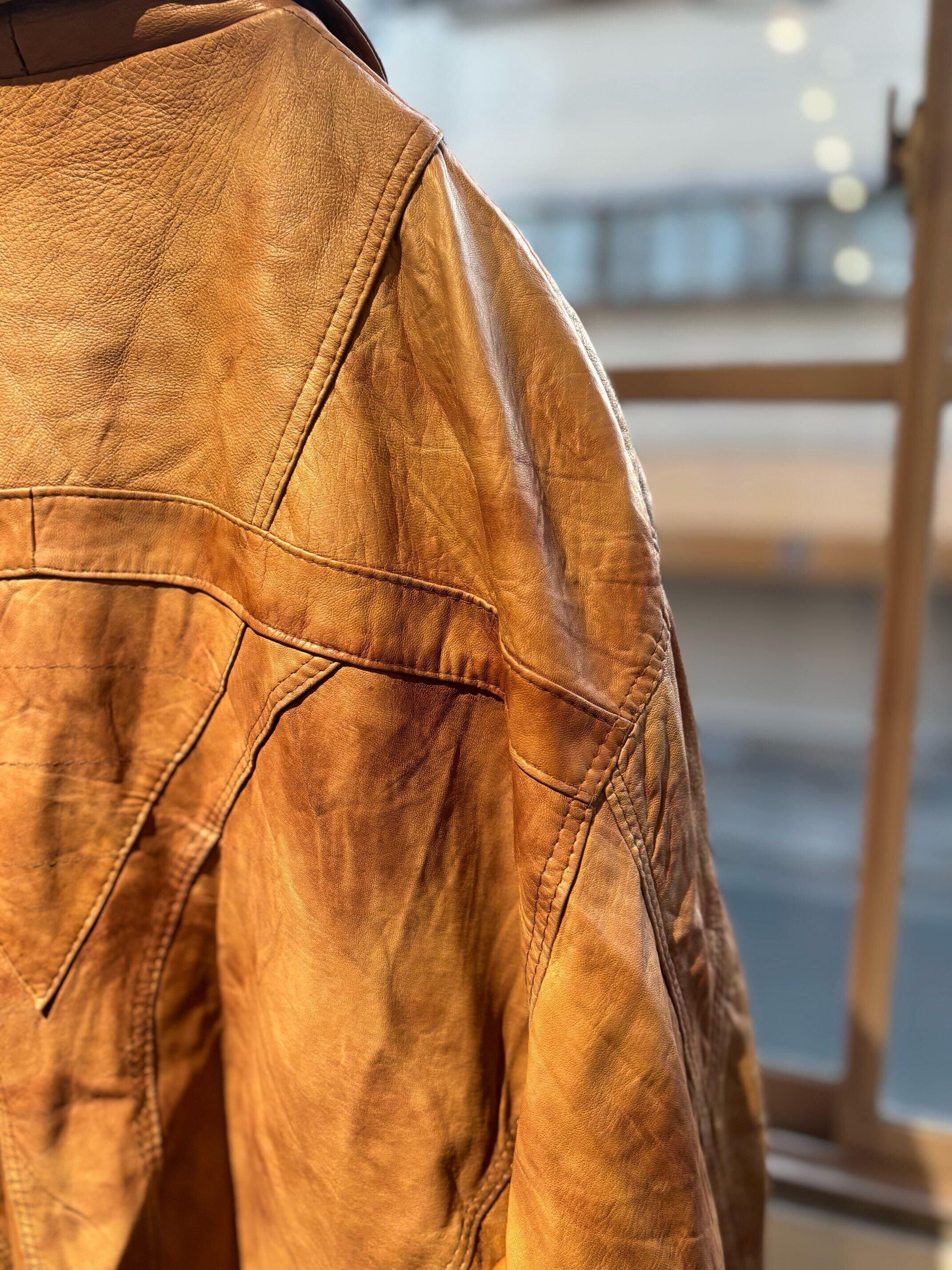 この染まり方のジャケットは世界で1点ですね。とても良いレザージャケットです。是非ご検討ください。