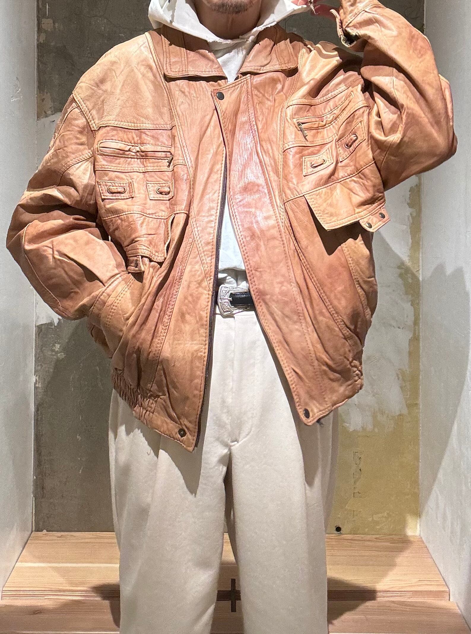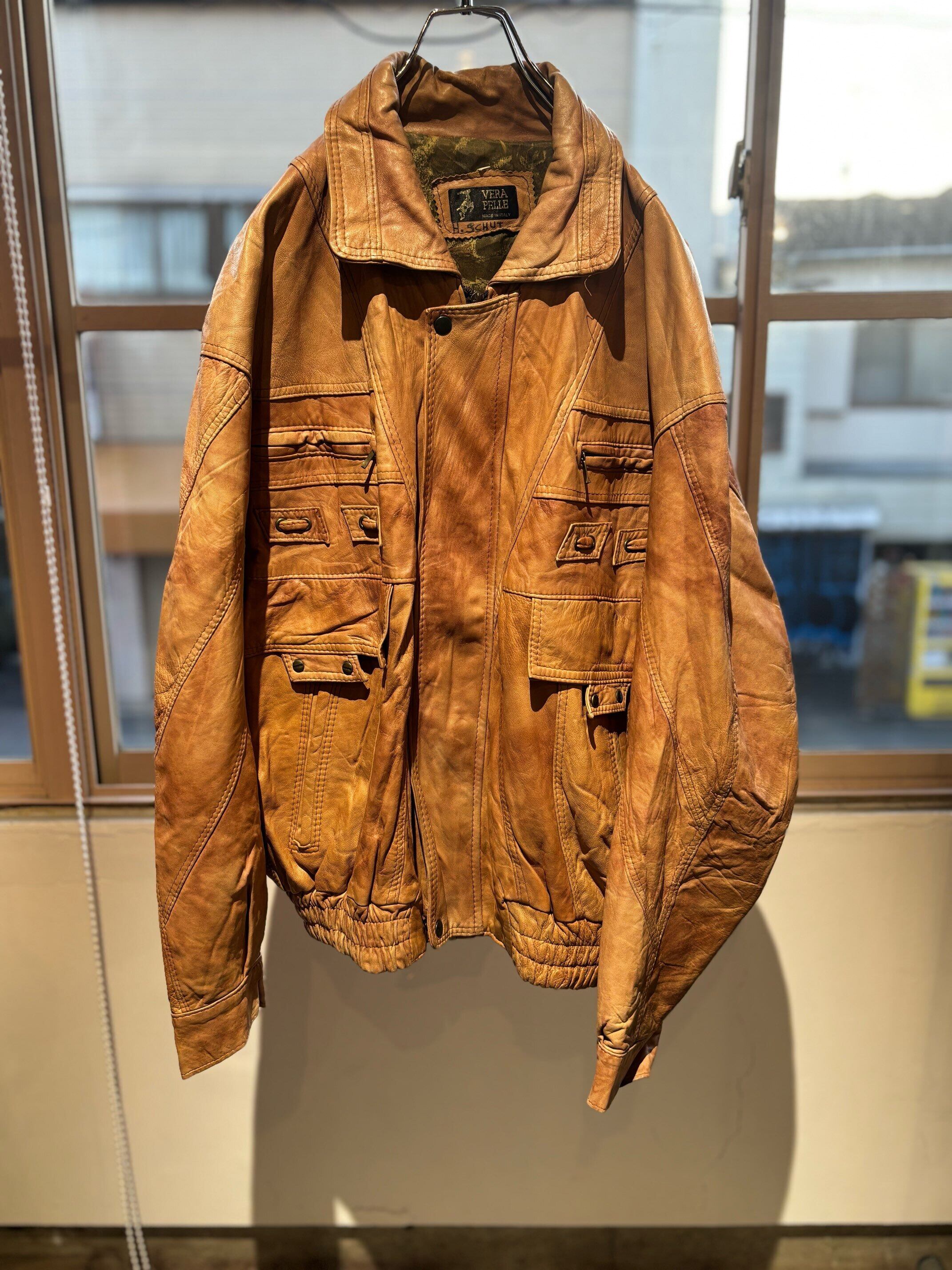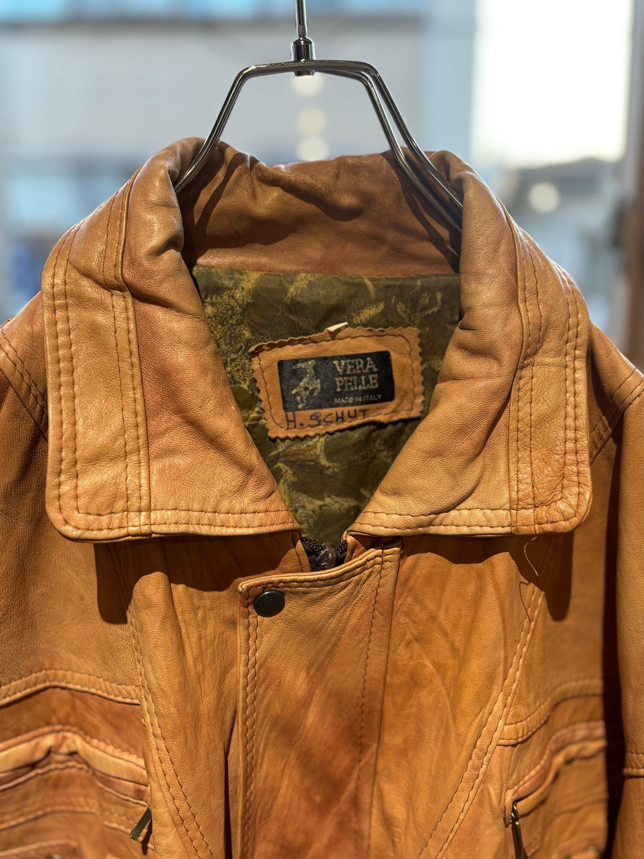 80年代頃のギミックレザージャケットです。イタリア製です。