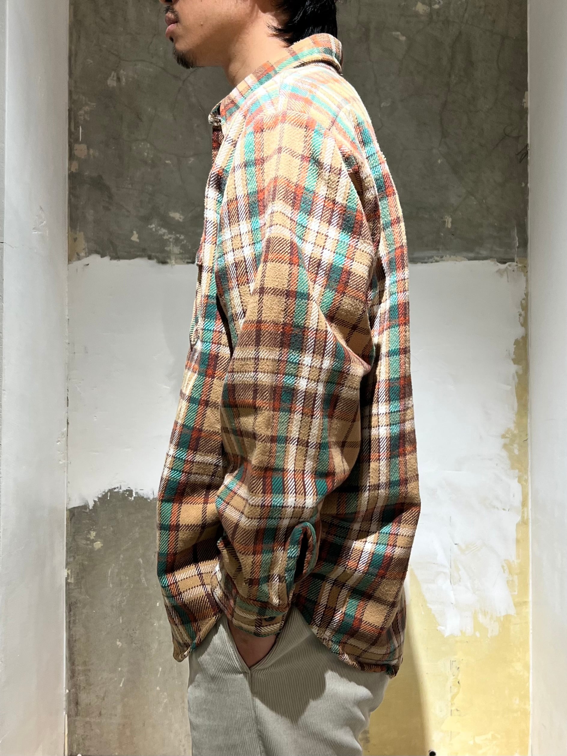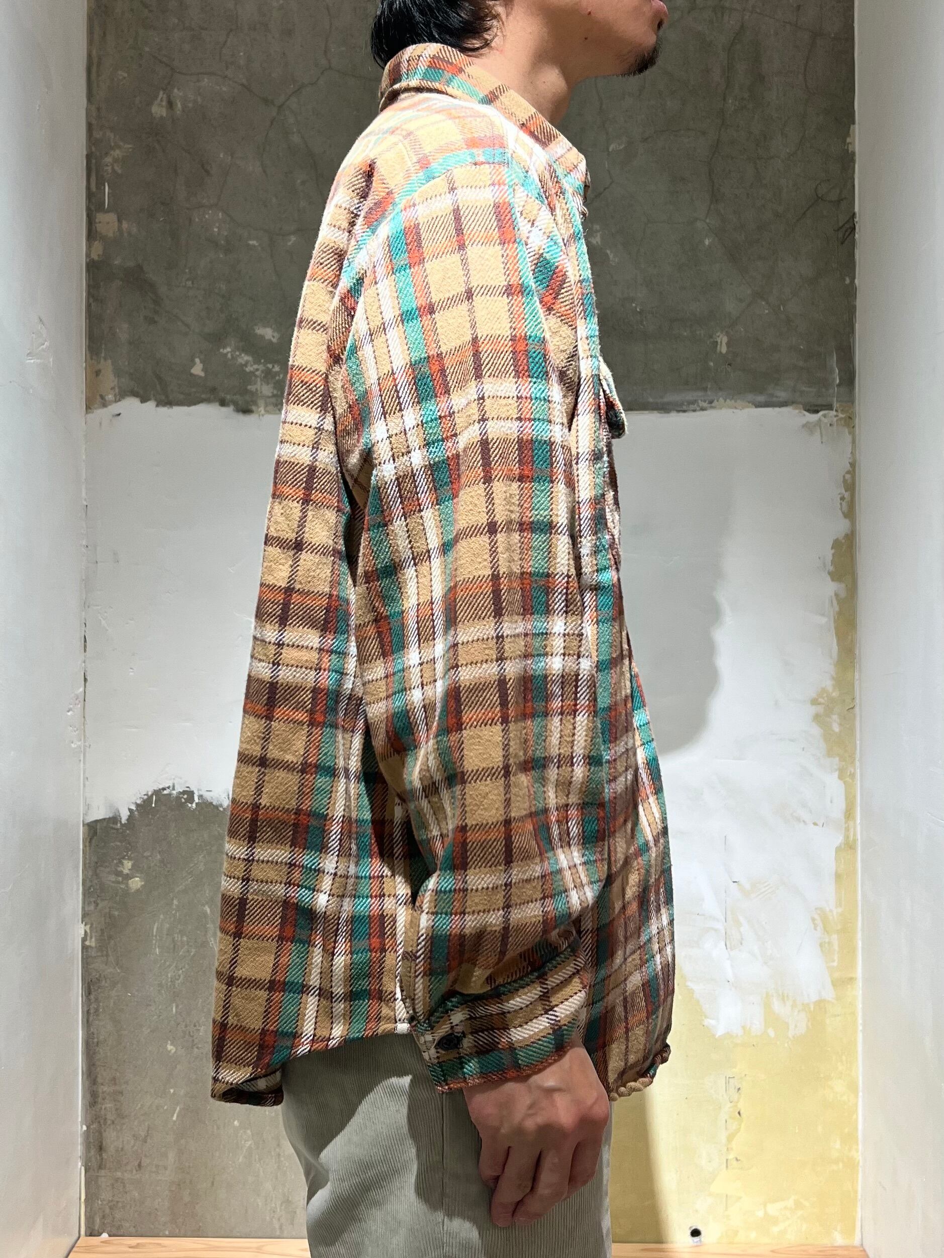 このネルシャツの特筆するべき点は3XLという大きさながら、着丈がとても短く、ボックスシルエットでかなりサイズバランスが良いところです。このサイズ感だとどうしても丈が長くてバランスが悪いものが多いのですがこちらは完全なボックスシルエットなのでとてと着やすいバランスになっているところが良いところです。もしかしたら元の持ち主さんが着丈つめをしているかもしれません。