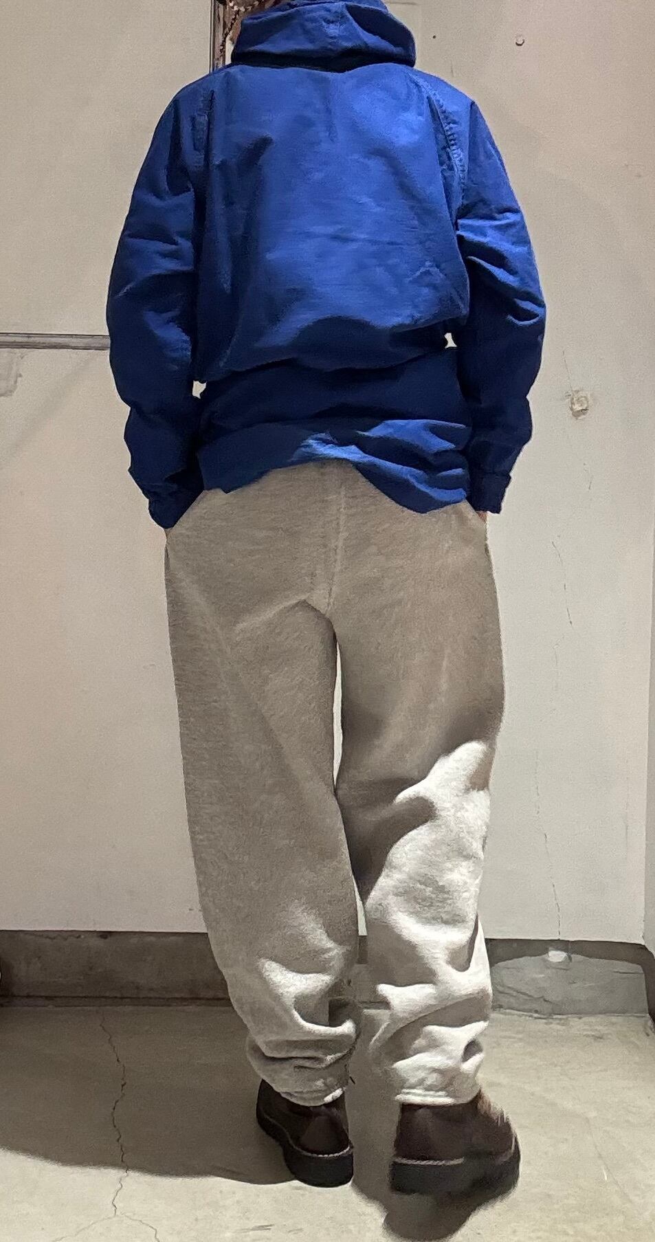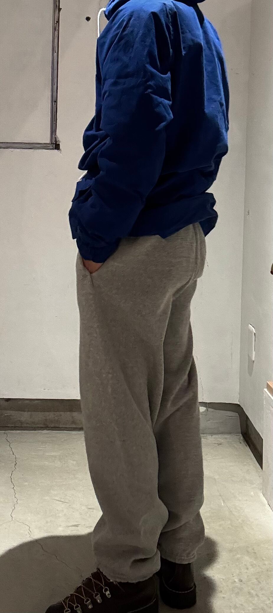 とてもベーシックな形のスウェットパンツですがポケット付きなのと渡り幅が太めで緩く履ける割に股下が短めなので、ゆったり目で履きたい日本人の方にはとても良いサイズ感で履けると思います。