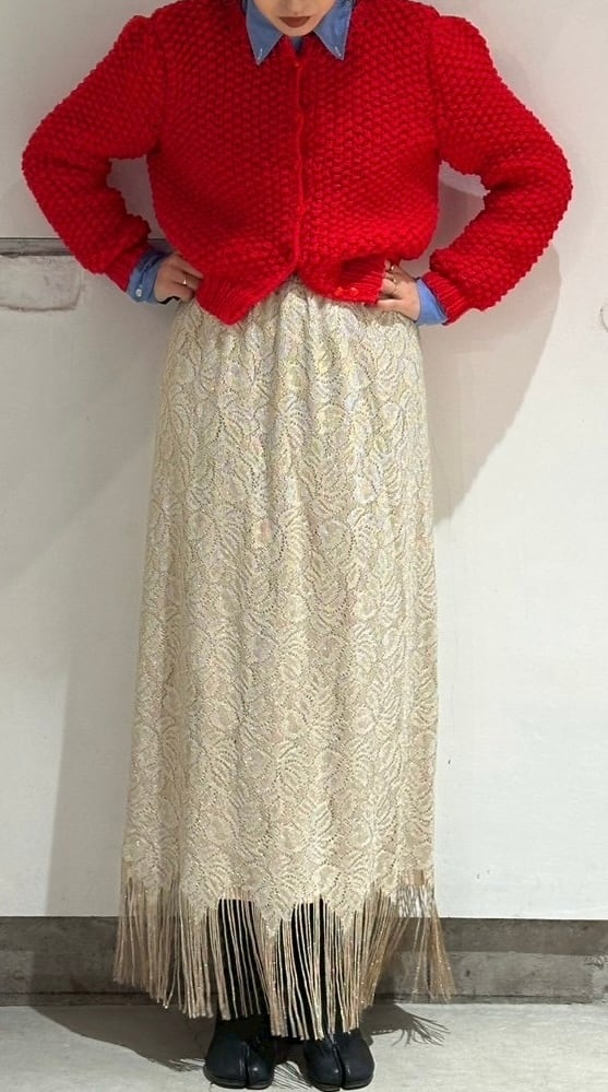 〜90's glitter lace fringe long skirt