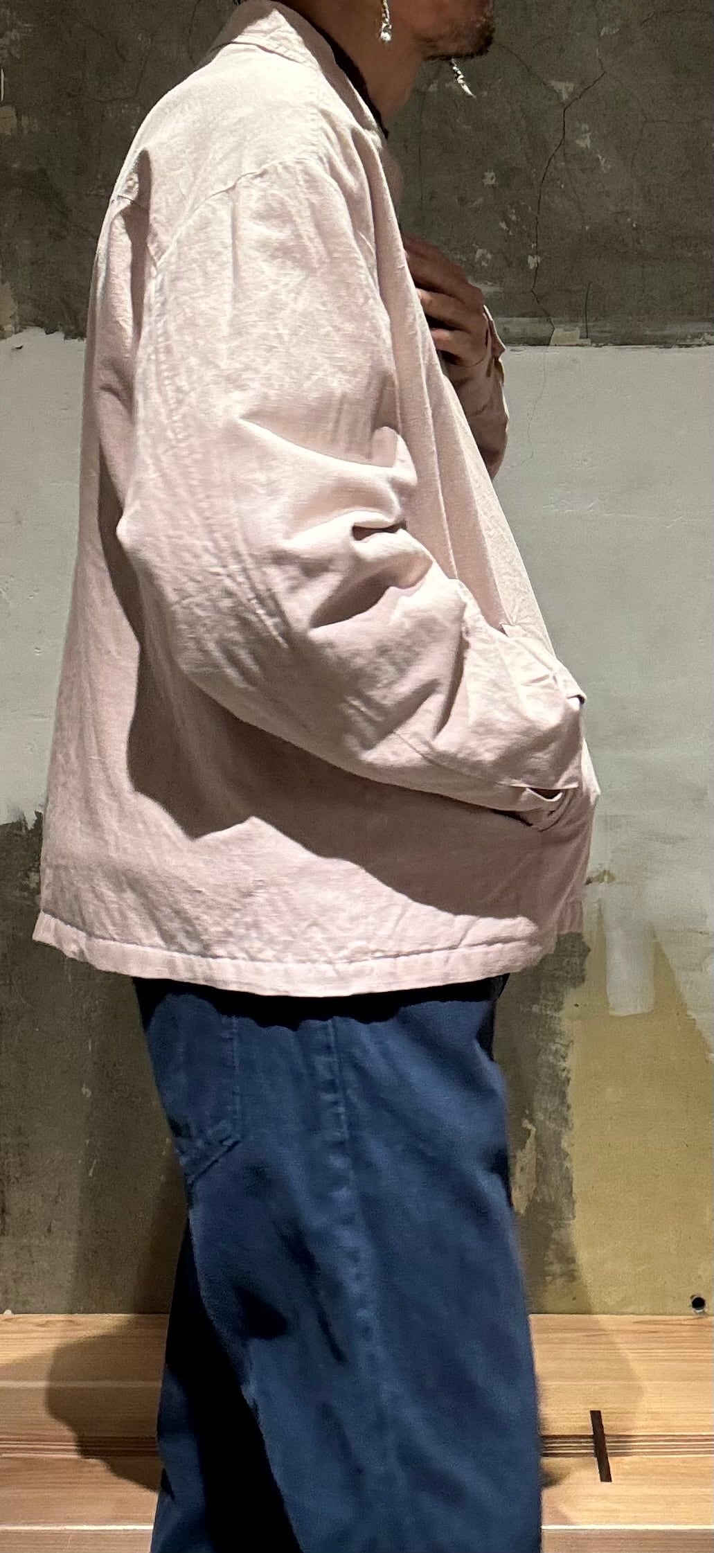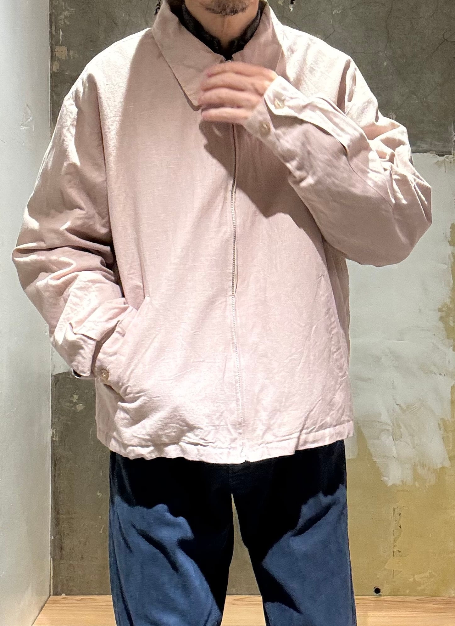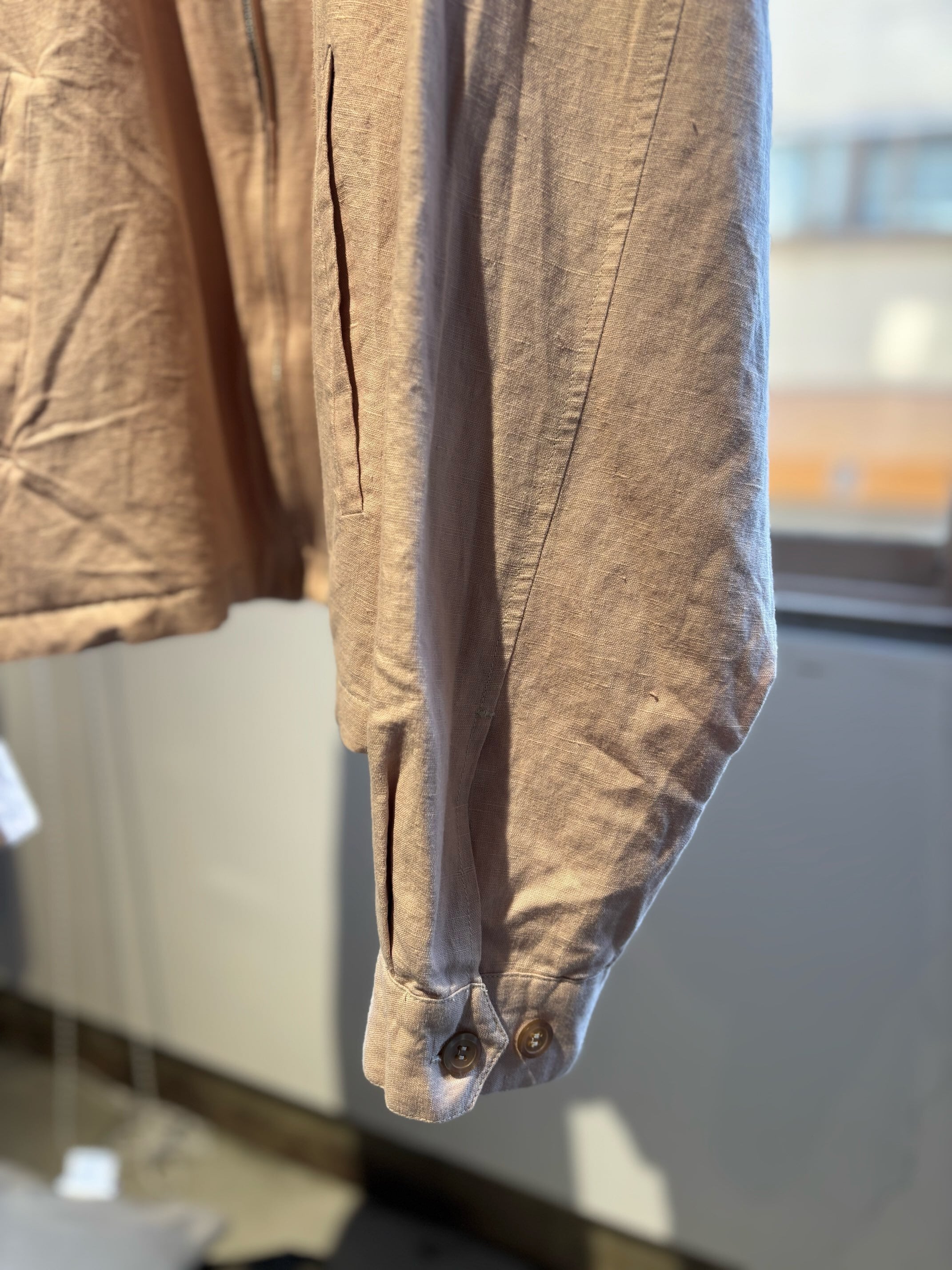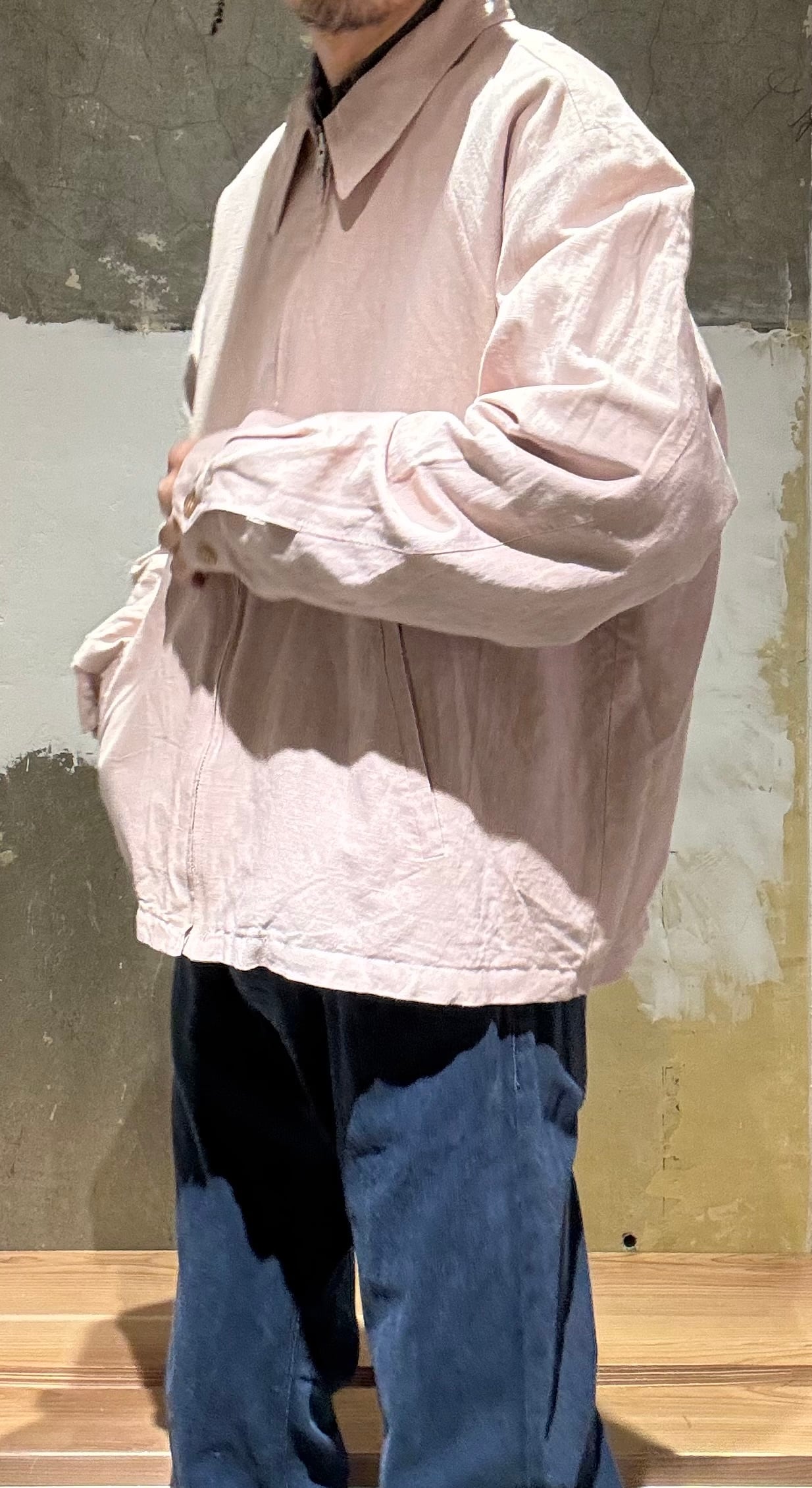 50年代頃のギャバジンのブルゾンなどにはたまにある色ですが、そもそも男性のアイテムでこのような優しい色が少なくなかなか出てきません。しかも素材がリネンとなるとより出てこないので、デザインはシンプルですが探すとなかなか無いアイテムだと思います。
