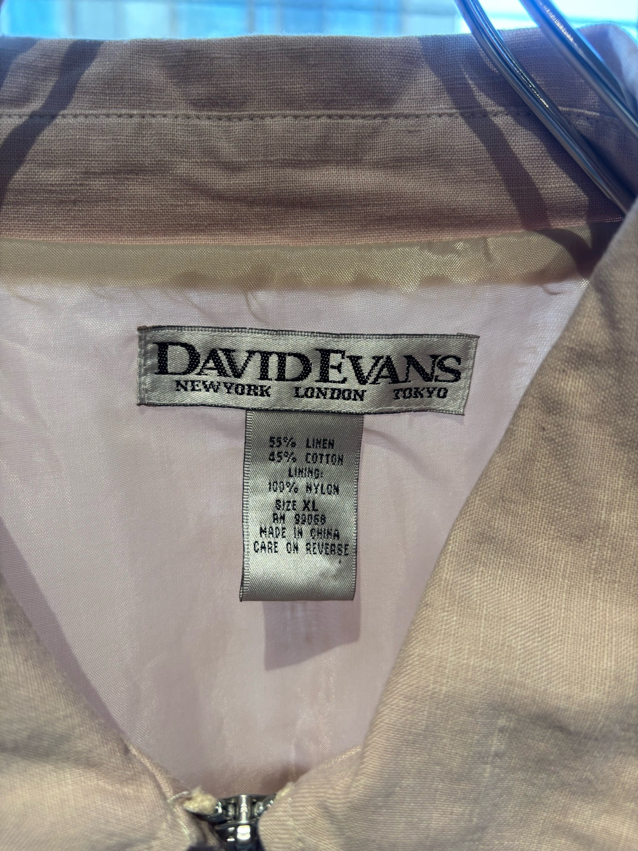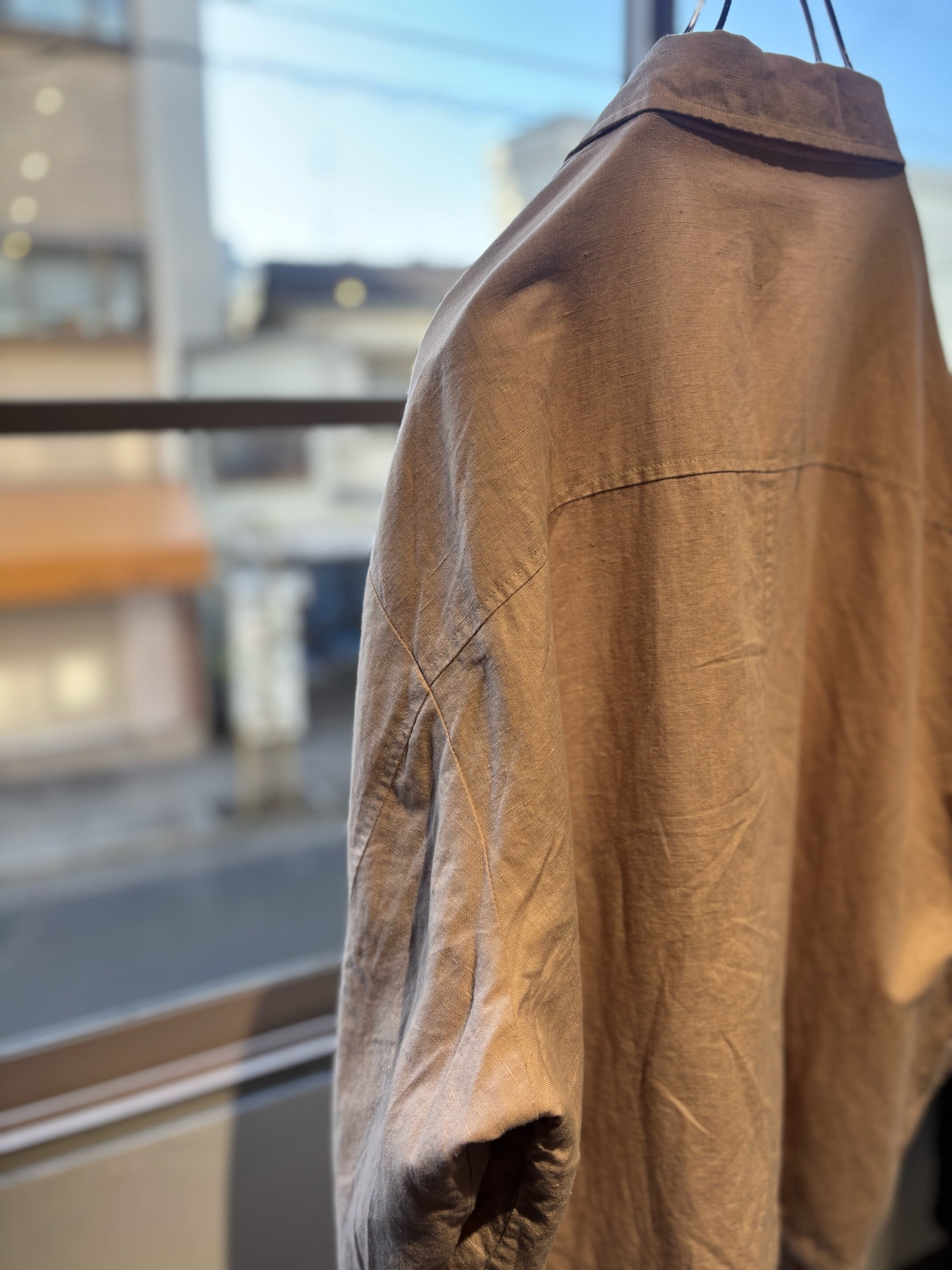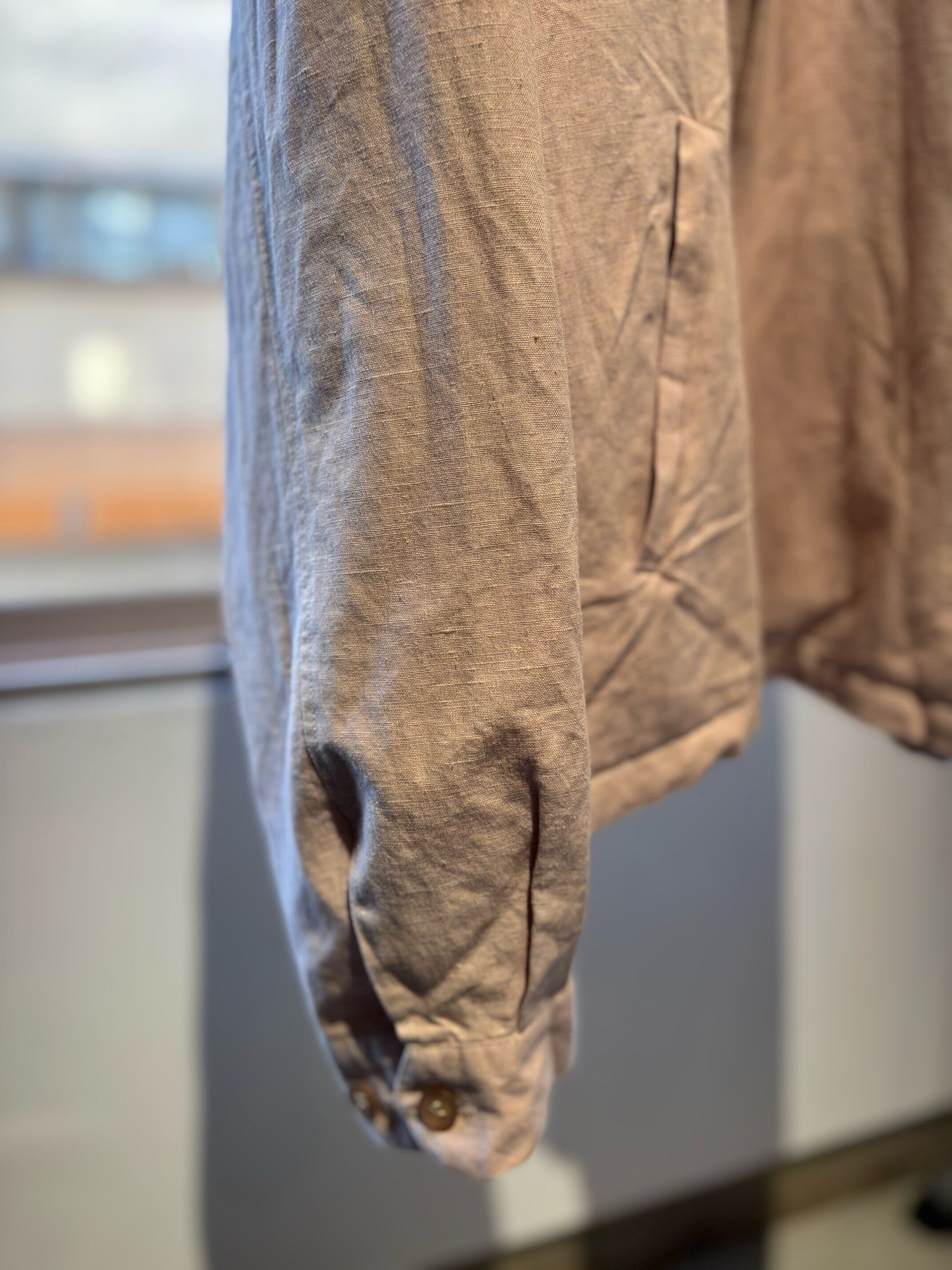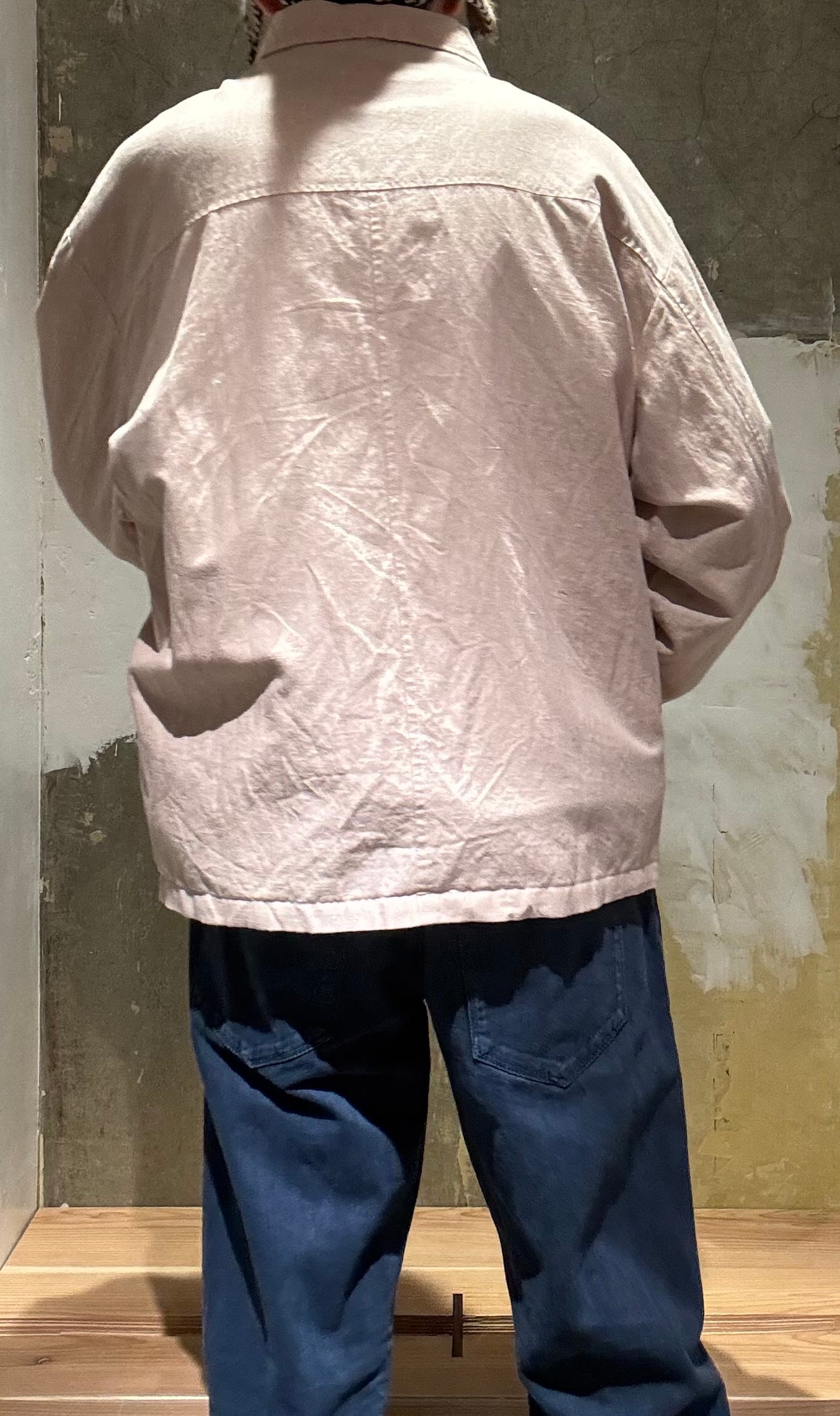 50年代頃のギャバジンのブルゾンなどにはたまにある色ですが、そもそも男性のアイテムでこのような優しい色が少なくなかなか出てきません。しかも素材がリネンとなるとより出てこないので、デザインはシンプルですが探すとなかなか無いアイテムだと思います。
