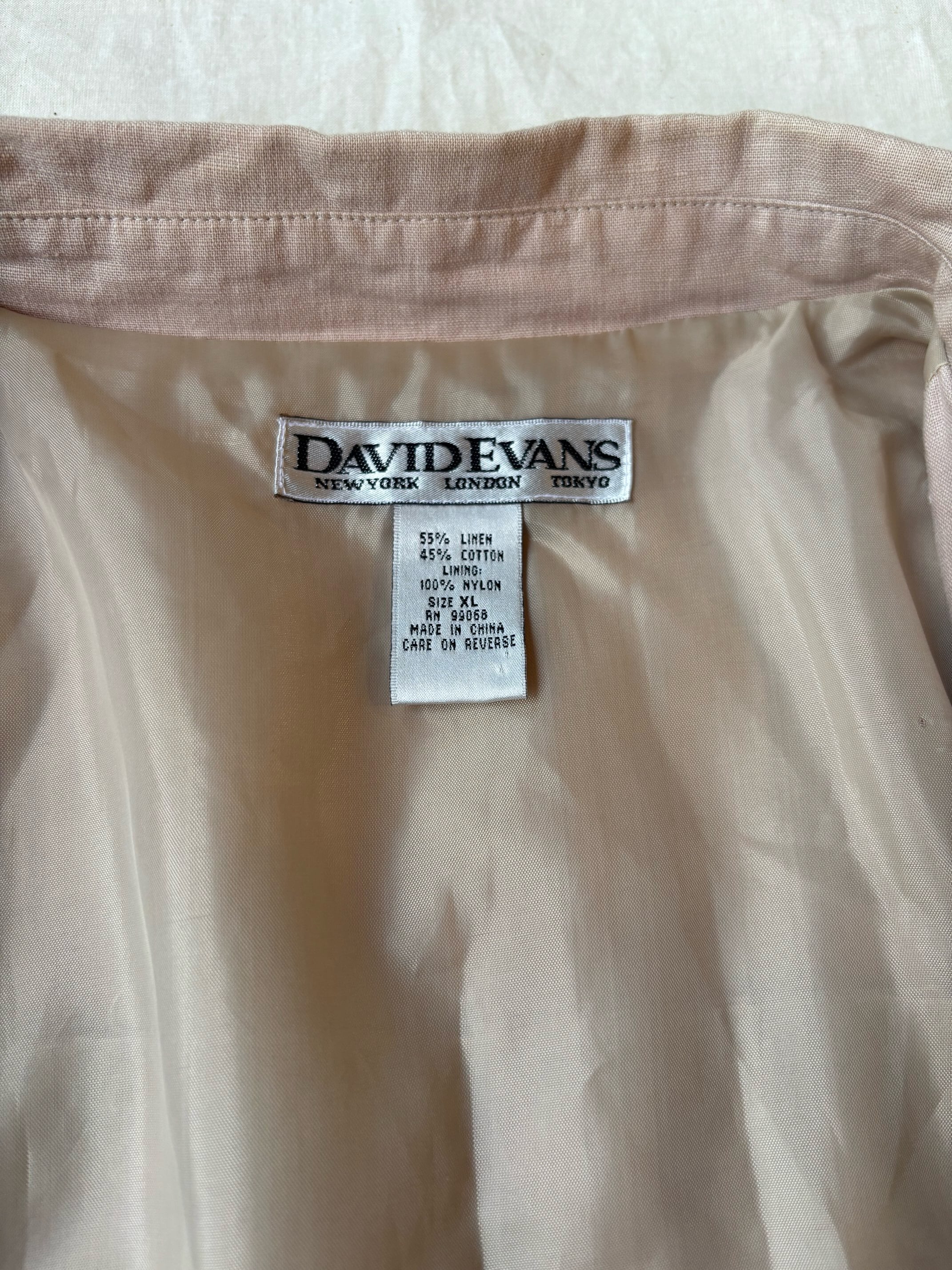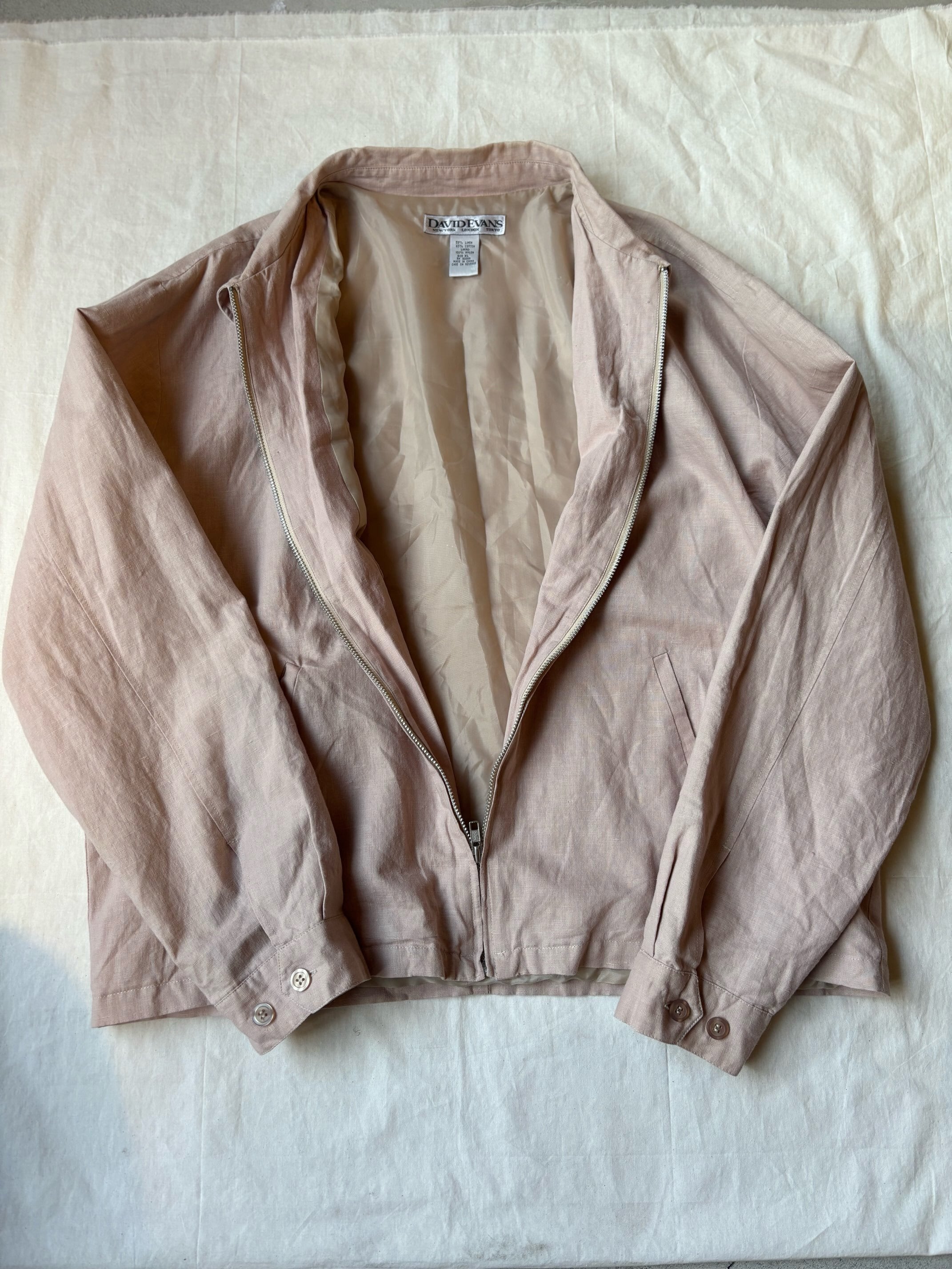 なんと言ってもこのピンクベージュの色がとても可愛いジャケットです。リネン独特の少し皺のある風合いと優しい色目が相まって、とても良い雰囲気のジャケットになっています。