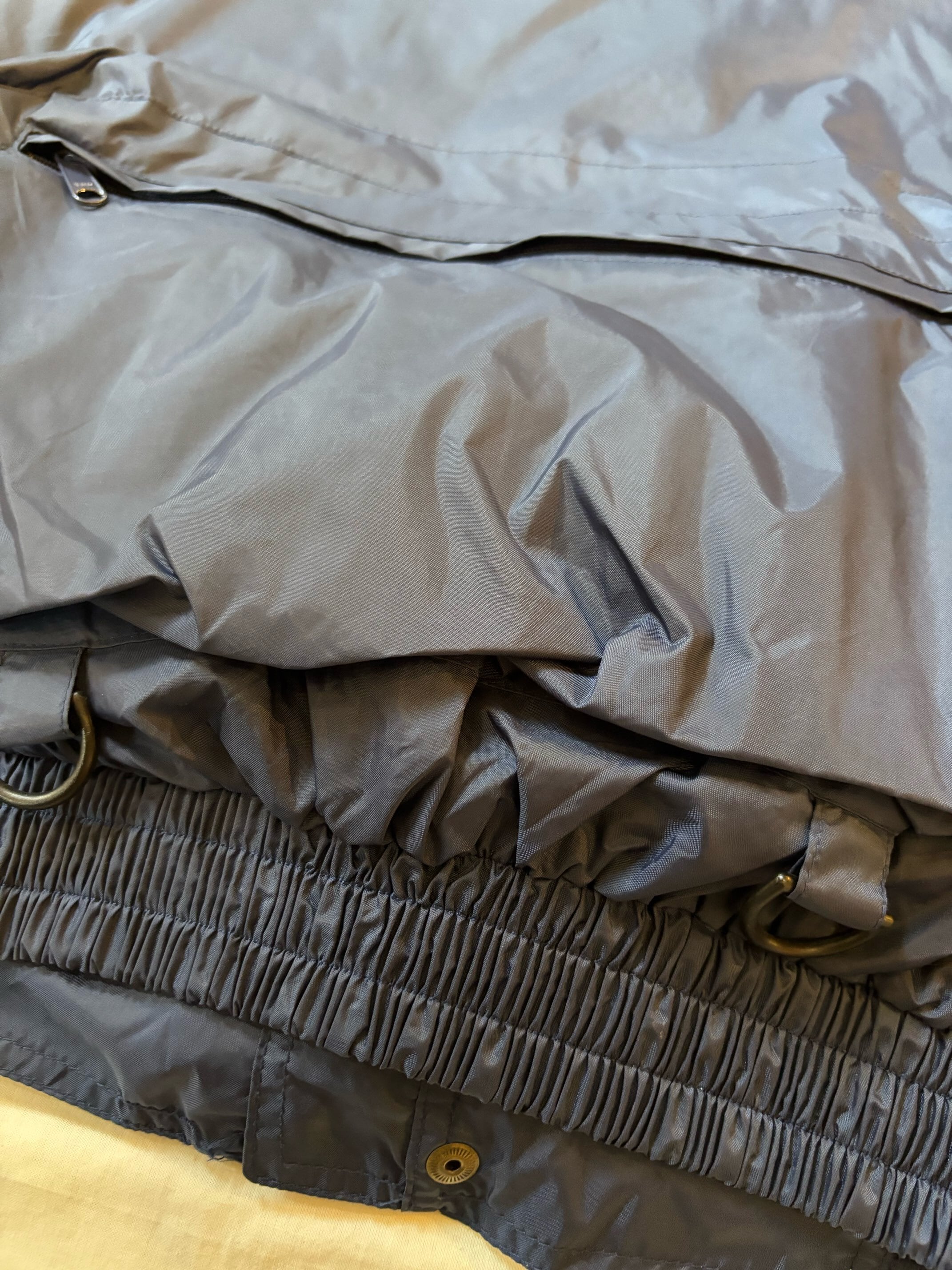 フロントポケットの裏地のコーティングがはがれてきています。