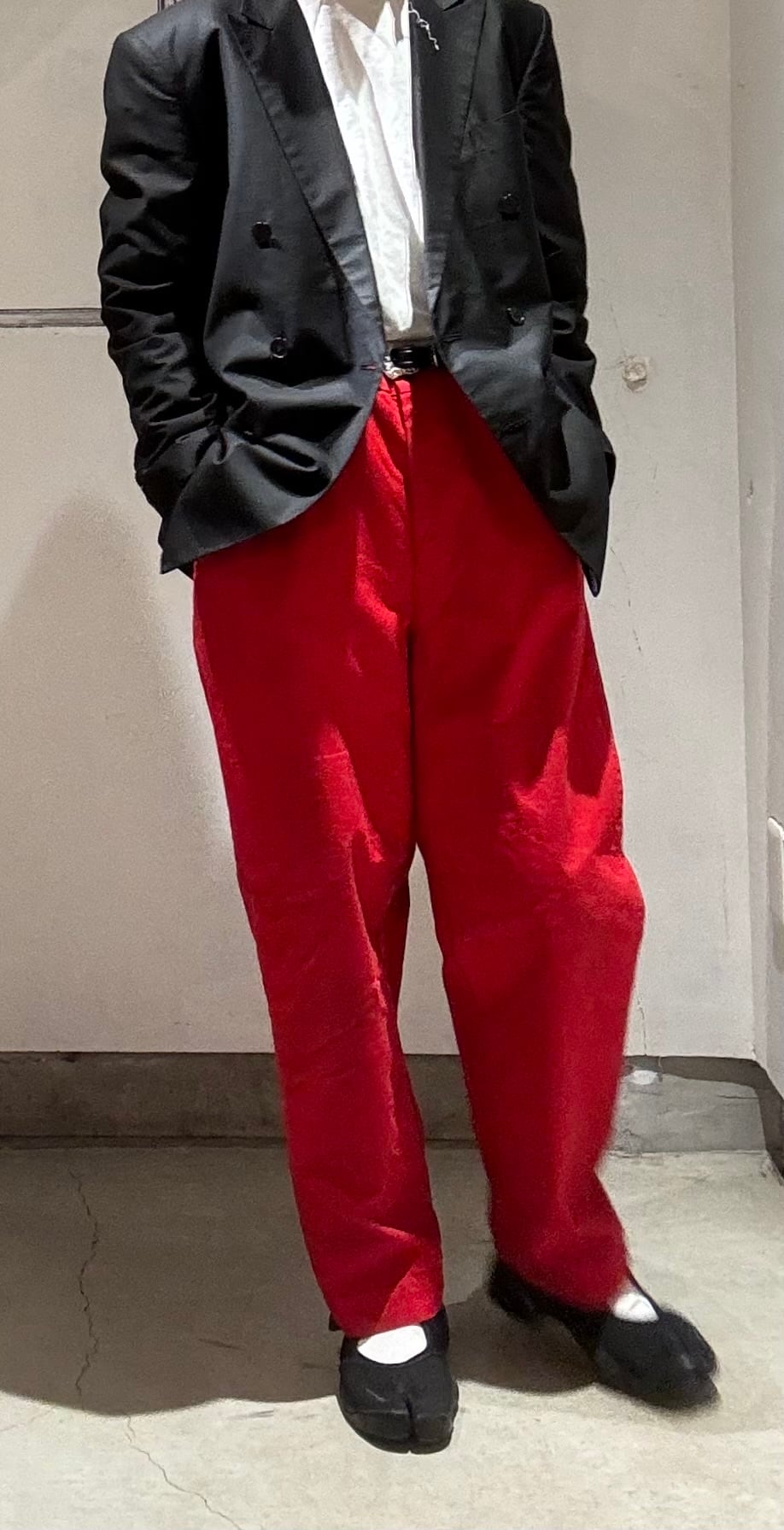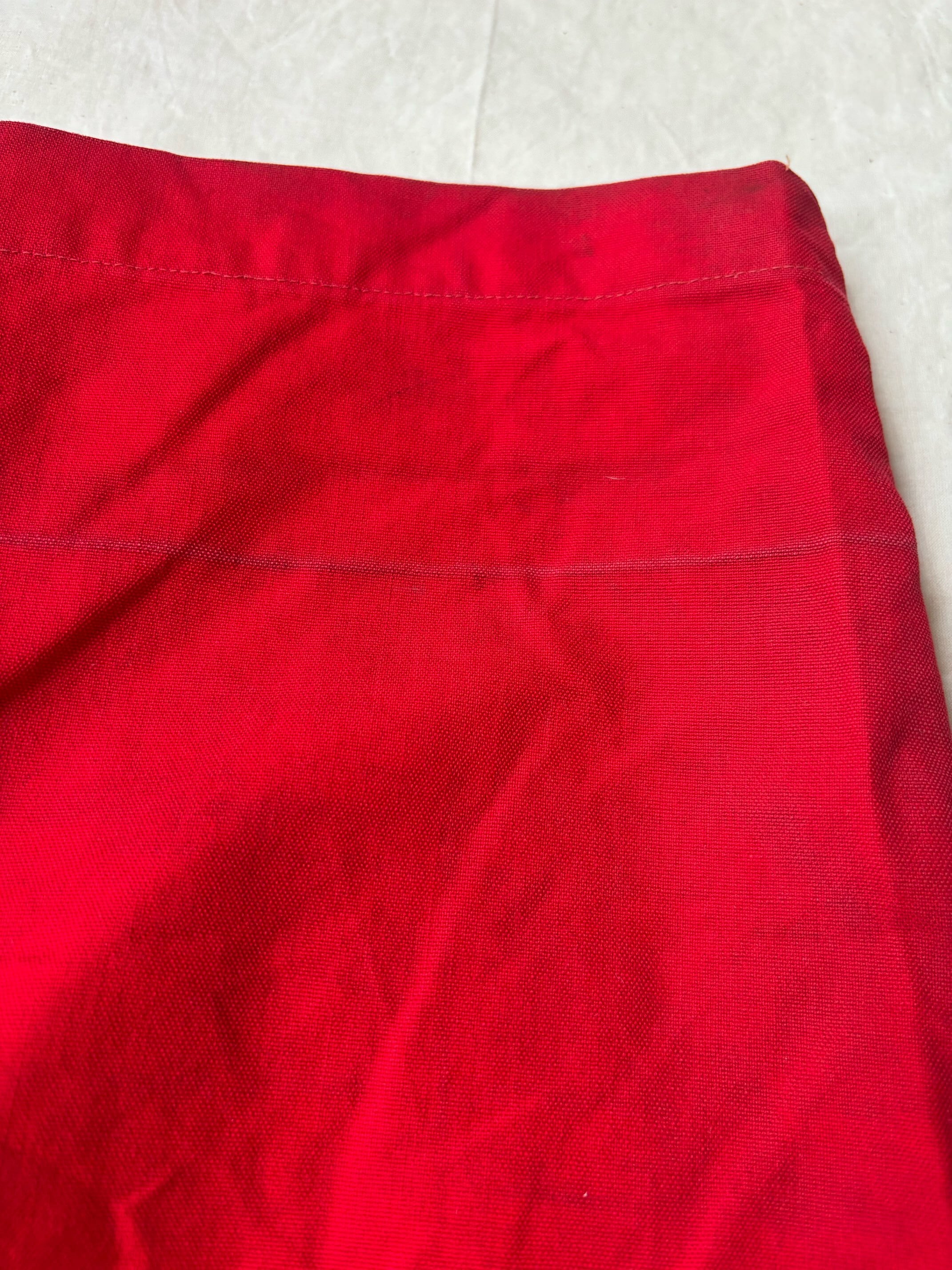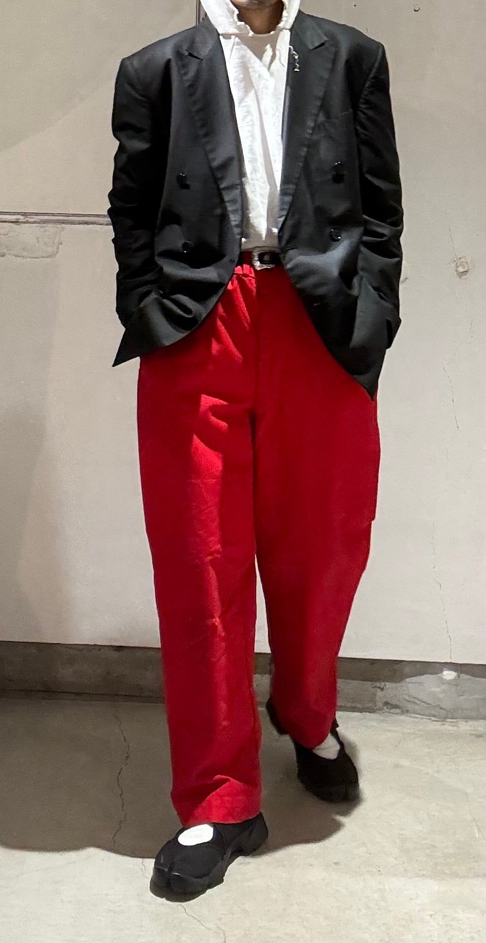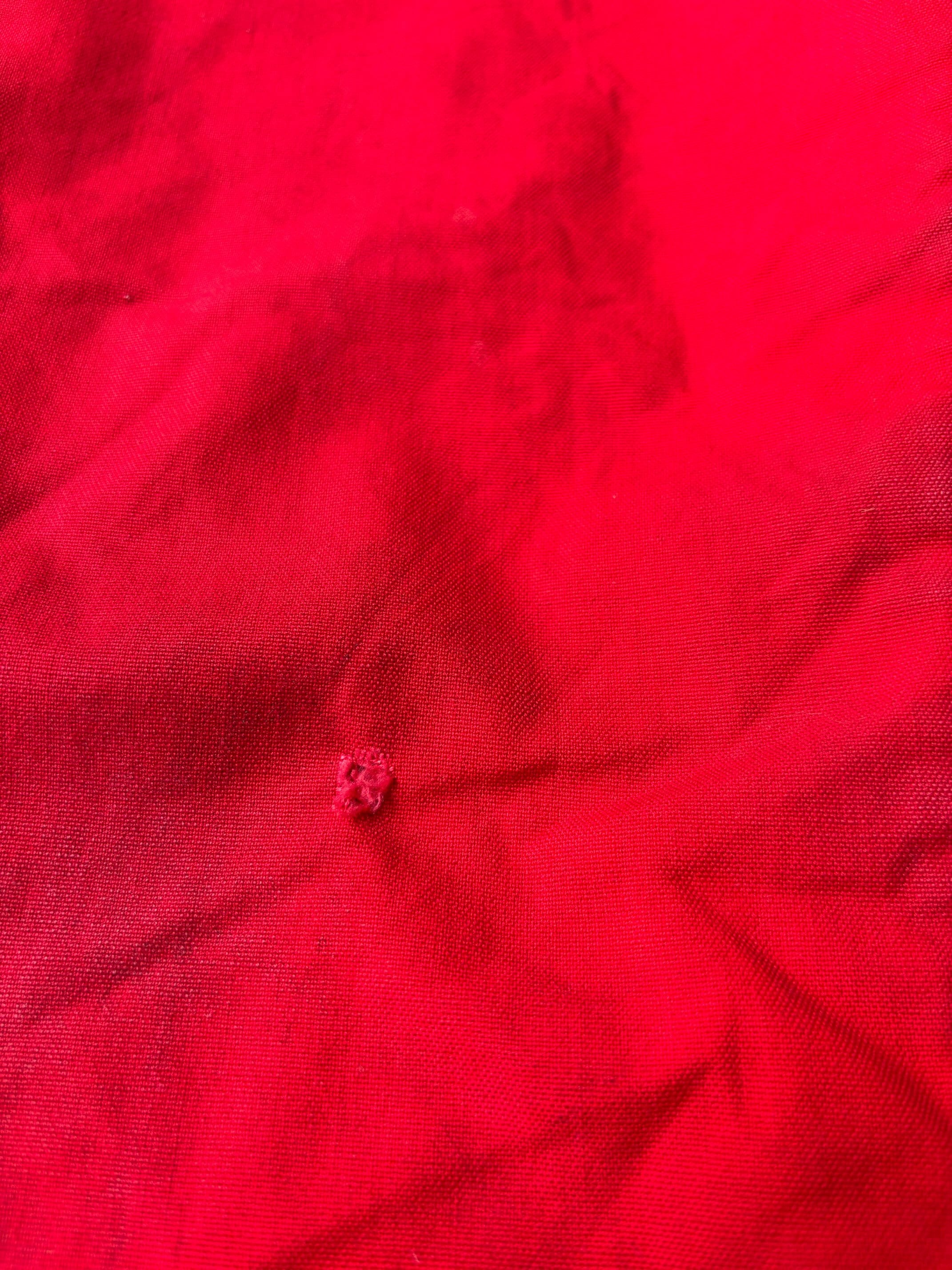 かっこいいですねー。アメリカの老舗アウトドアブランドduxbackの真っ赤なカラーのハンティングトラウザーズ、古いボトムスによく見られるサスペンダーボタン、ダブルニーやダブルシート仕様で、膝立ちや座ってもすぐに破けないように生地が2重になっています。