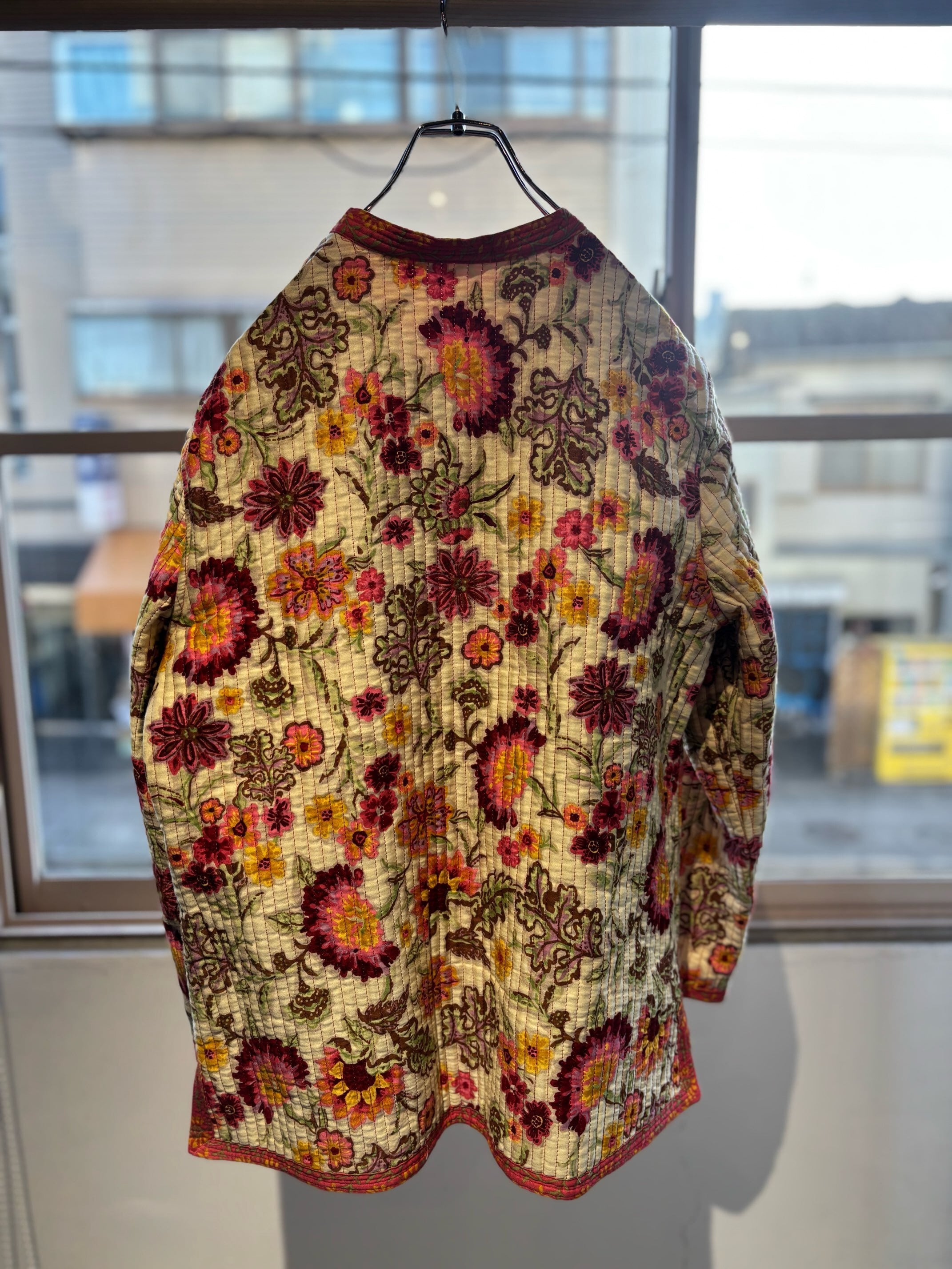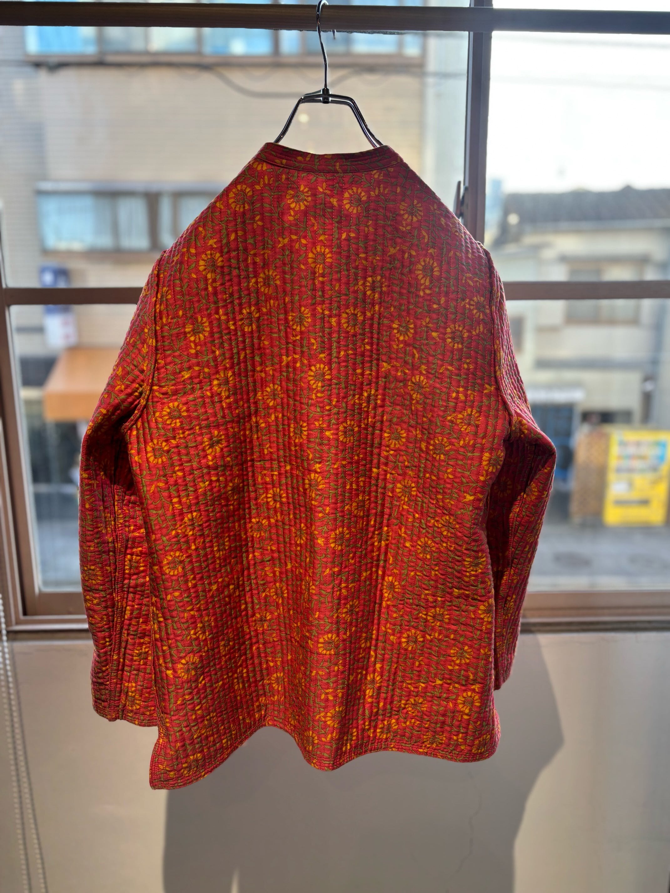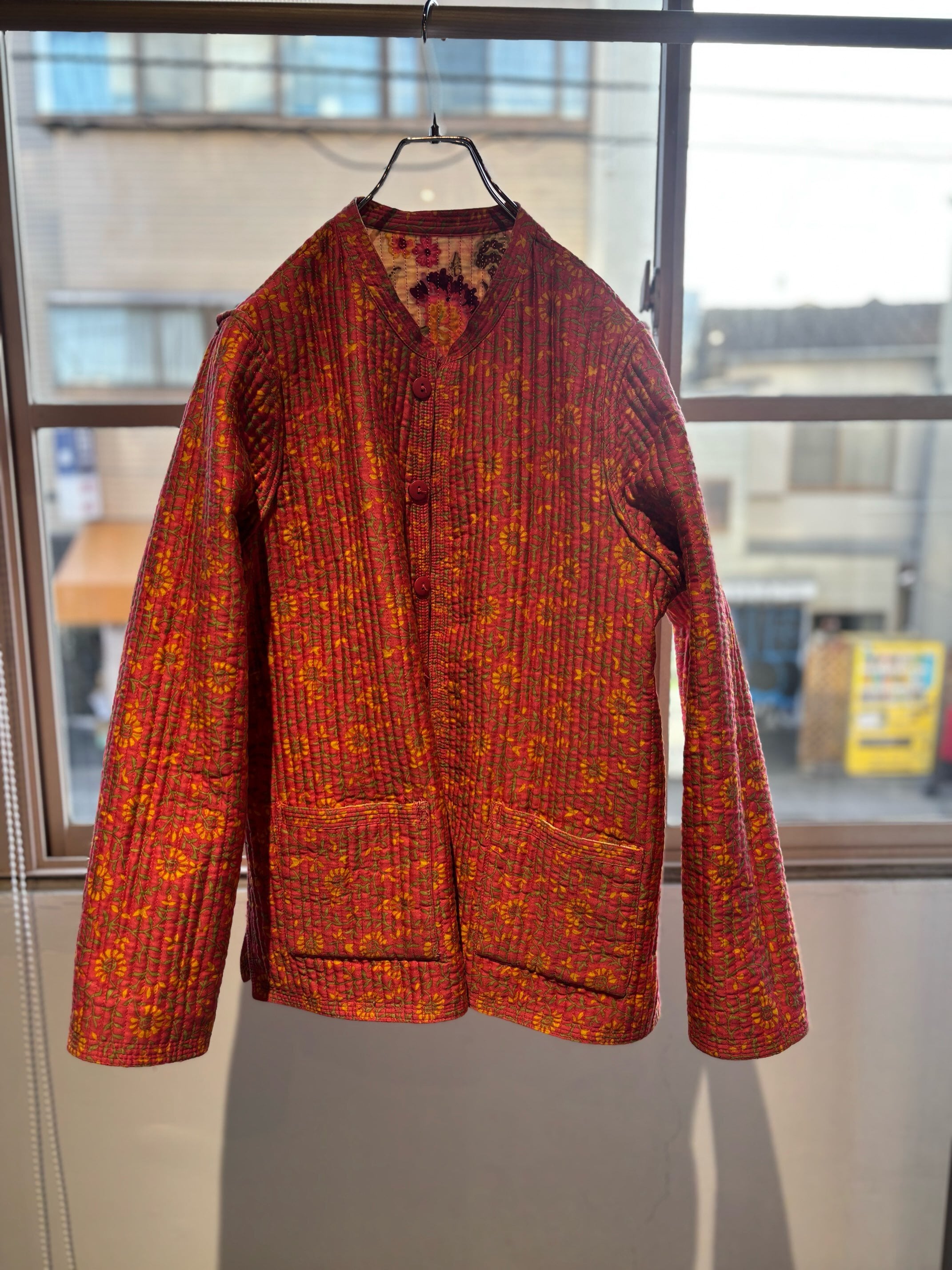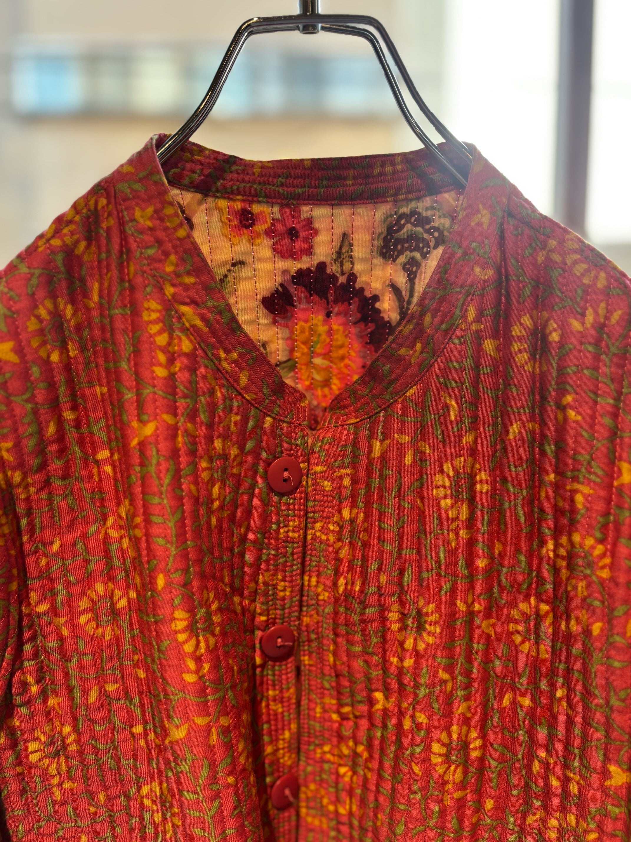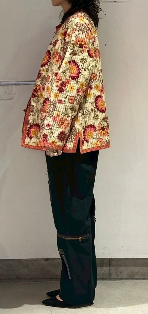 atsuraeでは度々入荷のあるキルティングジャケットですが、今年も貯めていた分がこちらの1着で最後になりました。とても可愛い明るい花柄と、オレンジのような色の赤系統の色のリバーシブルになります。オープン当初からatsuraeのテーマのエスニックに該当するアイテムとして入荷がありましたが、ここ数年でグッと数が減ってしまいなかなか入荷が難しくなっているアイテムの一つです。